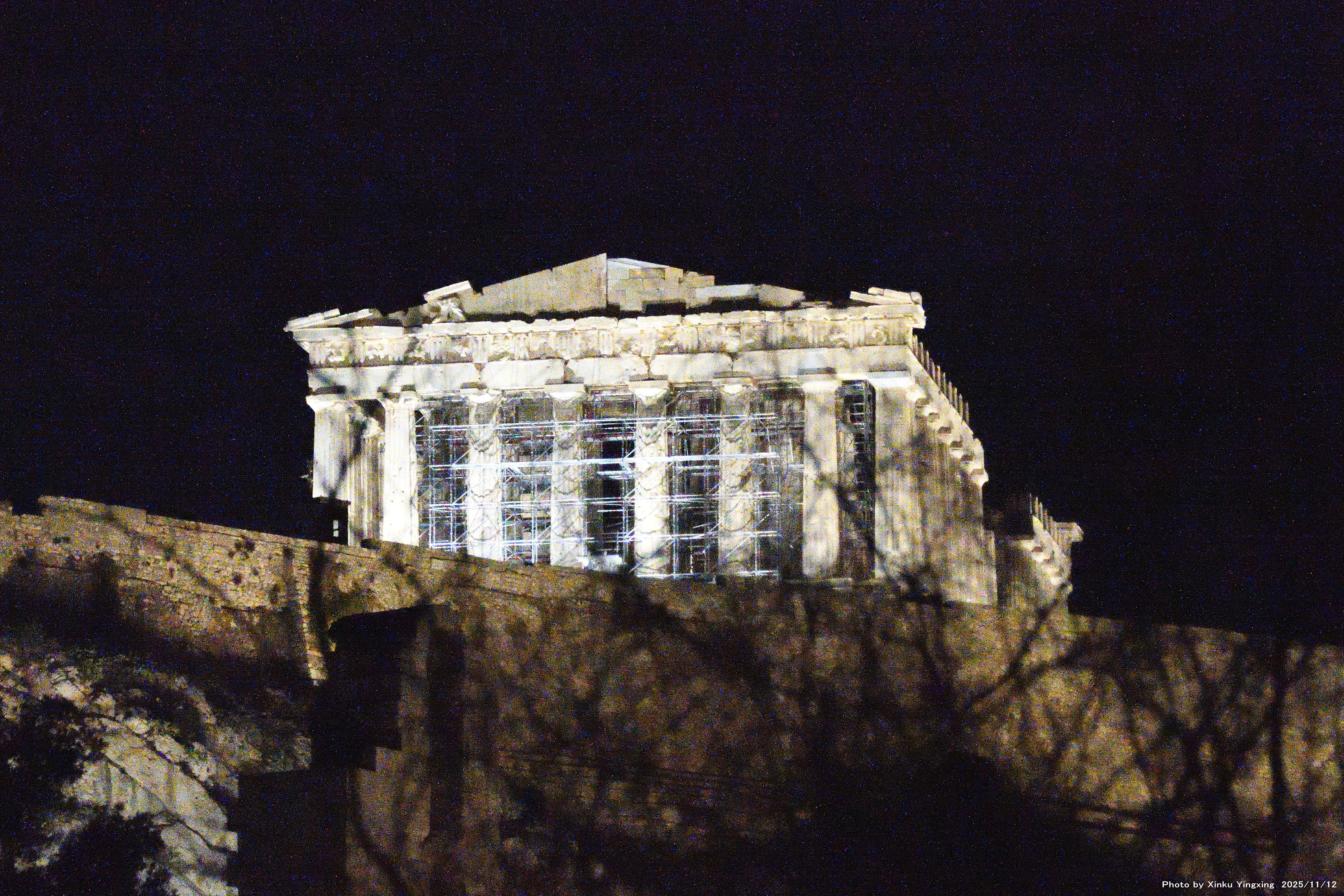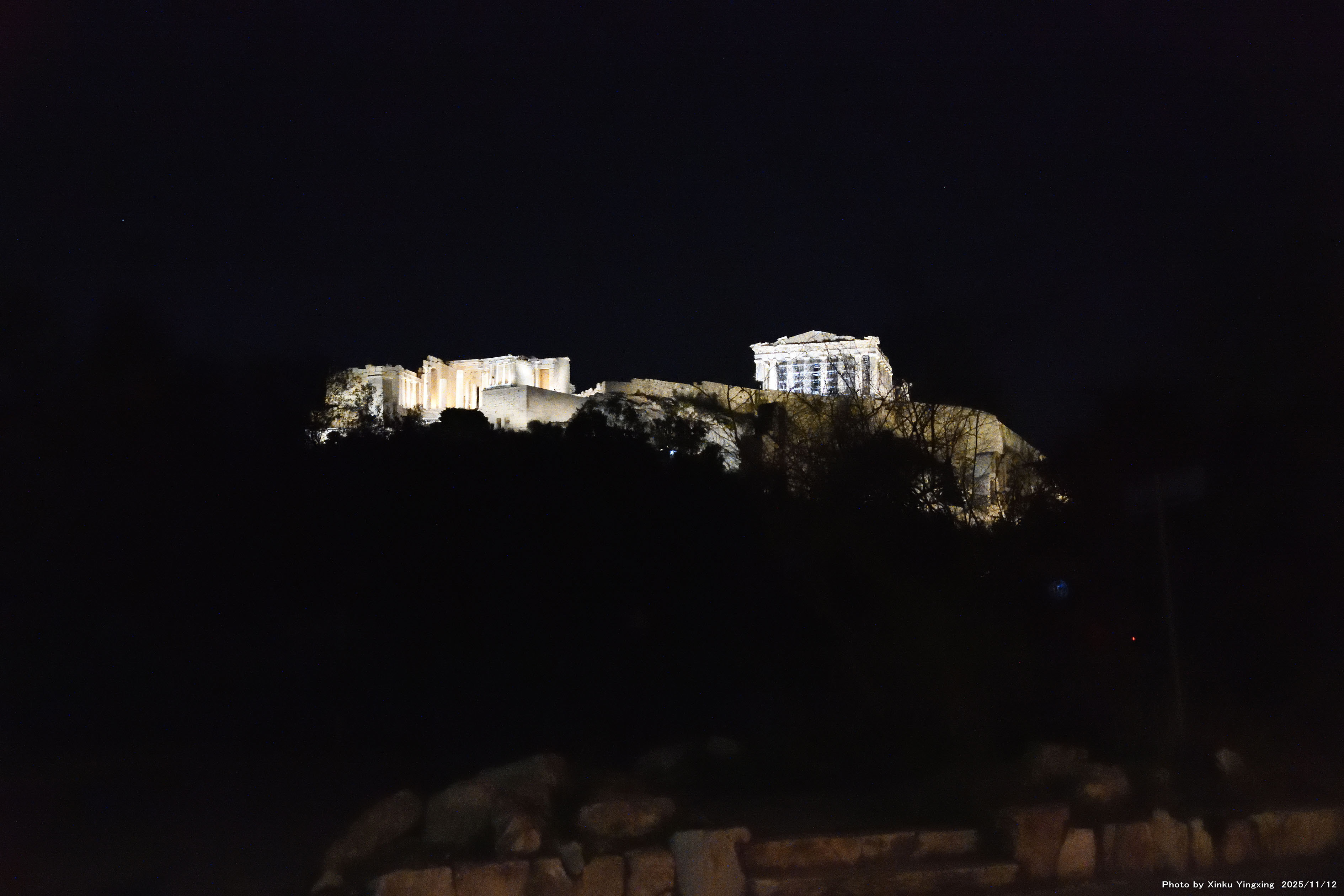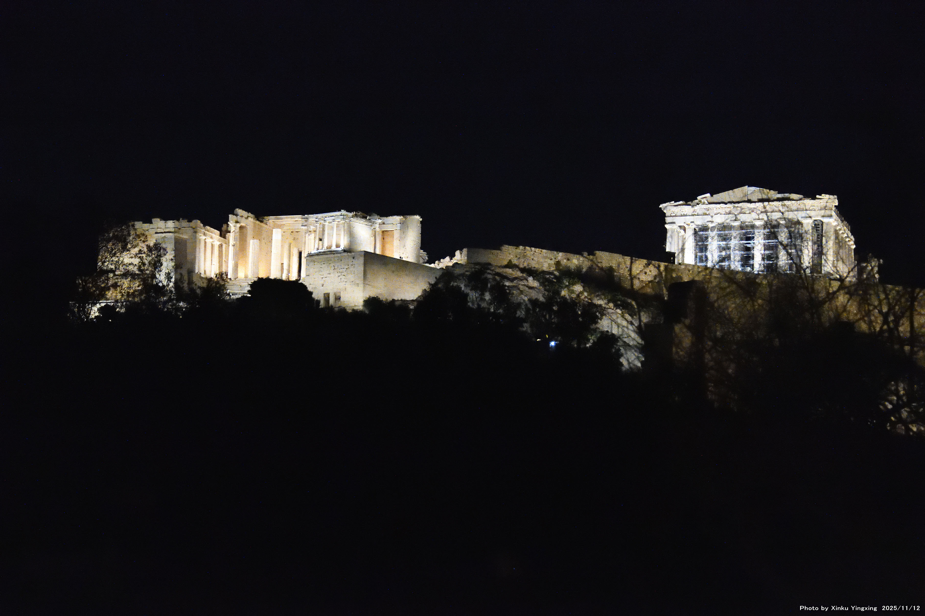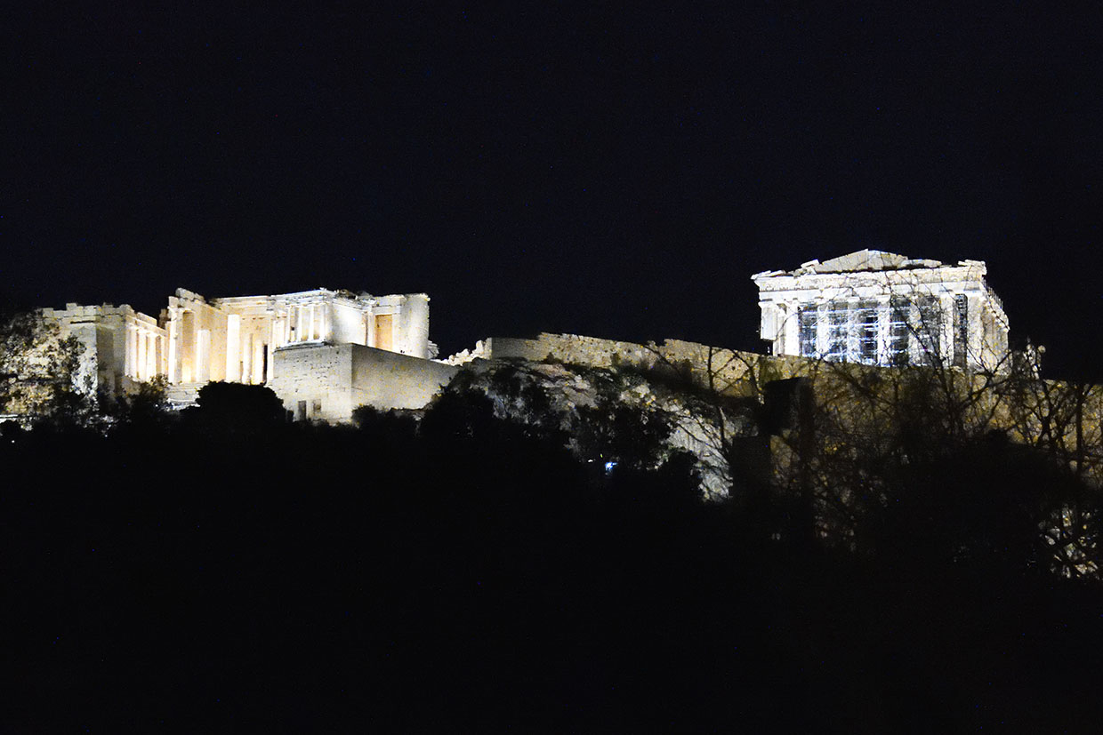7-5 アクロポリスの丘、ライトアップを望む。