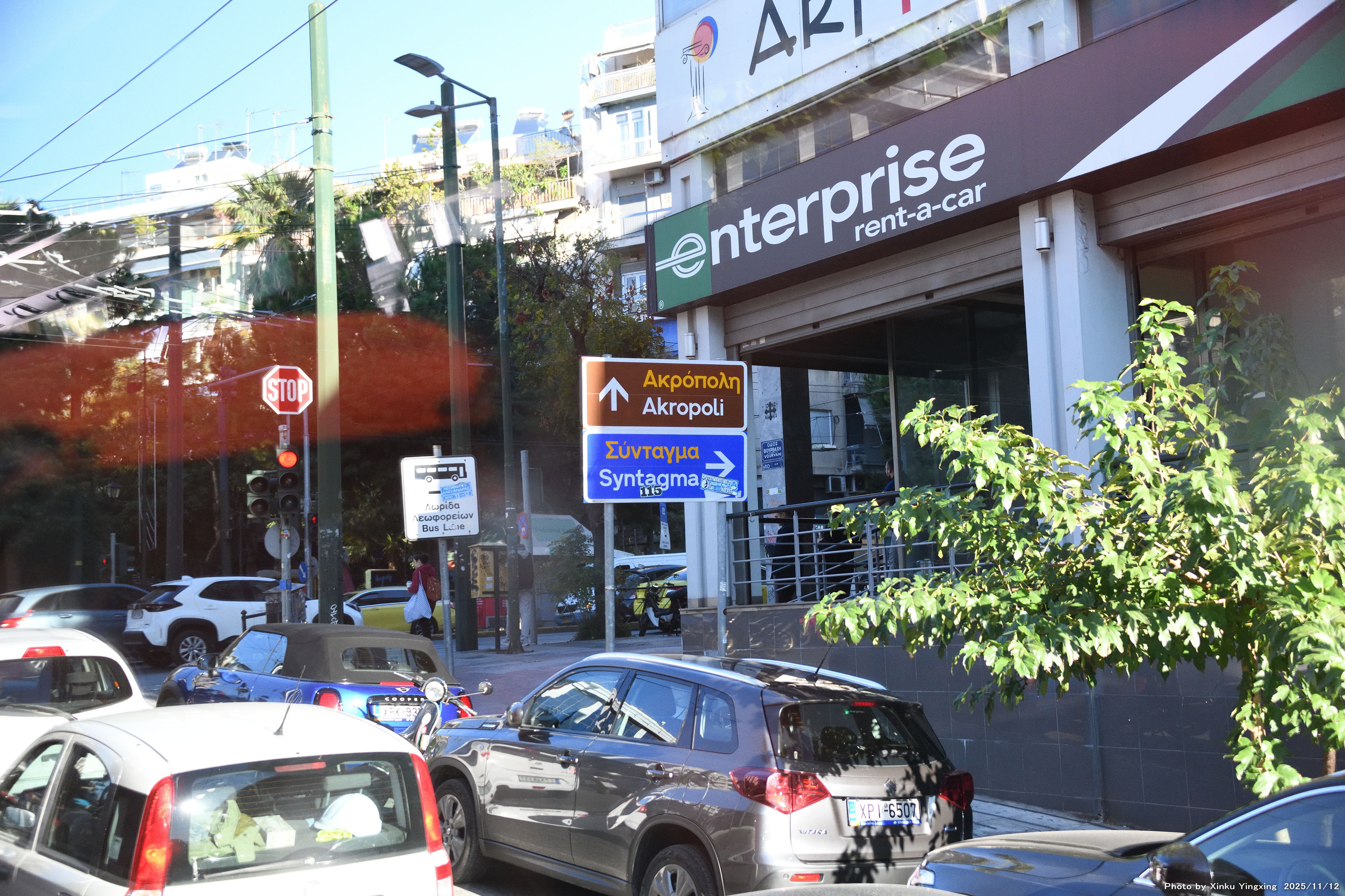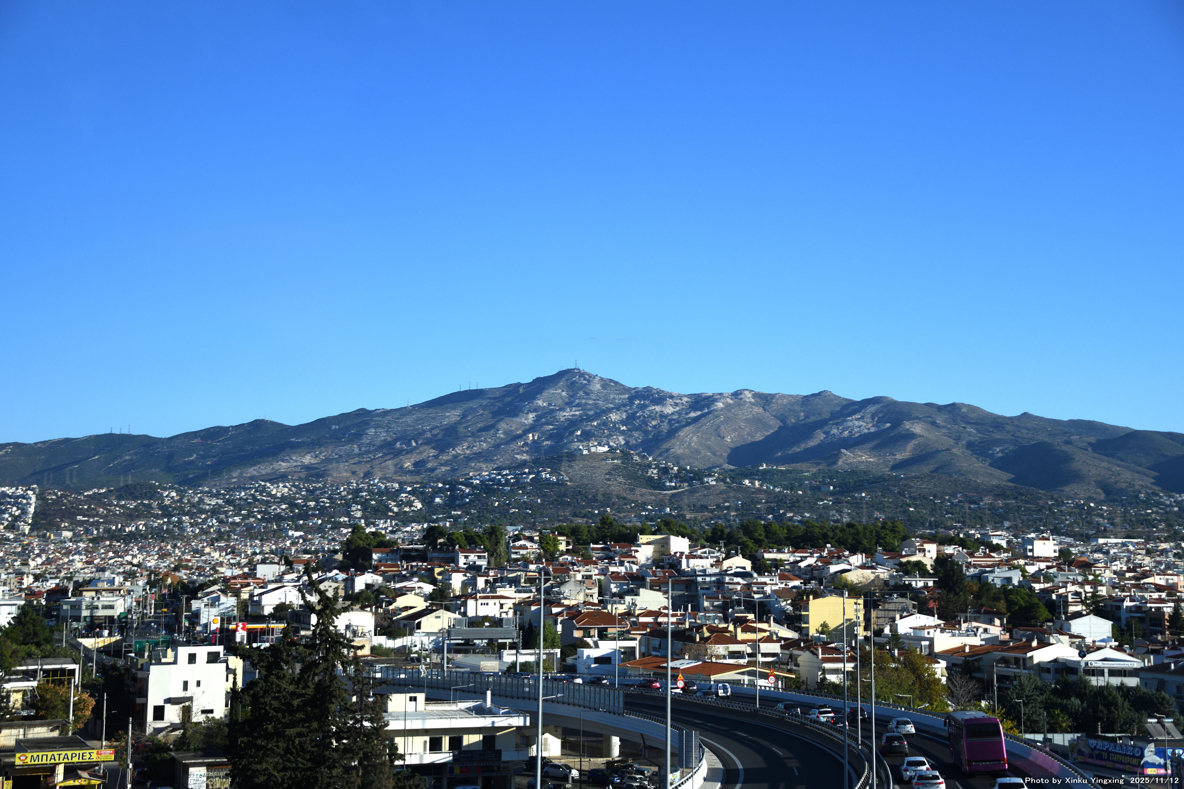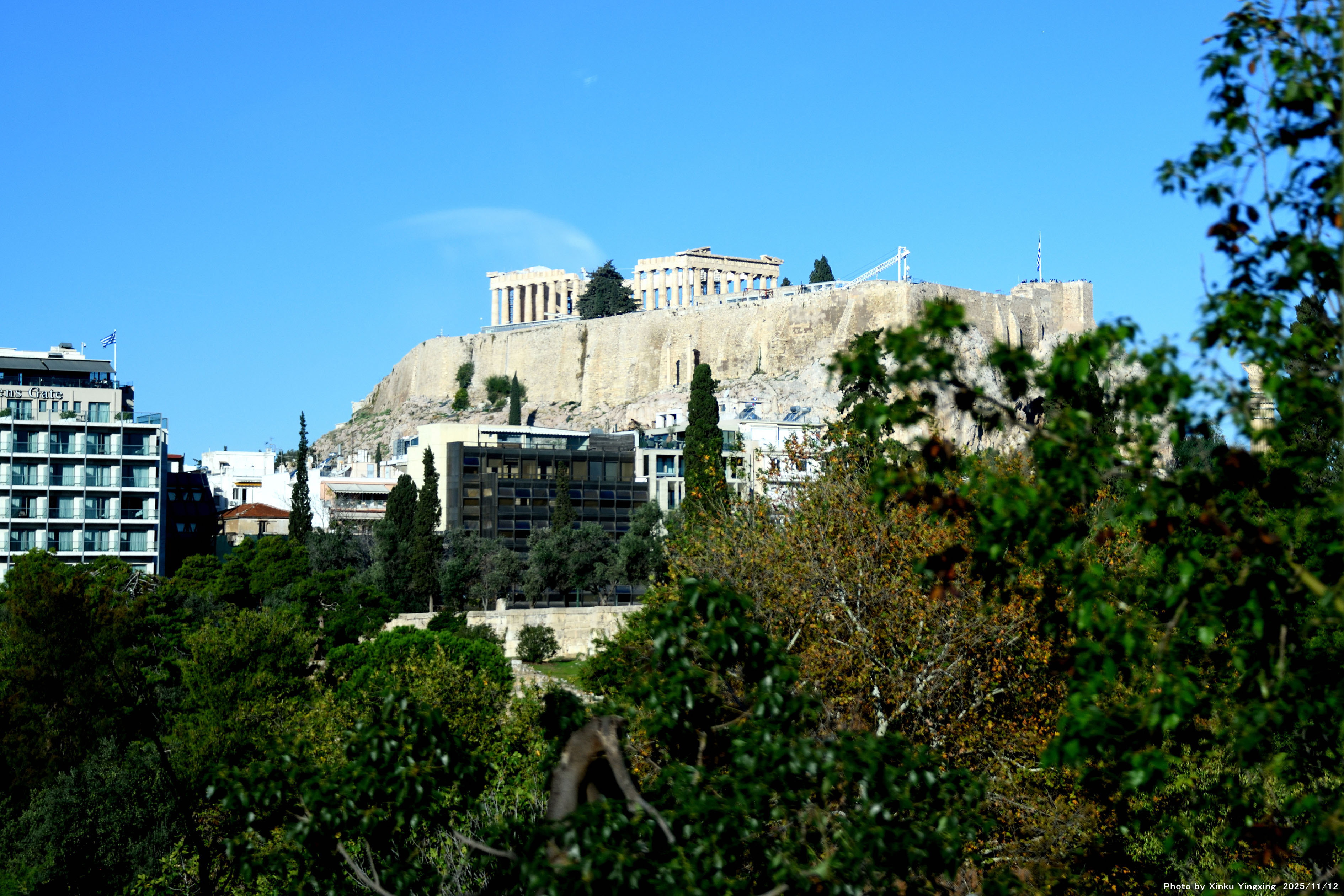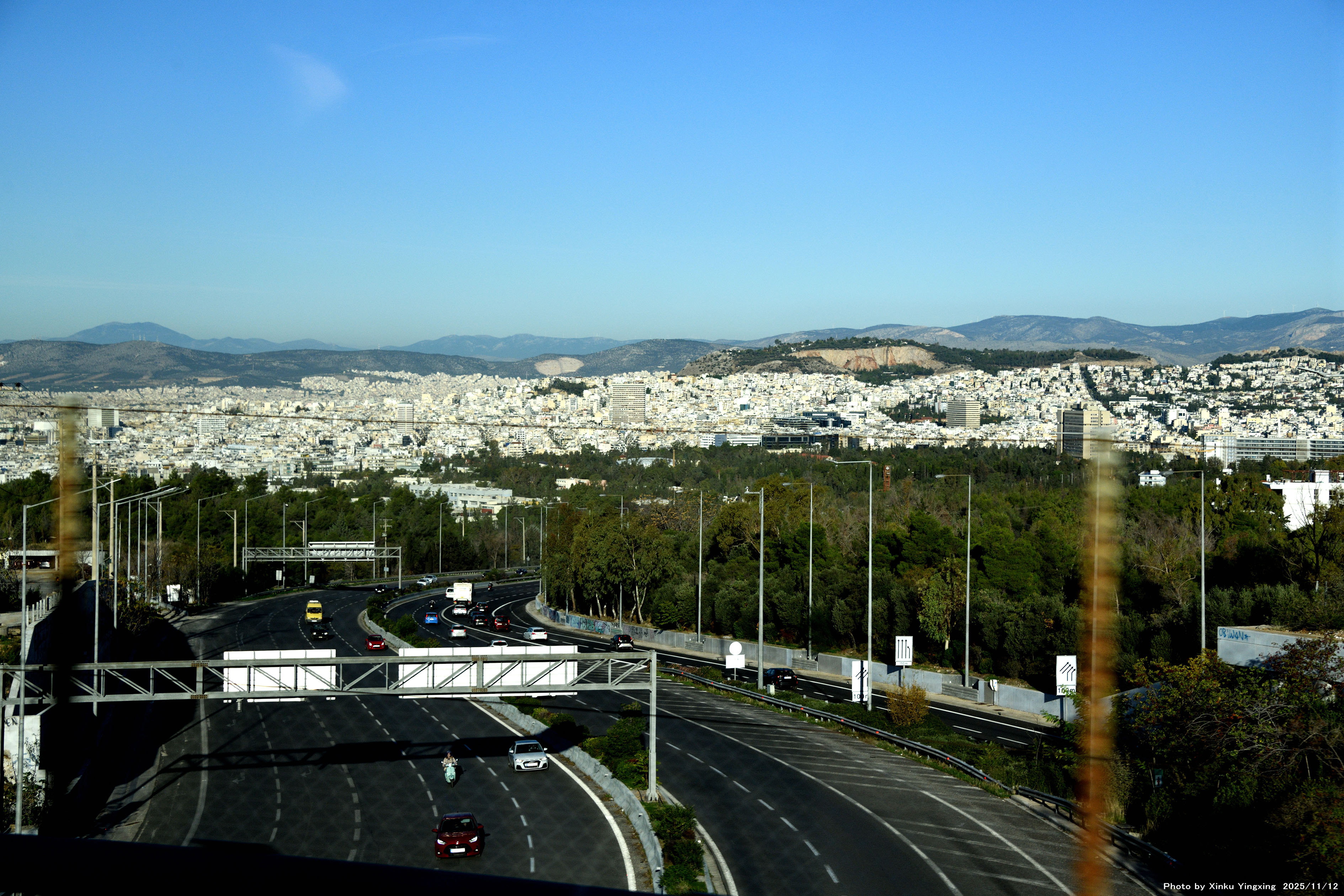 アテネ国際空港からアテネ市街へはバスで移動しました。車窓からはアテネの街並みをぼんやりと眺めていました。そんな中、アクロポリスが見えて来た時には、ついにギリシャに来たんだと感激の一瞬でした。