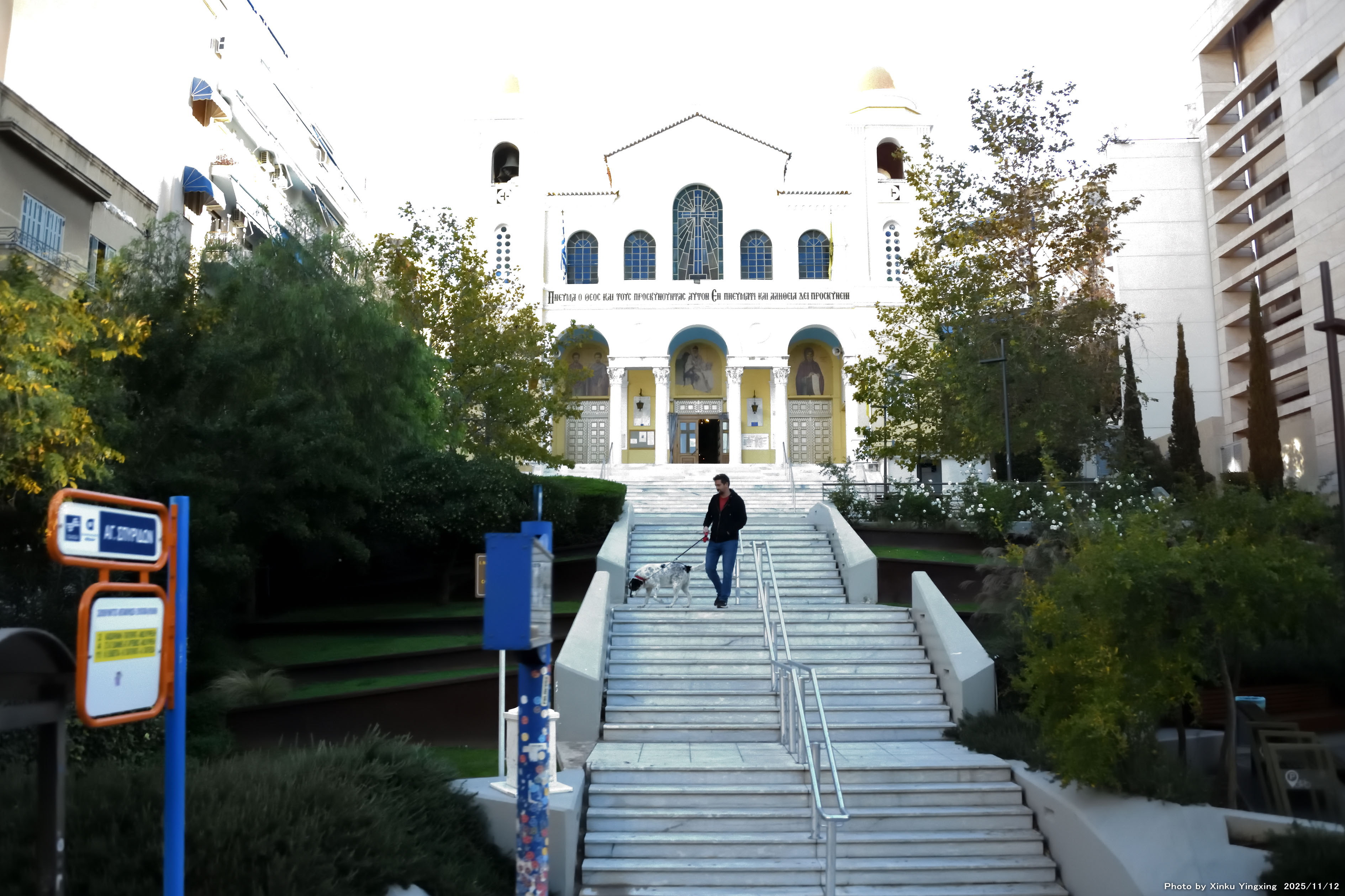 6-3 アテネ プラカ地区にて、聖カタリナ教会を望む。