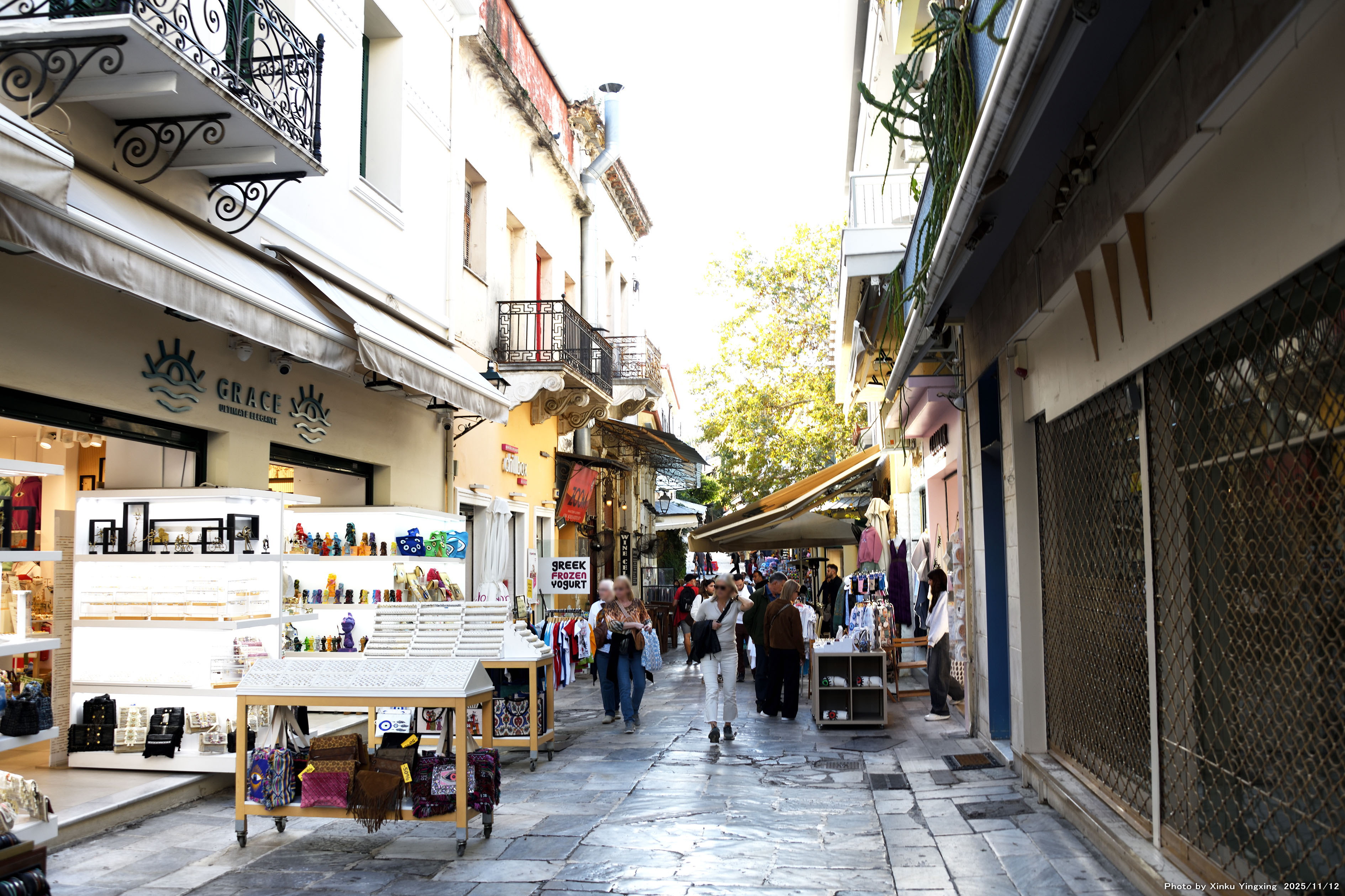 プラカ地区散策では、車の通行は禁止されている狭い石畳の通りには、宝飾品、衣服、地元で作られた陶磁器を売る小さな店が並んでいました。昔の街並みがそのままお店になっているような感じで、きらびやかさは無く落ち着いた雰囲気のお店が続いていました。