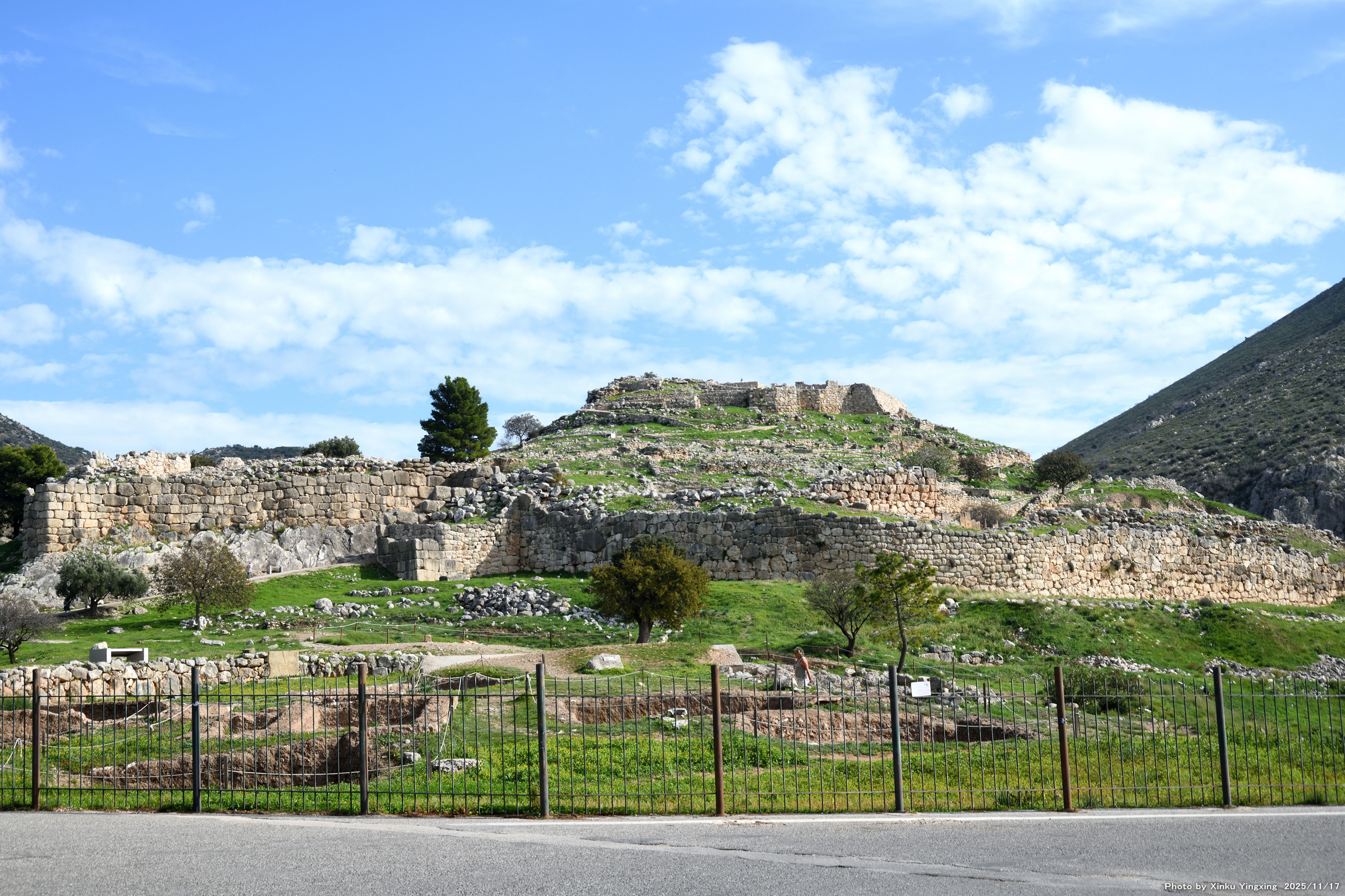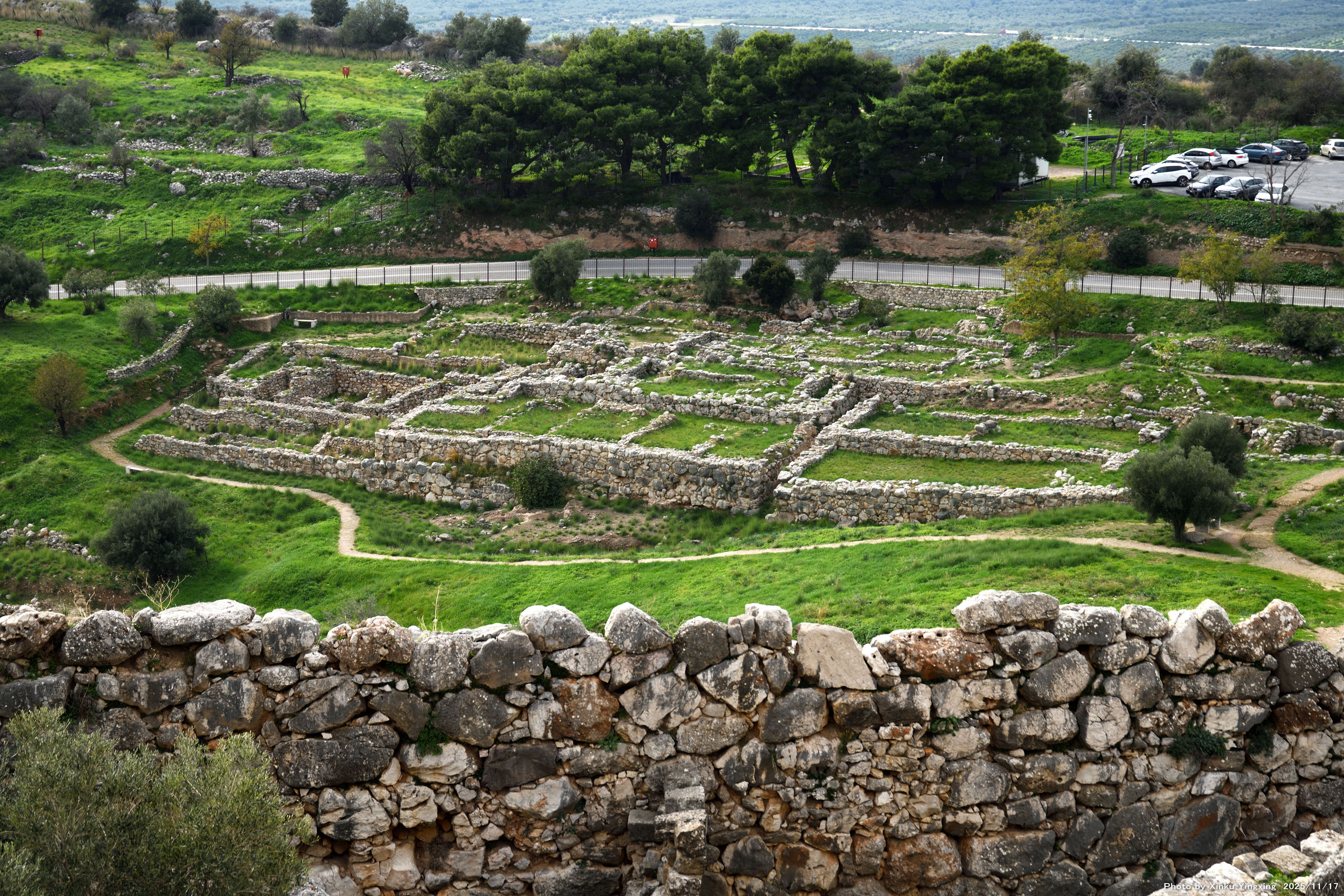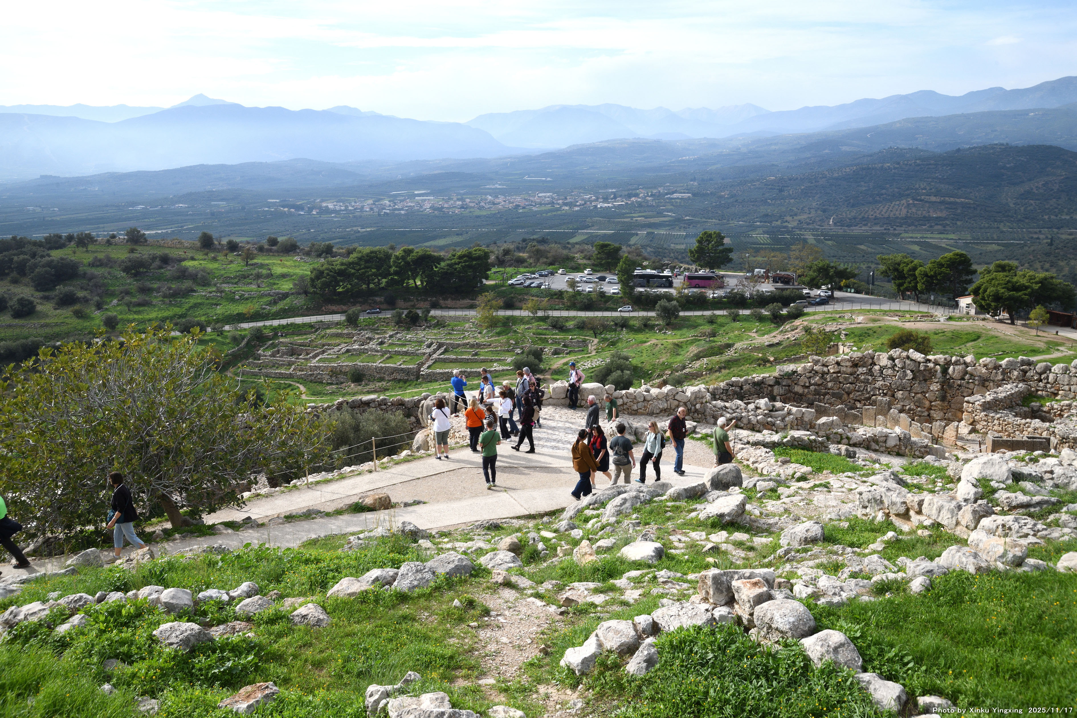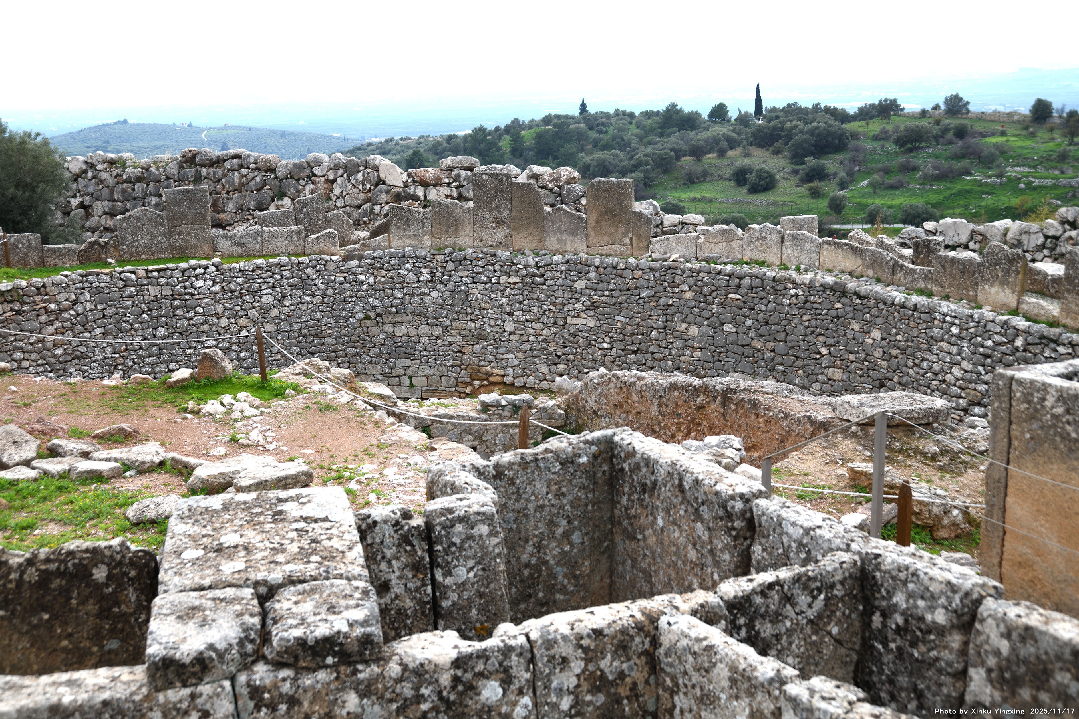 4-4 ミケーネ遺跡(王宮殿)にて、「(3)環状墓地A」を望む。
