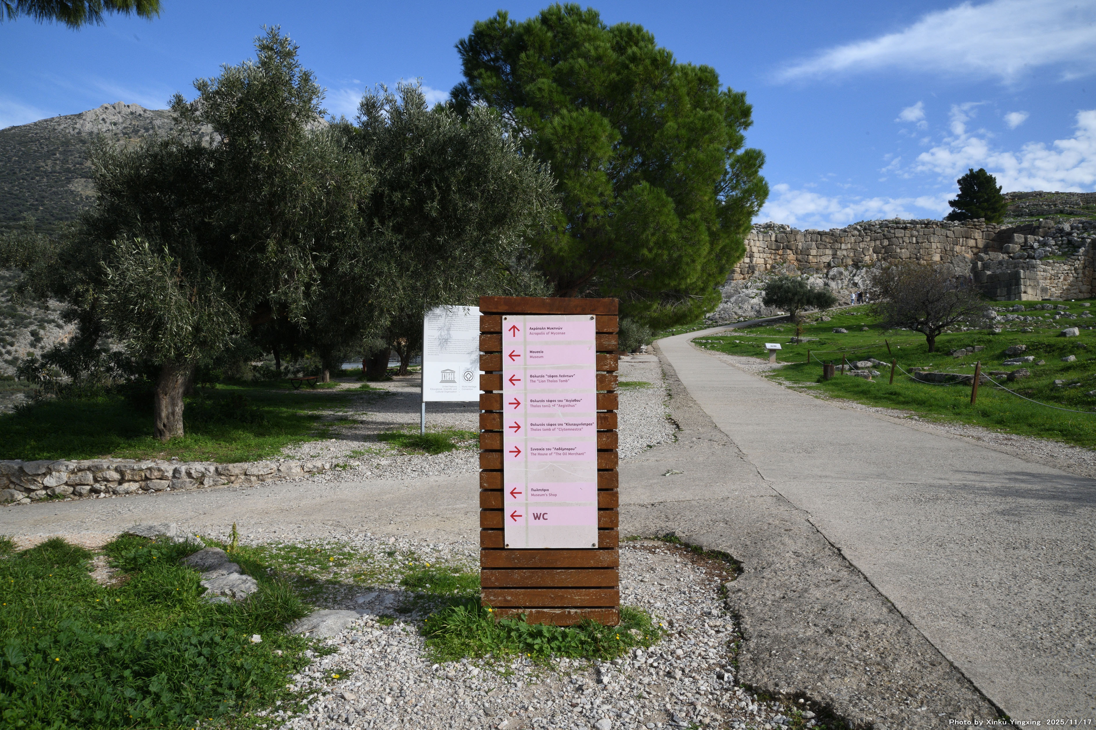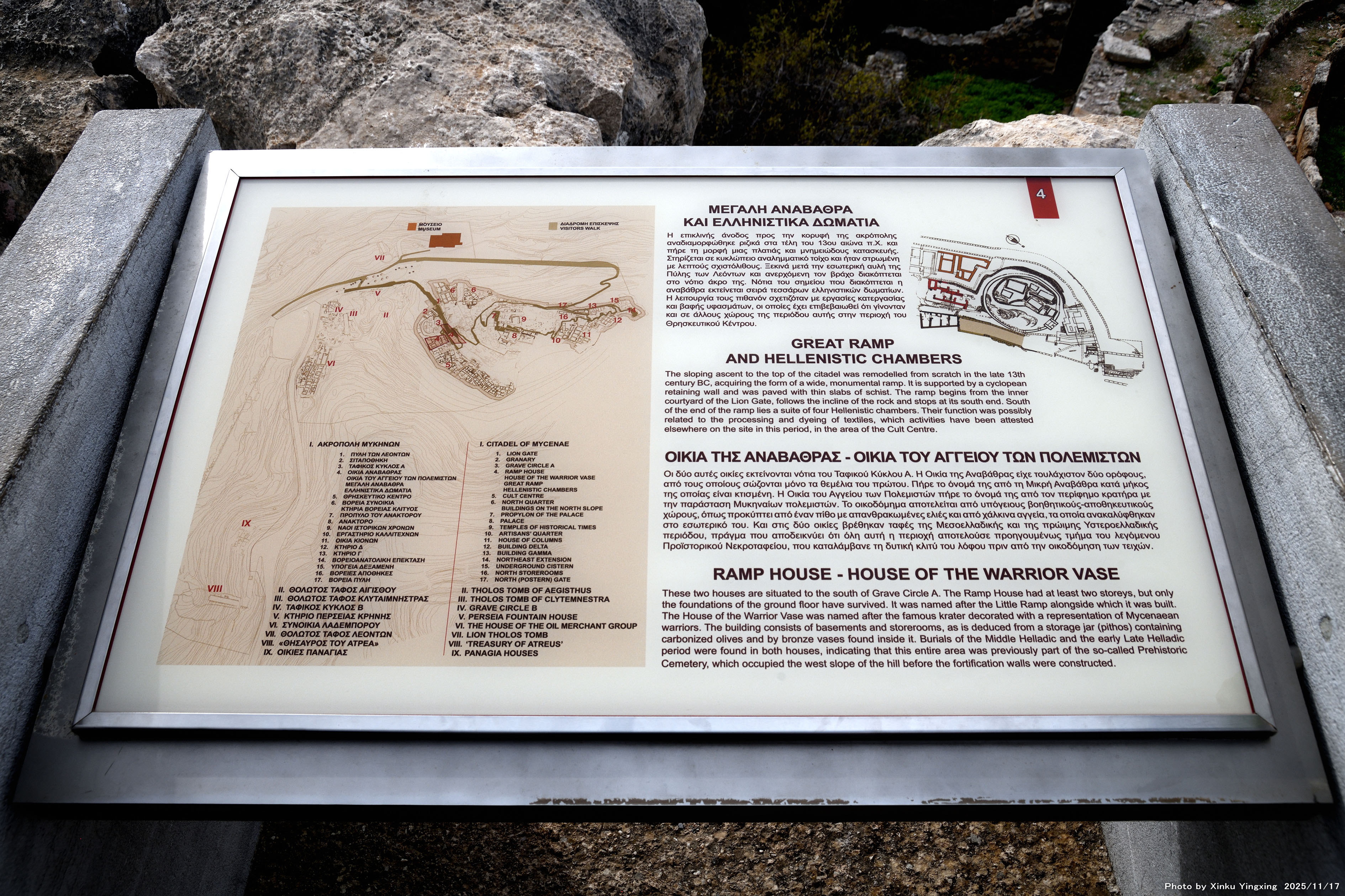 4-5 ミケーネ遺跡(王宮殿)にて、「(3)環状墓地A」の現地説明板です |