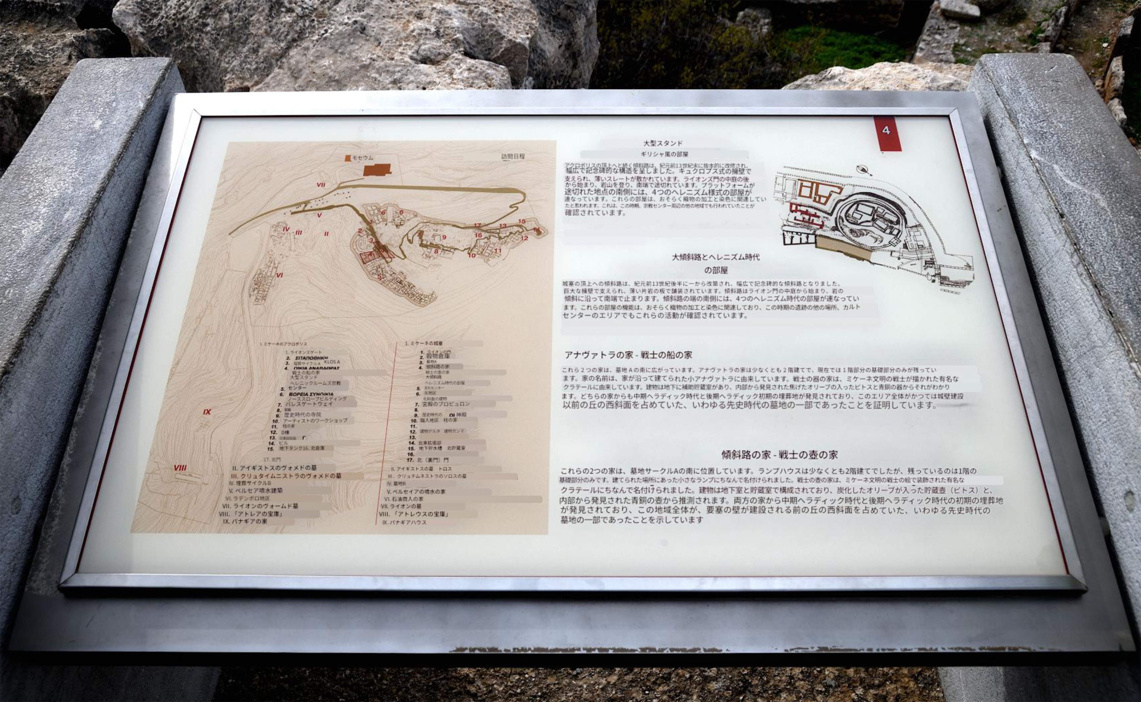 5-3 ミケーネ遺跡(王宮殿)にて、「(4)ヘレニズム時代の部屋」の現地説明板です |