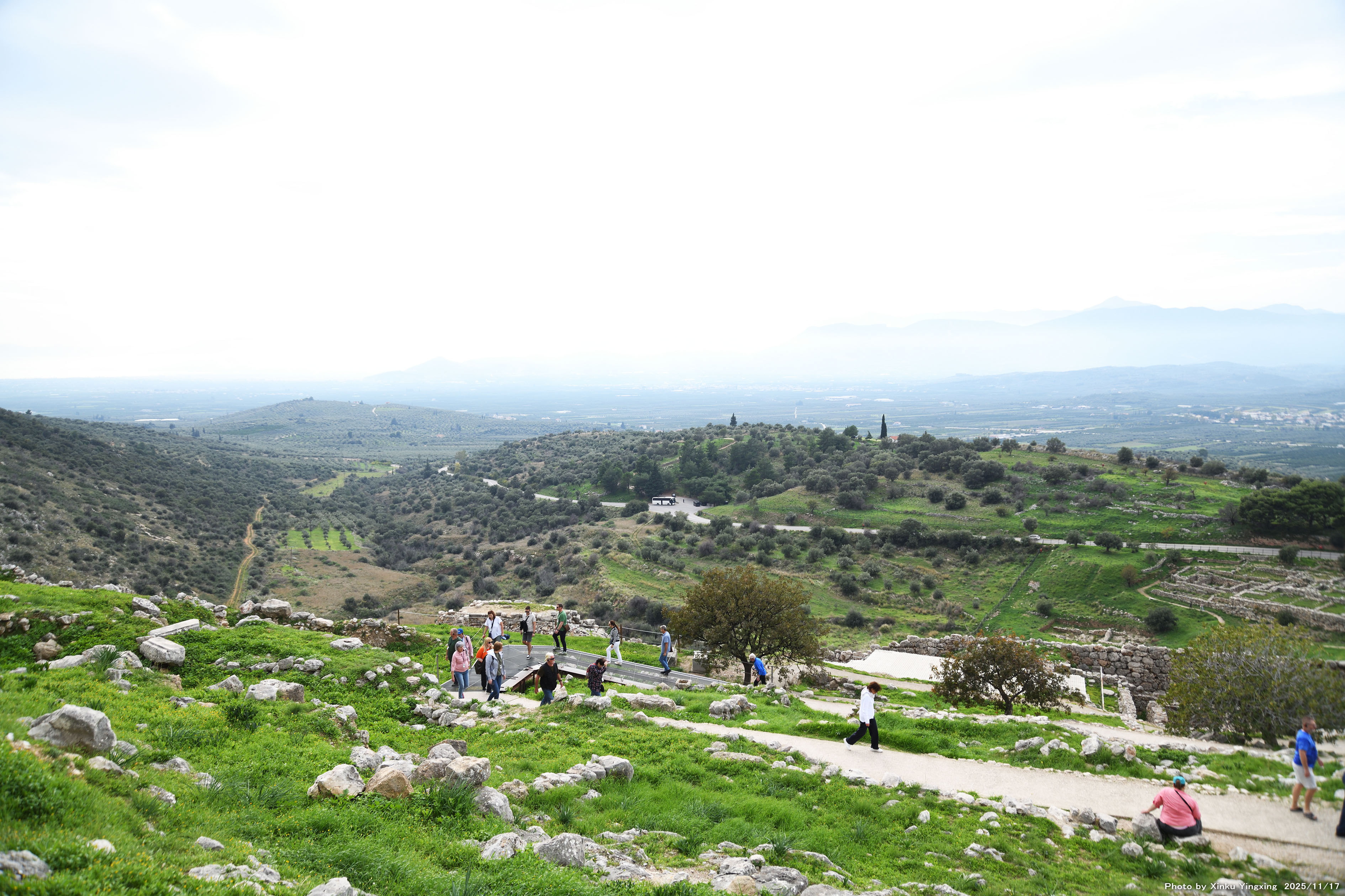 4-7 ミケーネ遺跡(王宮殿)にて、「(3)環状墓地A」跡を望む |