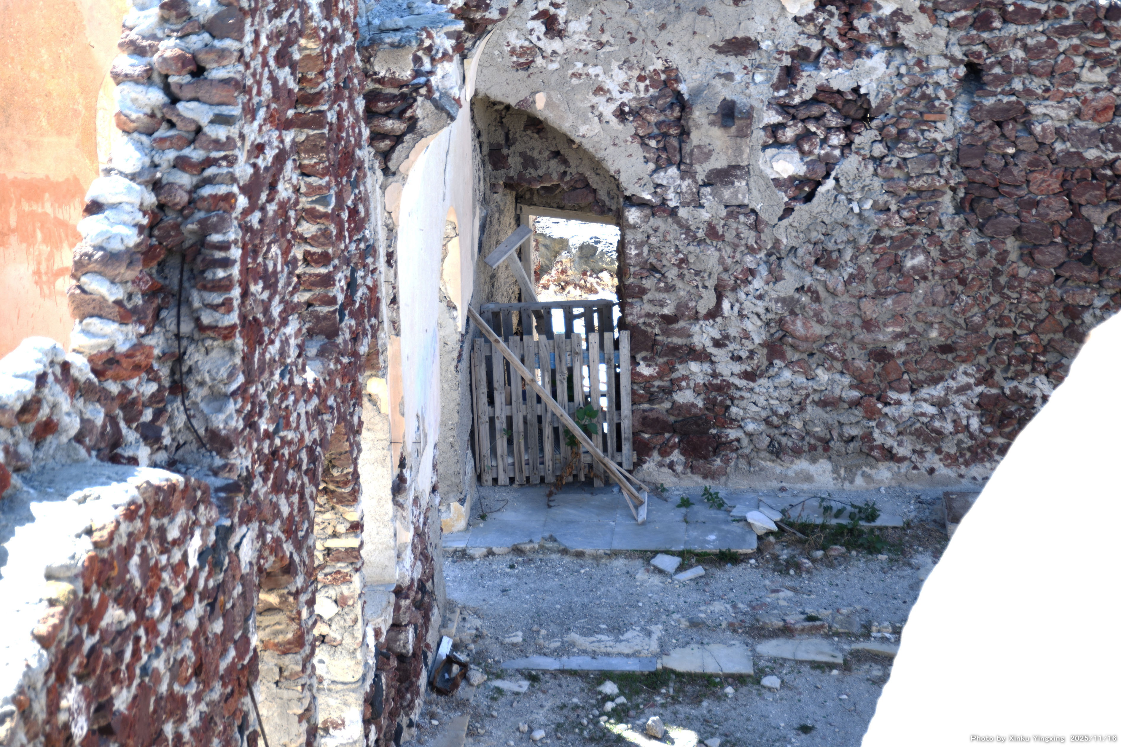 6-3 サントリーニ島、イア城(イアキャッスル)にて、独特の石垣です |