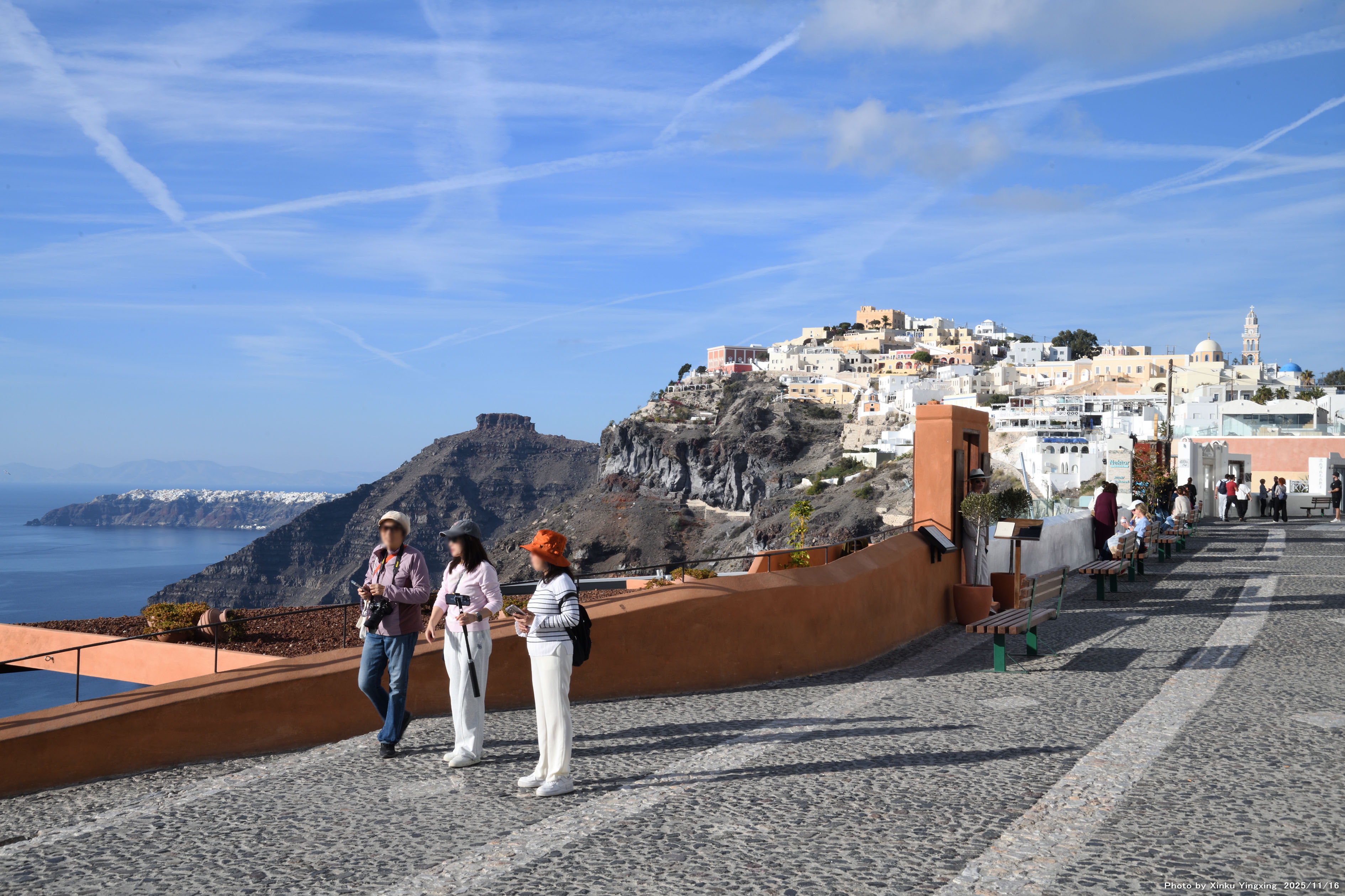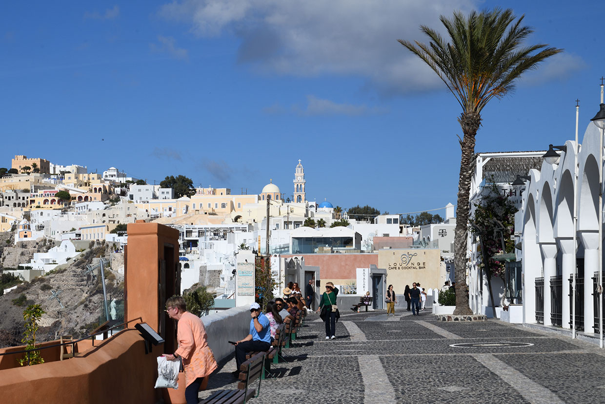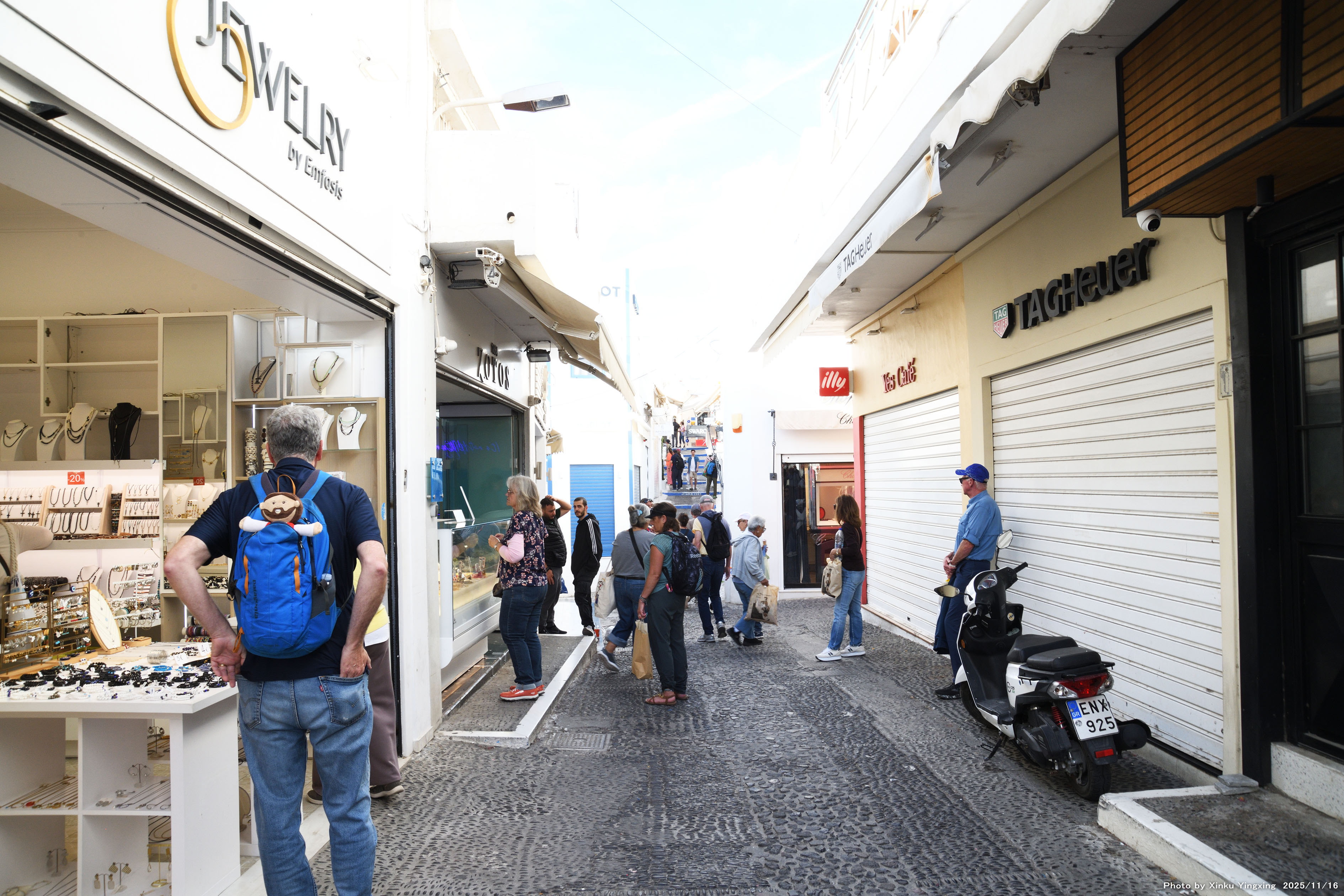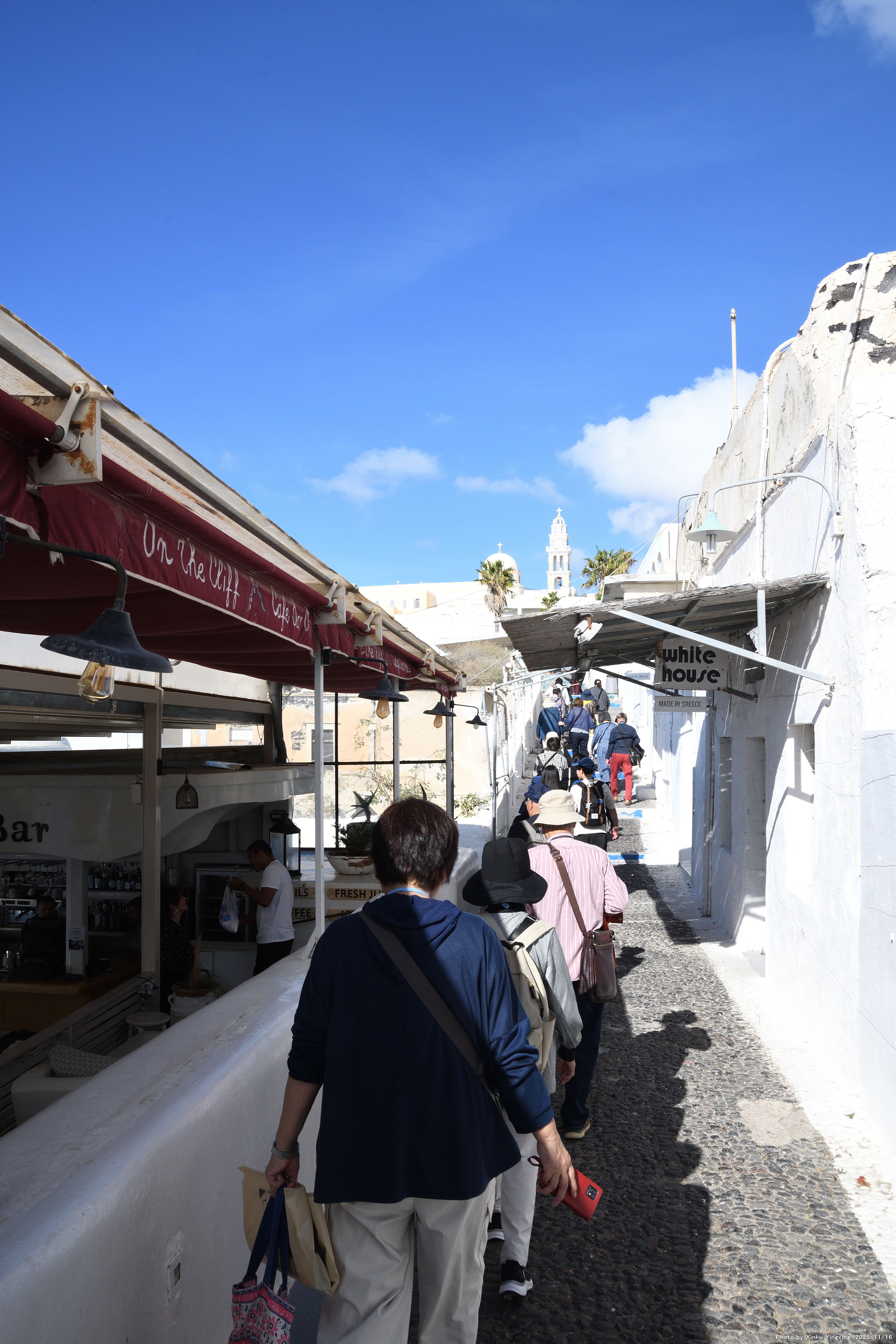 | サントリーニ島フィラ中心街にて、キリスト奉献大聖堂前よりフィラケーブルカー駅方面を望む | |||||||||||||||||||||||||||||||||||||||||||||||||||||||||||||||||||||||||||||||||||||||||||||||||||||||||||||||||||||||