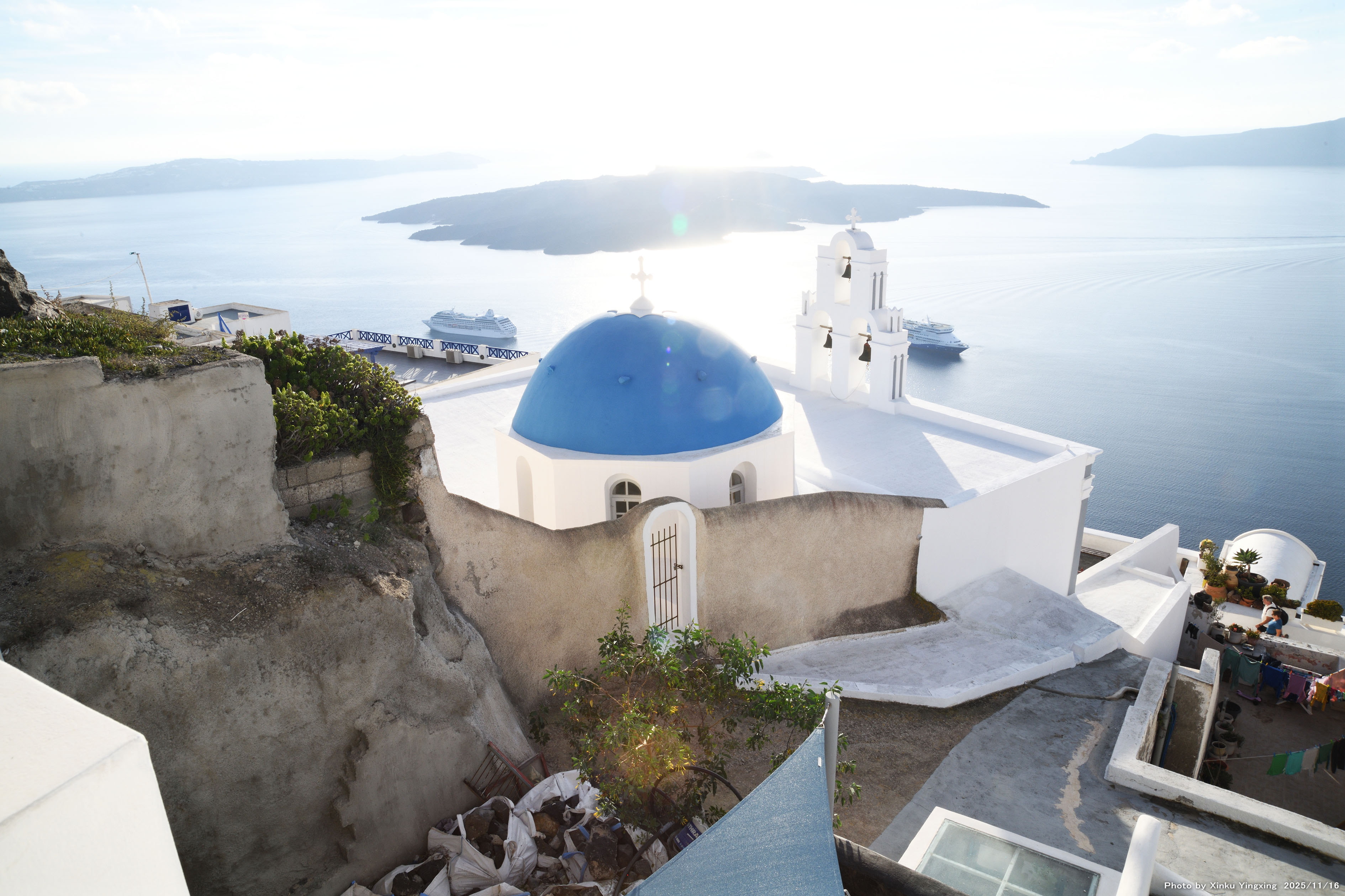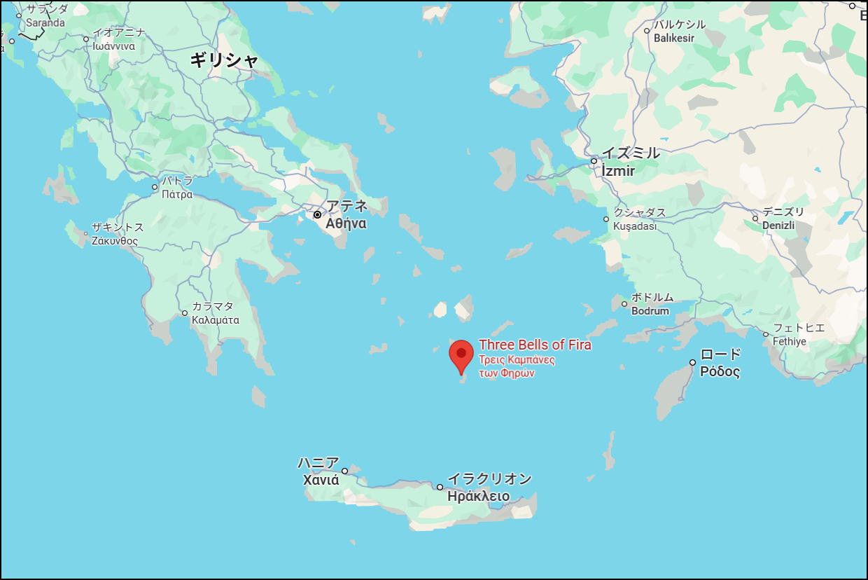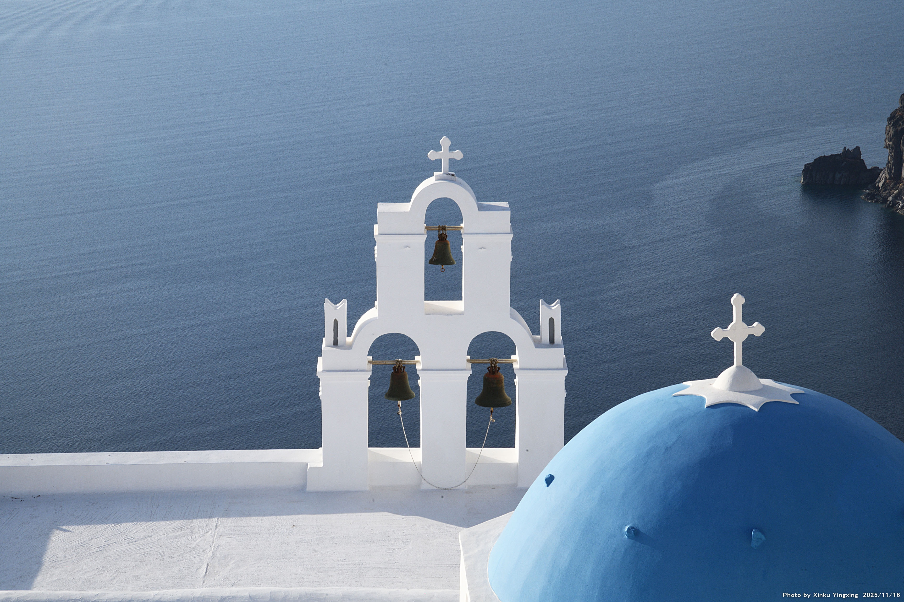 フィラのスリーベルは、フィロステファニ地区にある青いドームと3つの鐘のあるギリシャ教会で、サントリーニ島を代表する景観とのことです。