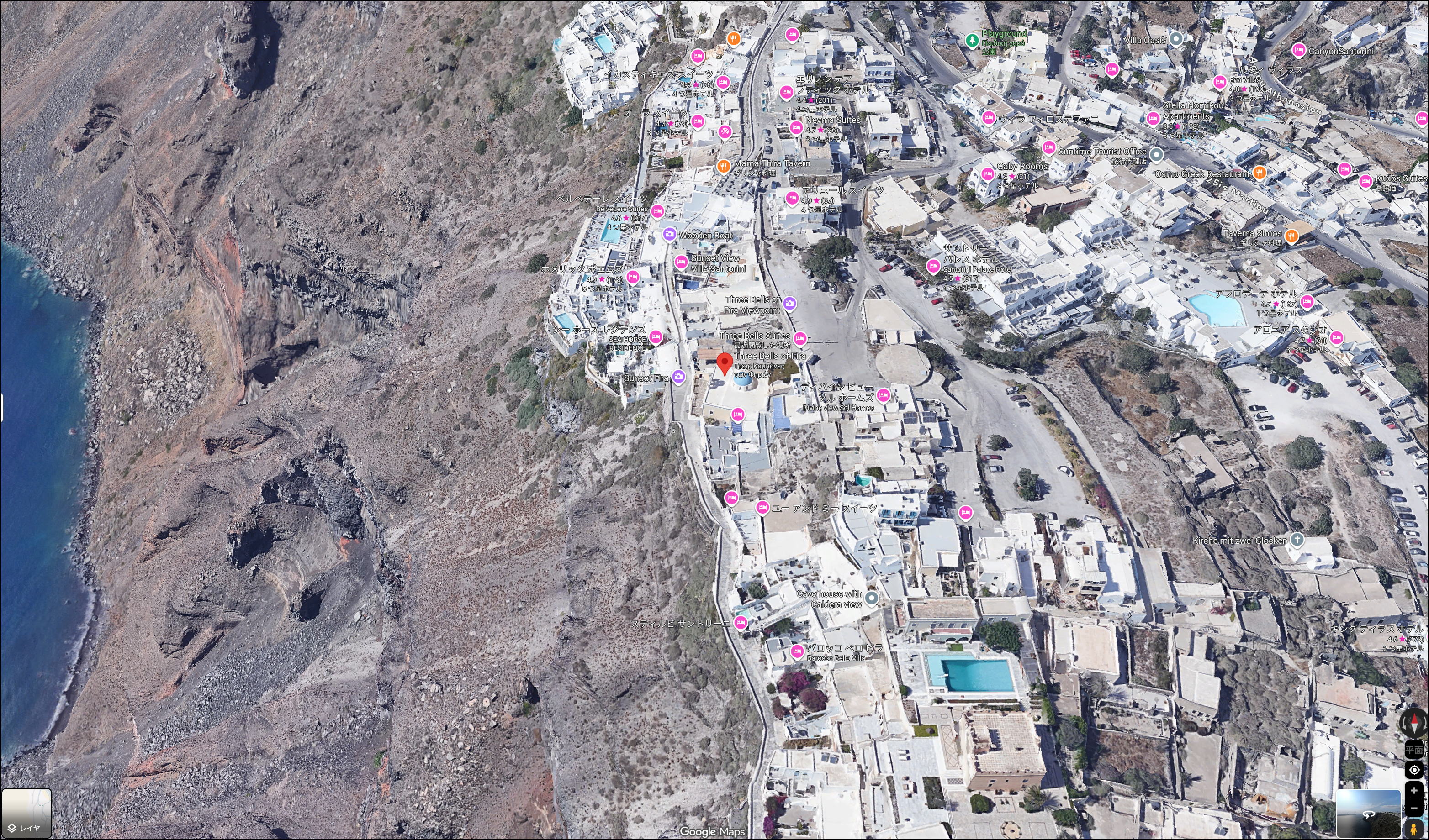 | 6.サントリーニ島フィラ 海側から見た「スリーベル」にて |