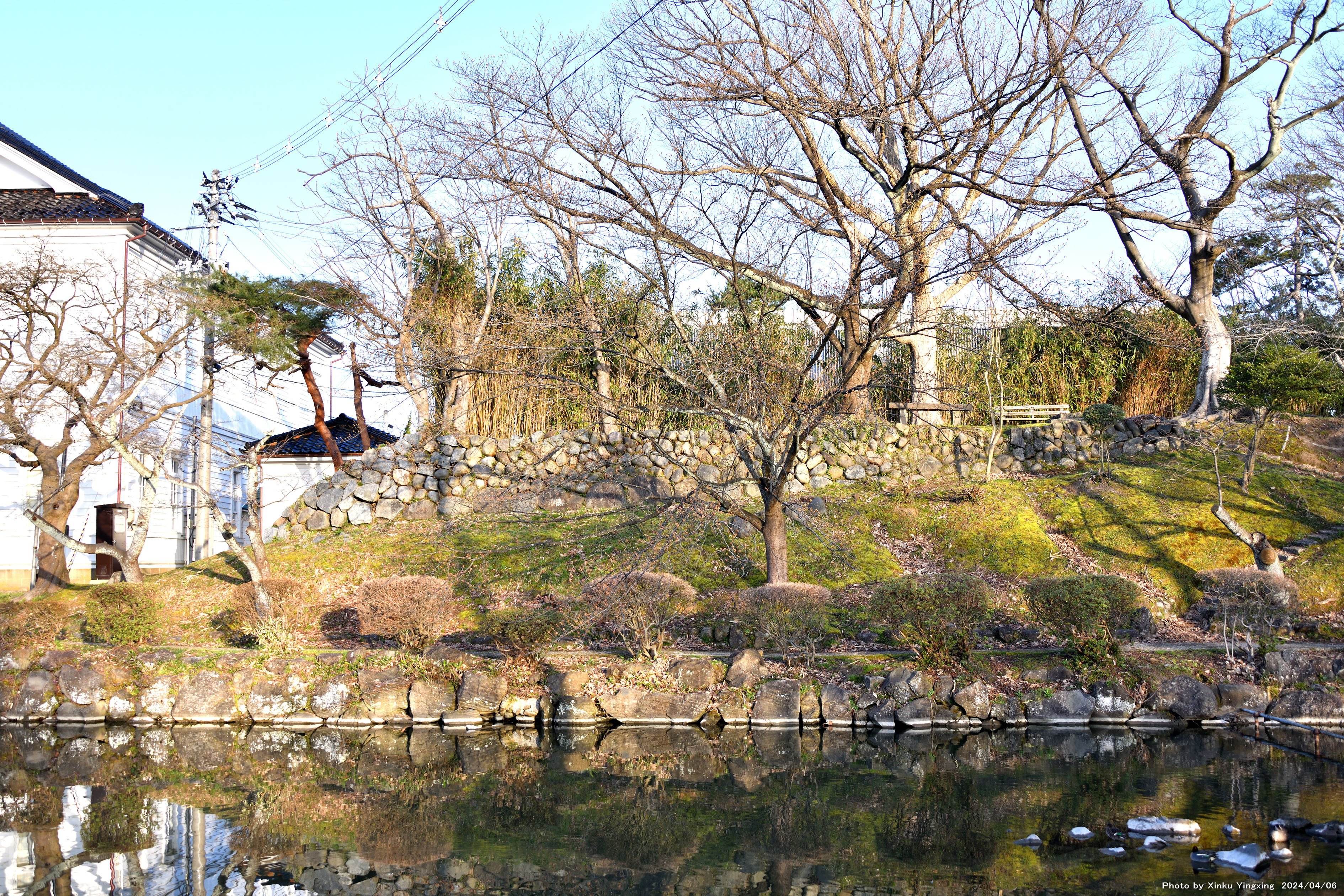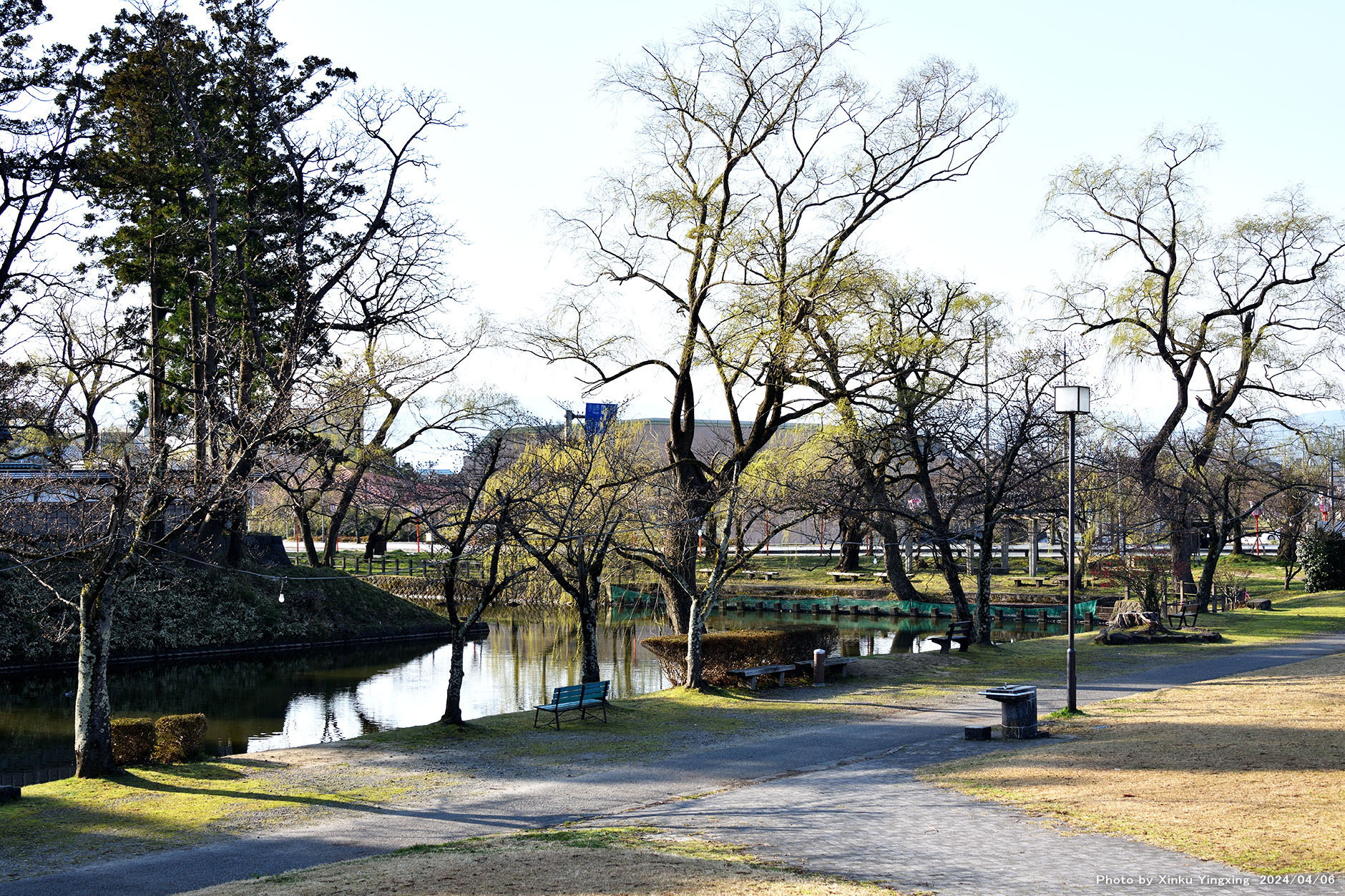 2-2 鶴ヶ岡城「二ノ丸」にて、堀と本丸跡を望む。建物は「大宝館(郷土人物等資料展示施設)」です |