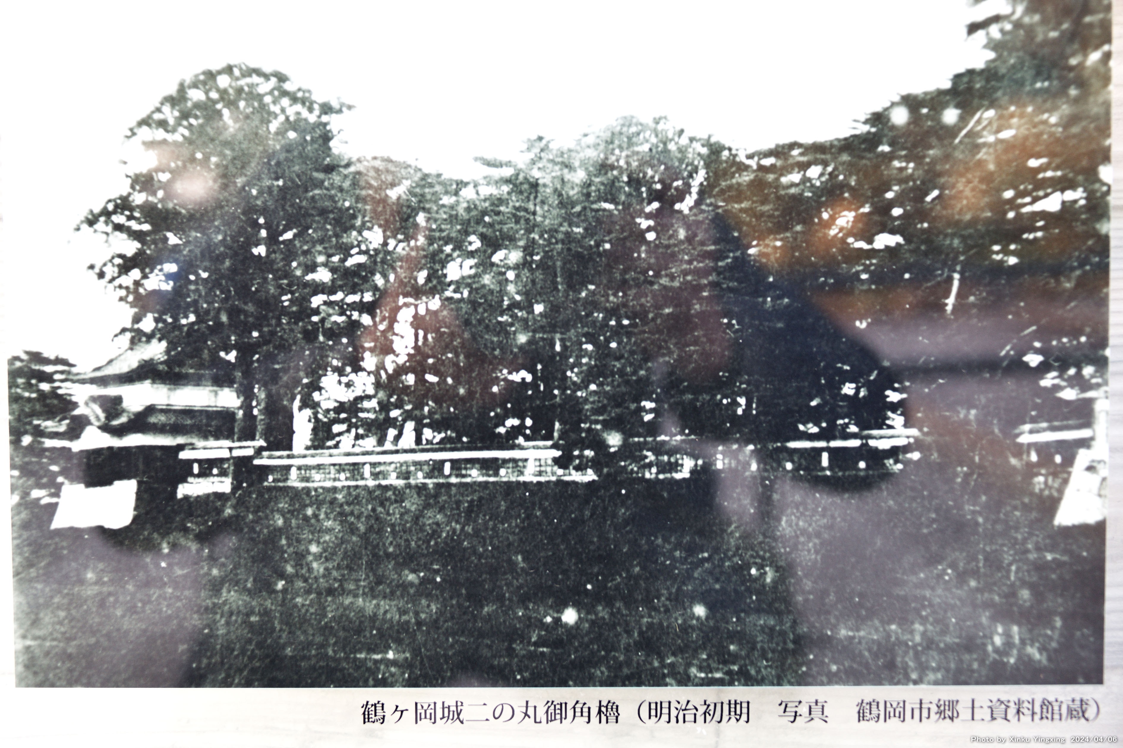 3-2 鶴ヶ岡城「二ノ丸」にて、「本丸中門跡」を望む。建物は「大宝館」です |