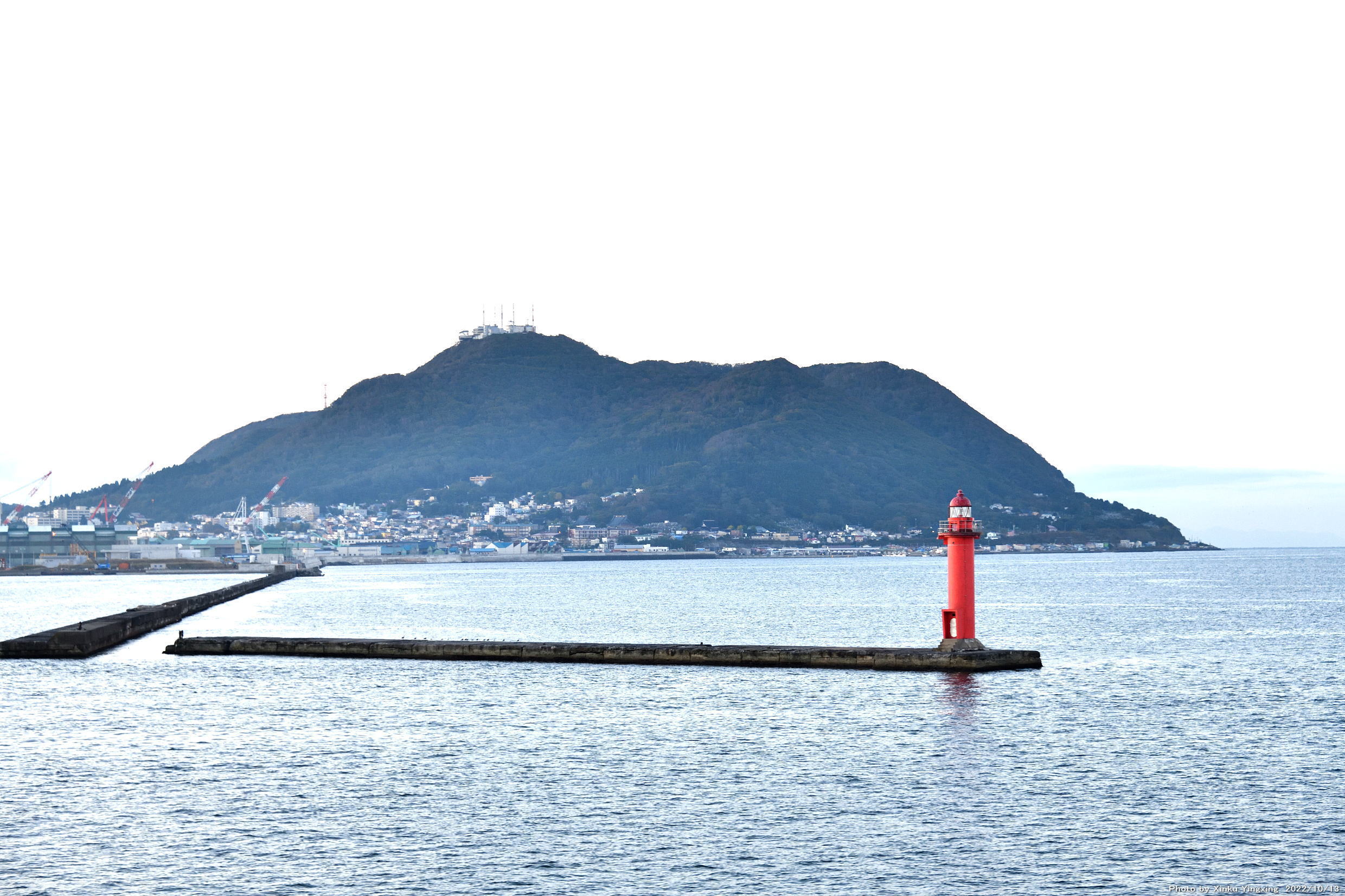 函館山(はこだてやま)は、北海道函館市の市街地西端にある標高334m、周囲約9kmの山です。牛が寝そべるような外観から臥牛山(がぎゅうざん)とも呼ばれています。