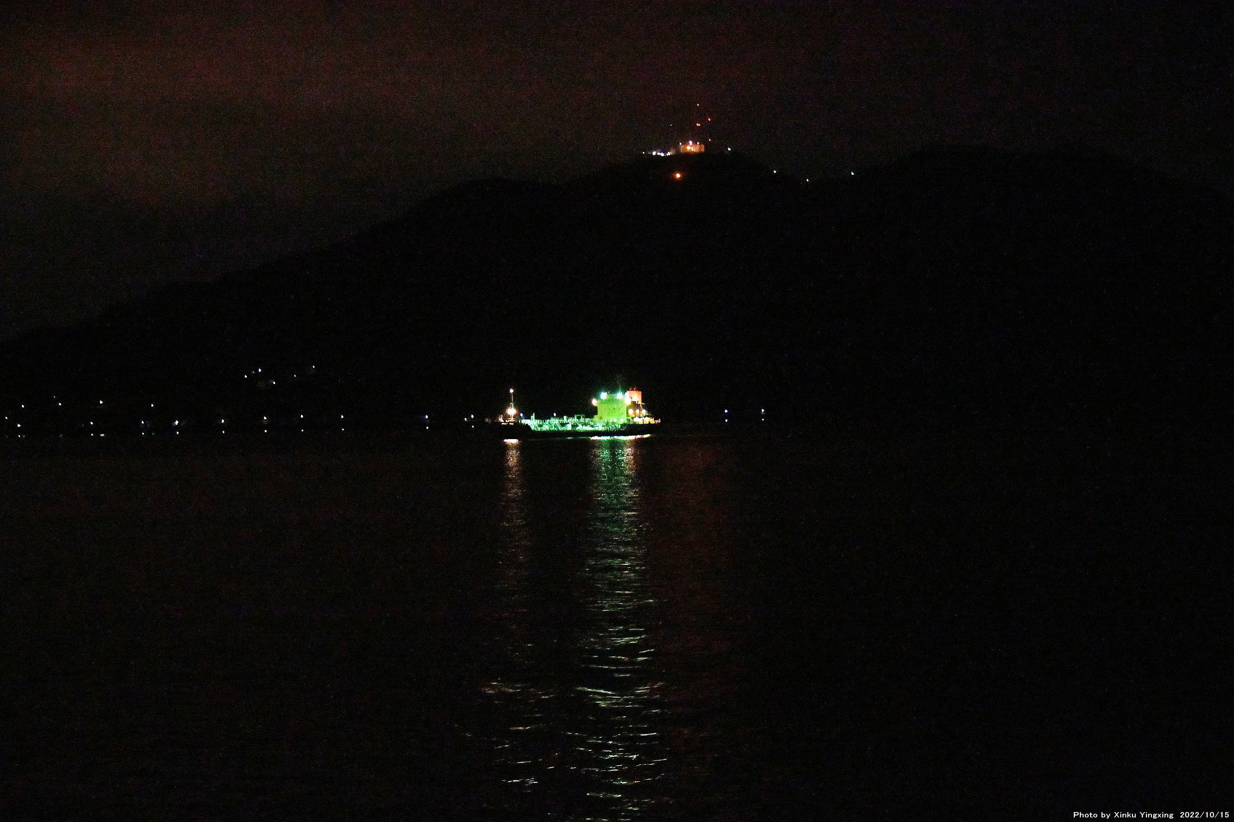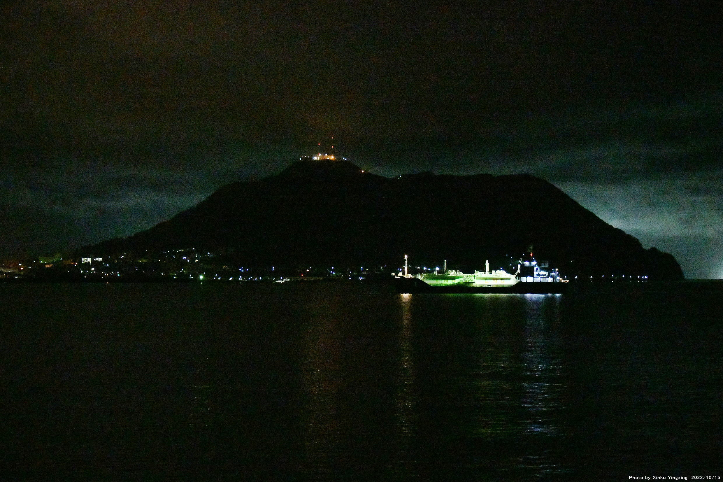 8-3 青函フェリーより、「函館山」を望む。右側の明かりはイカ釣り船の明かりです