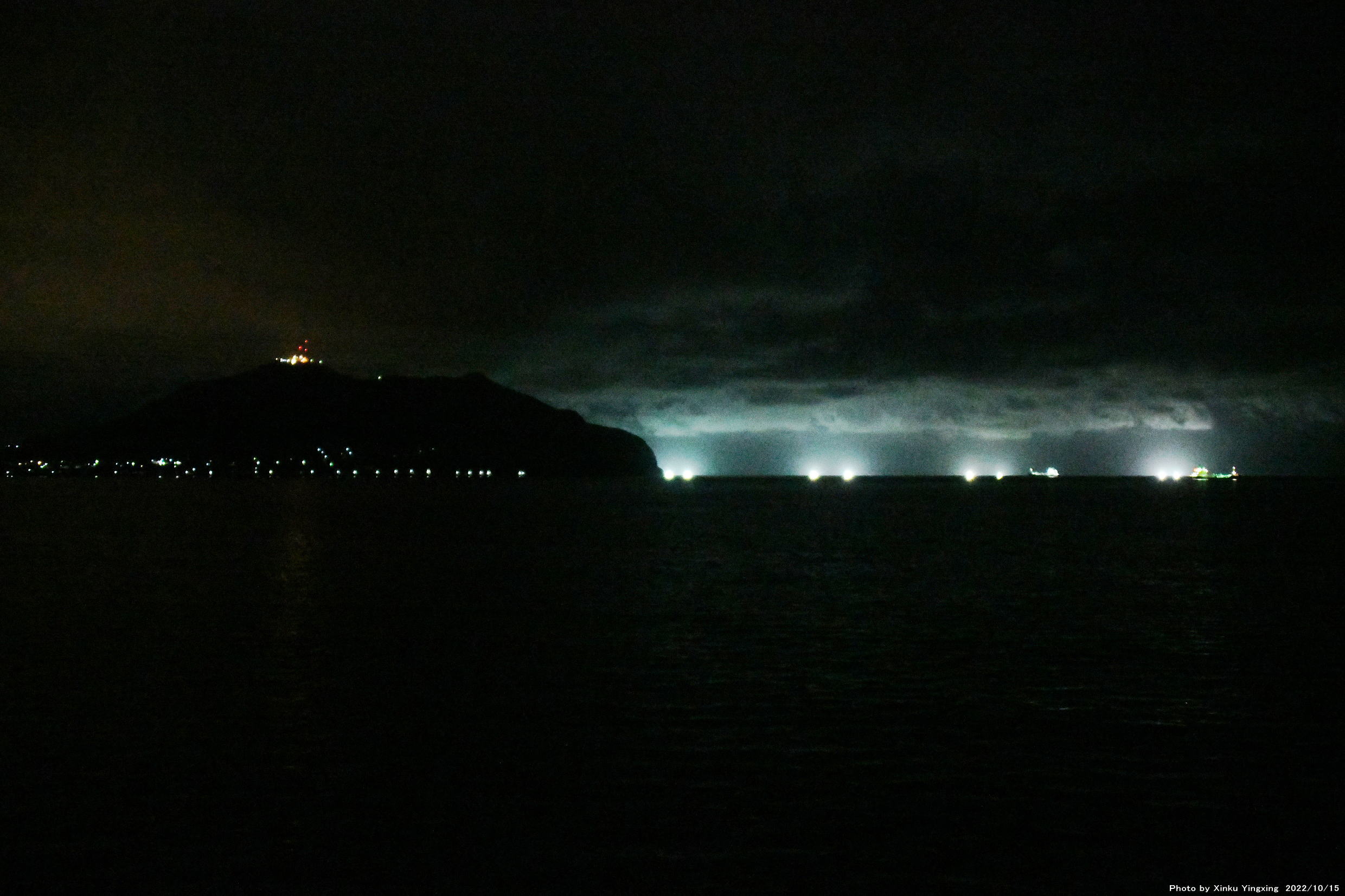 7-5 青函フェリーより、「函館山」を望む。右側の幻想的な明かりはイカ釣り船の明かりです