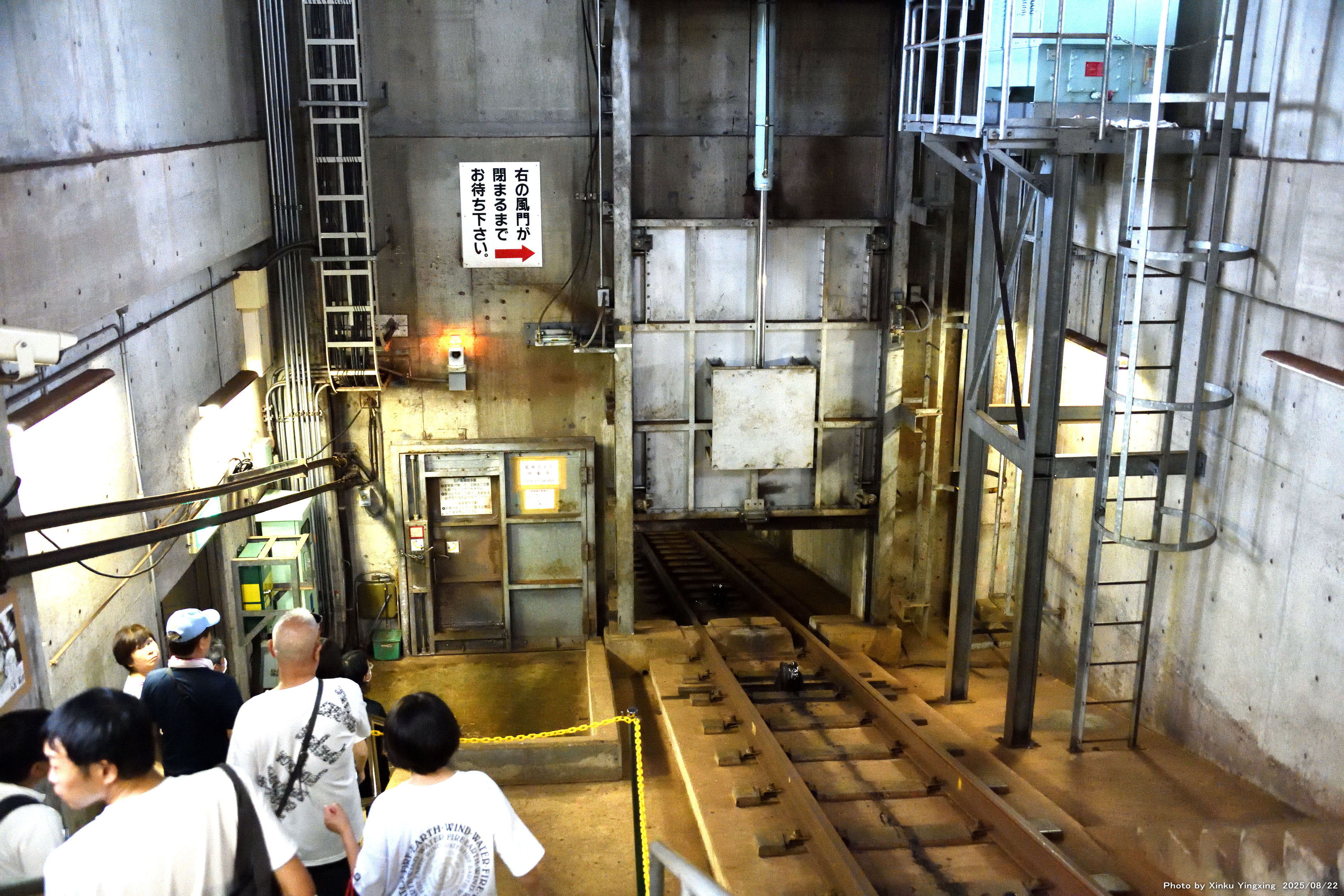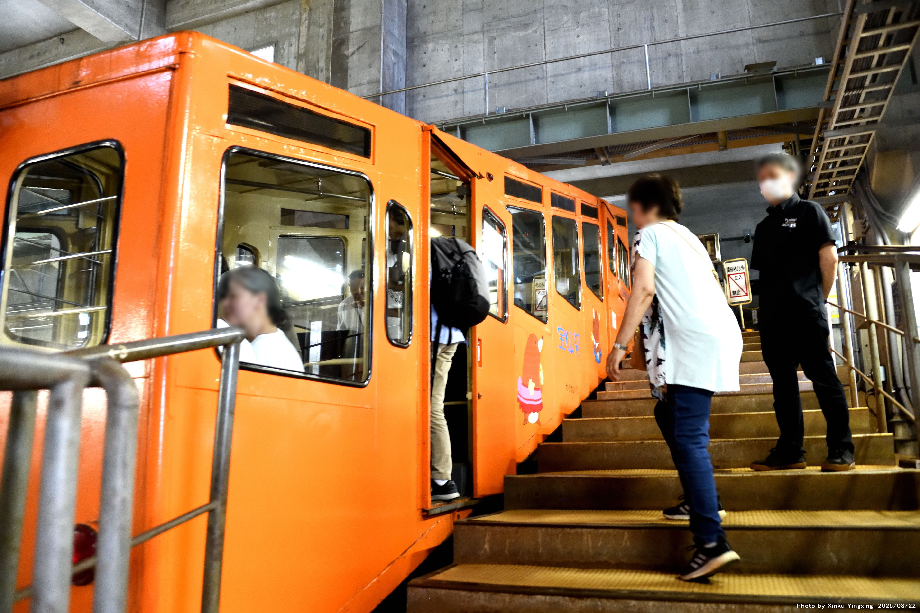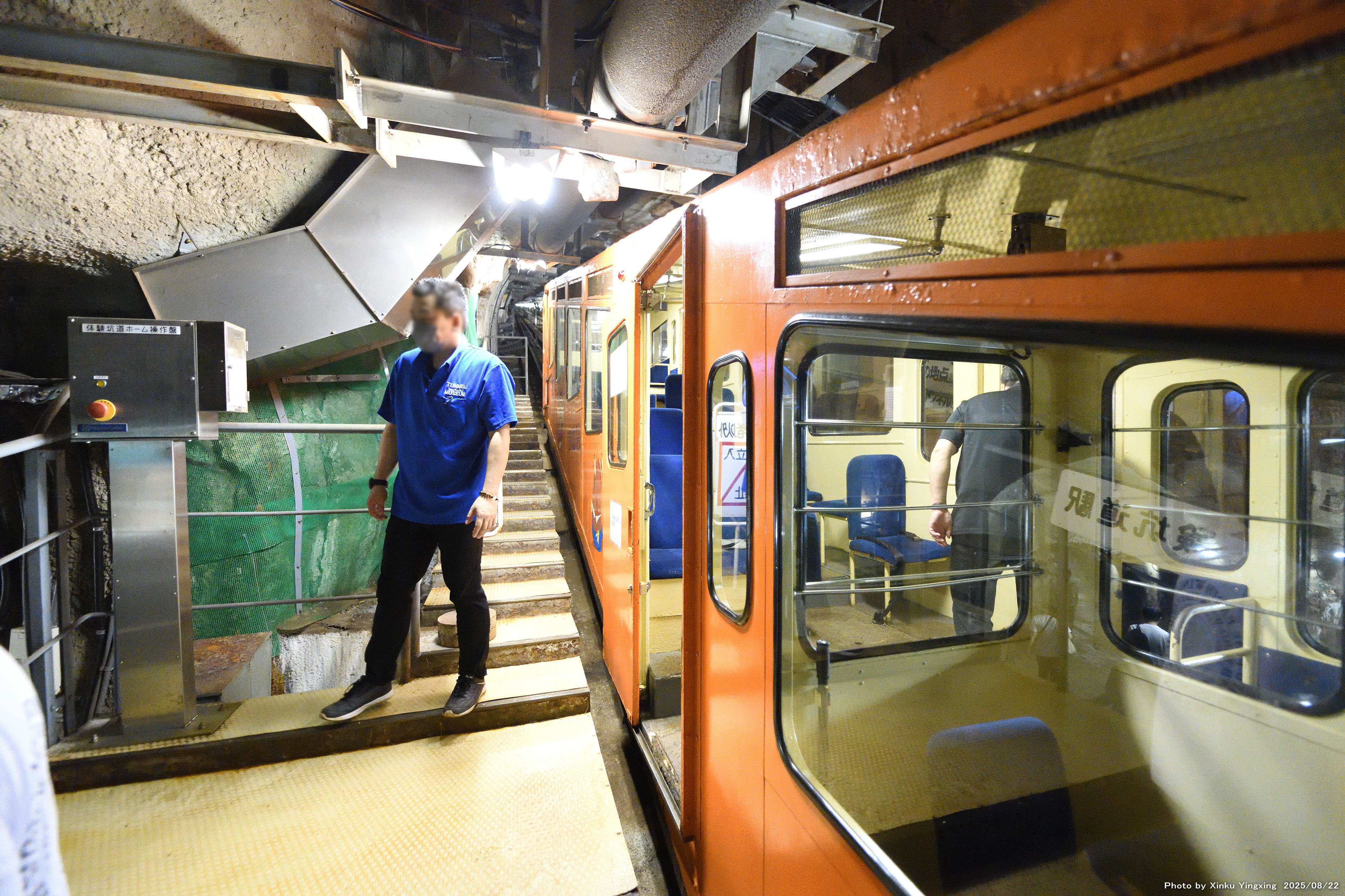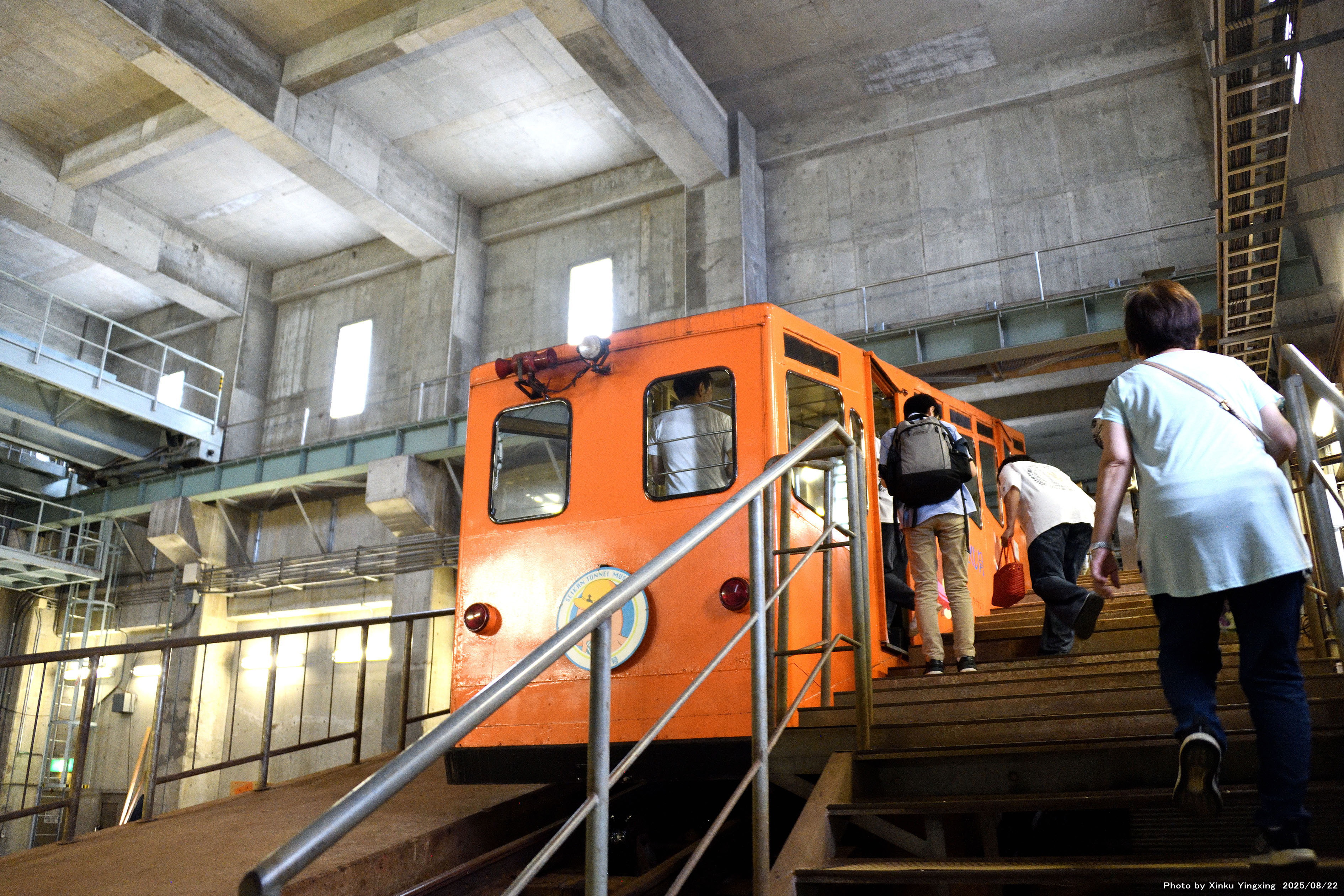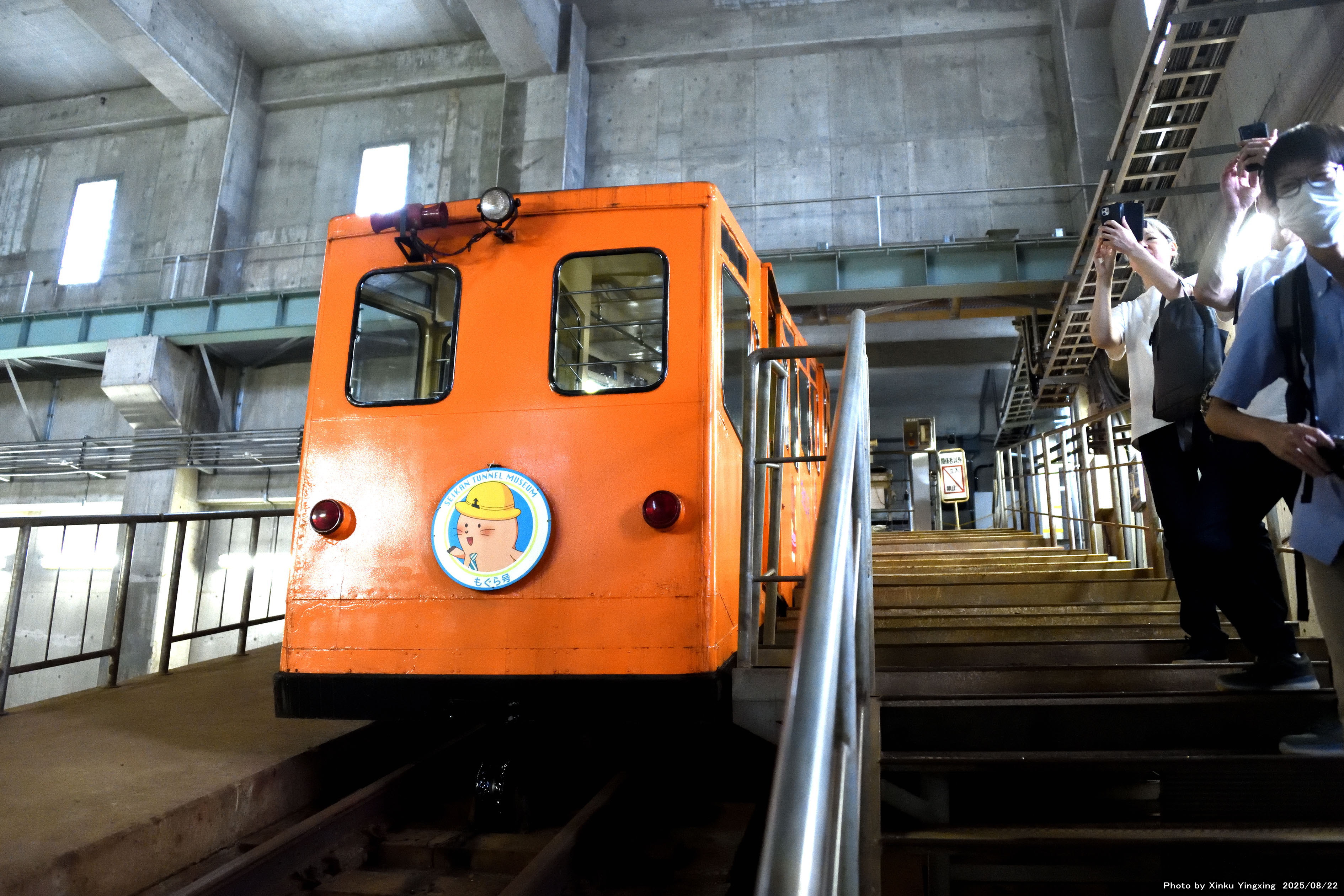 7-4 竜飛斜坑線にて、地上階の青函トンネル記念駅に上っていきます |