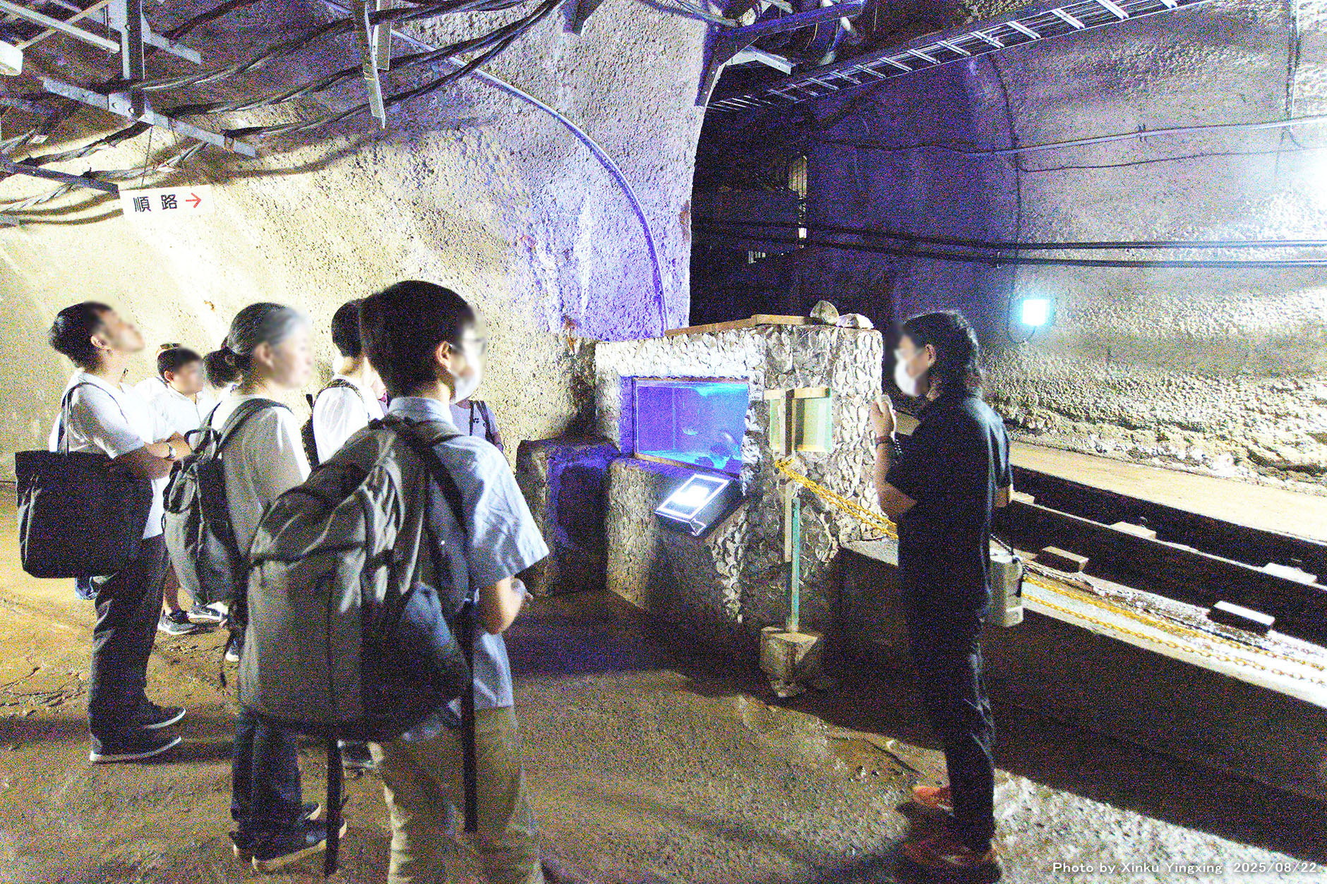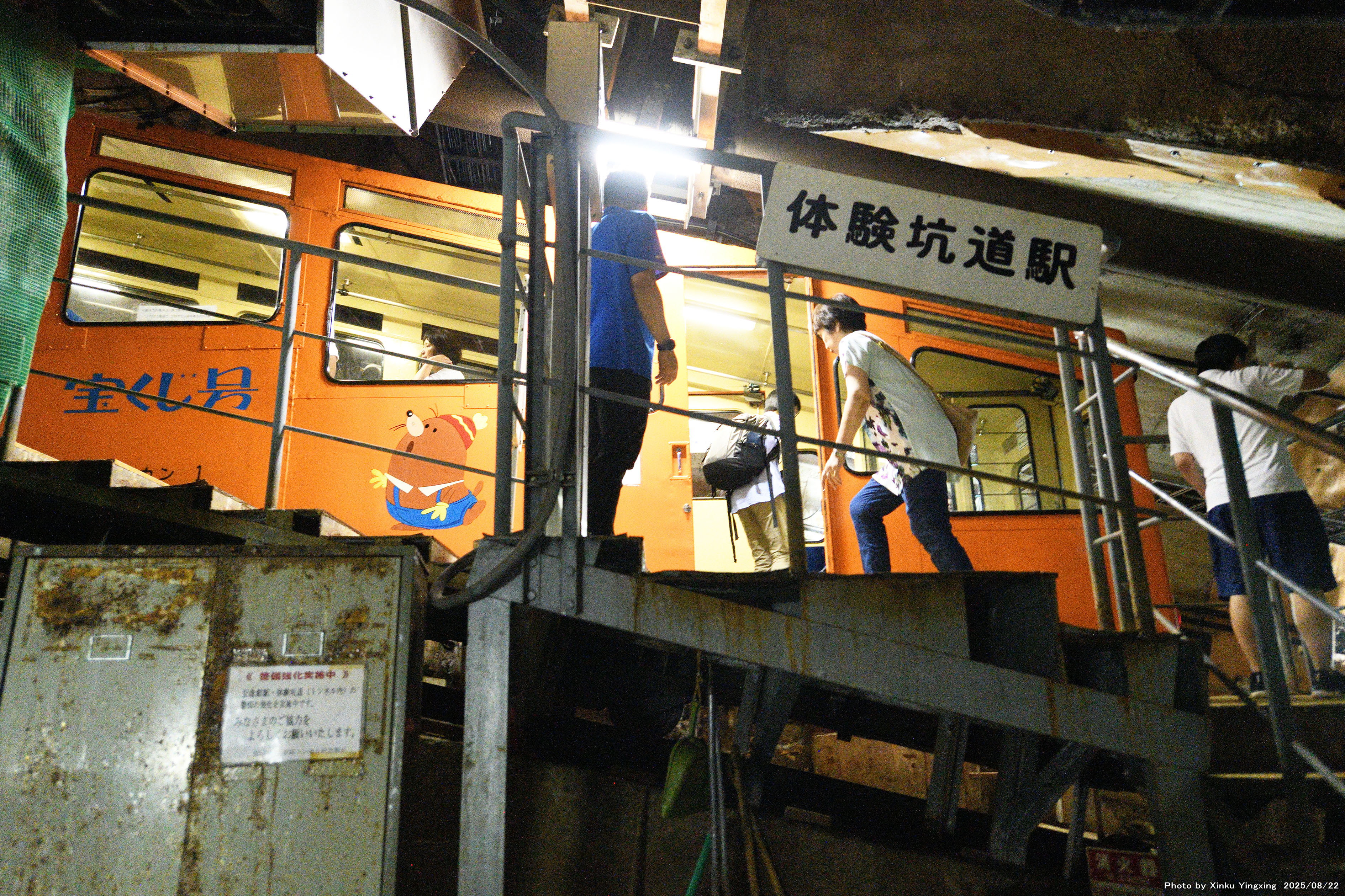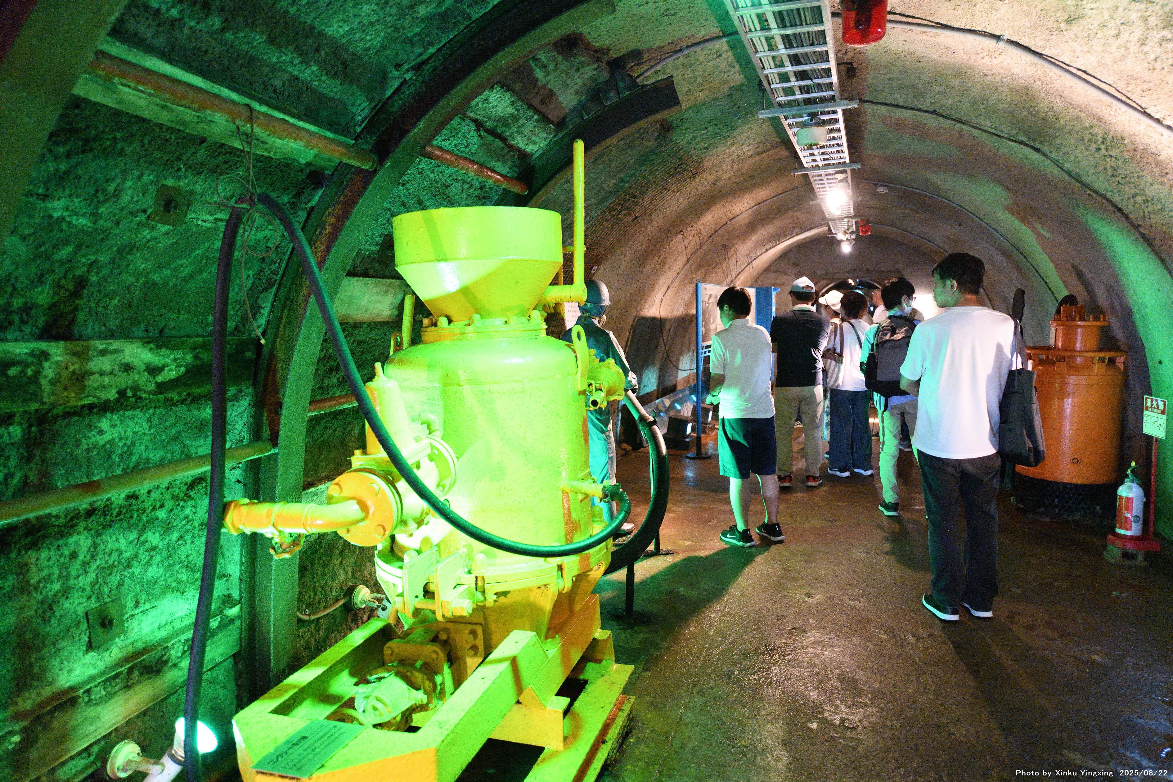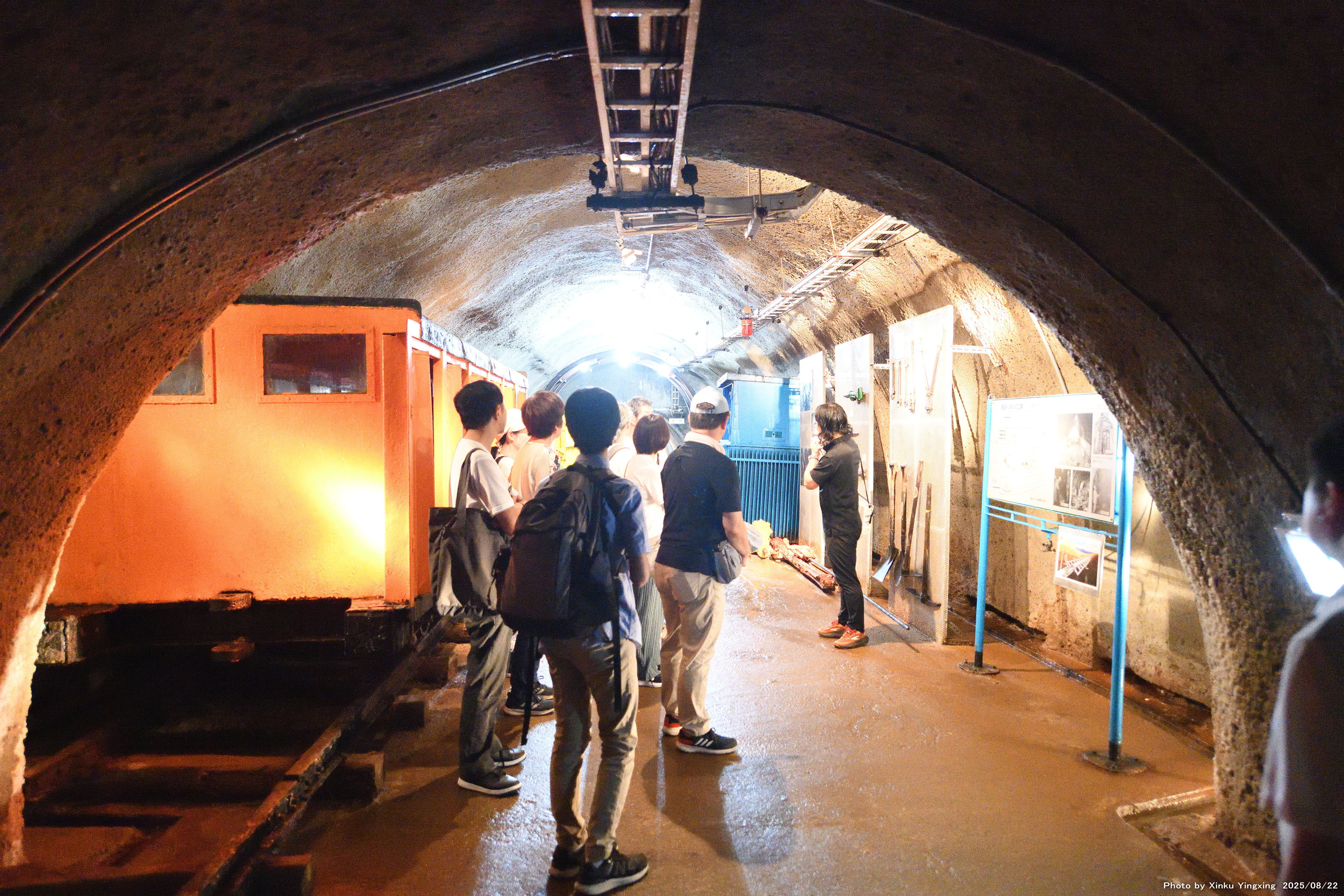 体験坑道駅で坑道を進むと、坑道の一角には、掘削に使われた機械や器具、説明パネルなどで当時の現場が 再現されていました。とても貴重な体験をした観光でした。