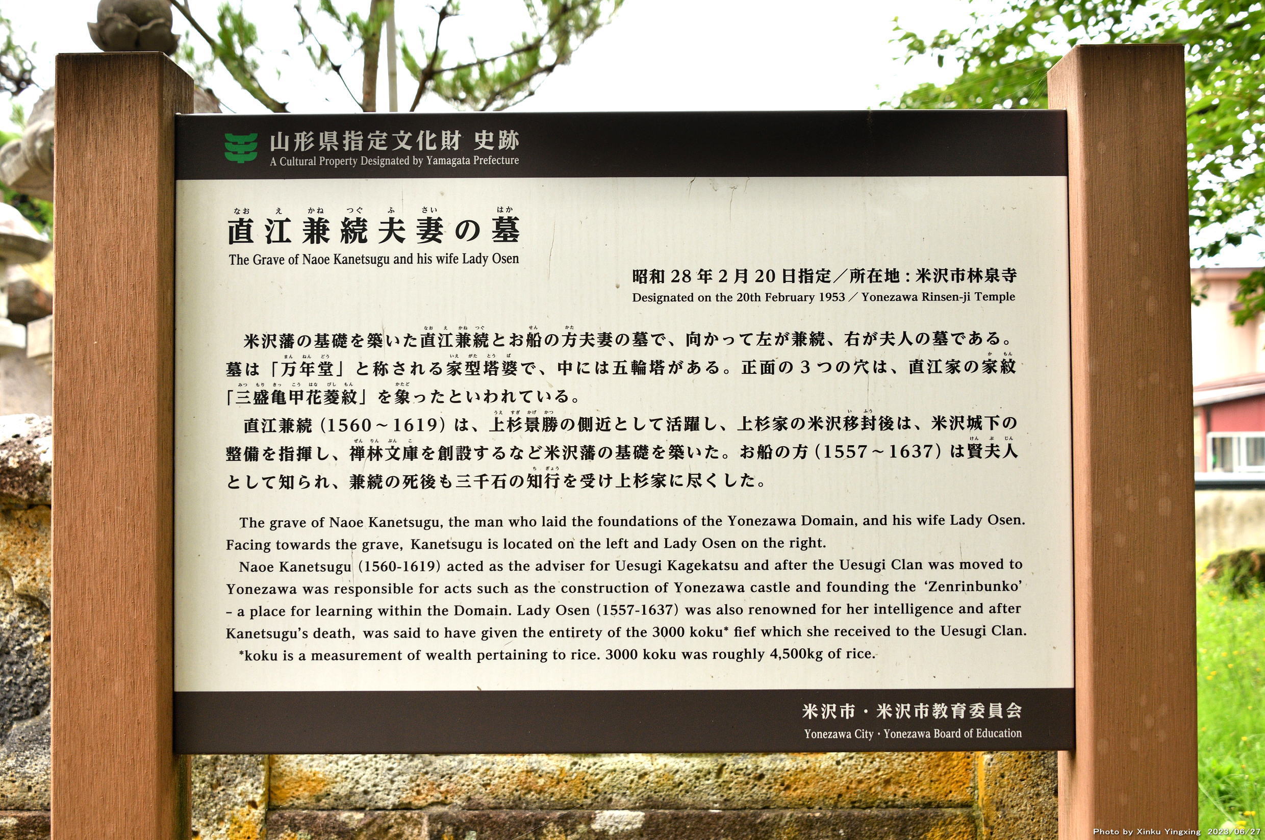4-3 「直江兼続公(夫妻)の墓」の説明版です