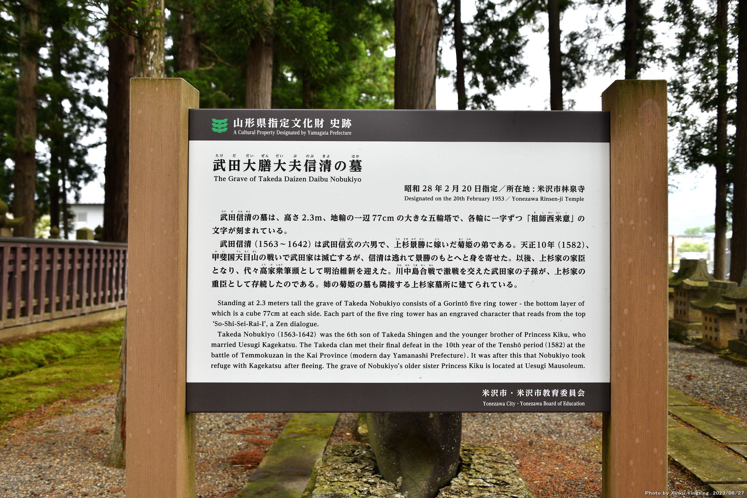 現在の林泉寺境内には仙洞院、武田信玄の娘で景勝正室の菊姫をはじめとする歴代藩主の夫人、菊姫の弟で上杉家に仕えた武田信清などの上杉家の子女・縁者や、分家である米沢新田藩の歴代藩主、米沢藩重臣の墓があります。また上杉治憲(鷹山)側室お豊の方の墓も林泉寺境内に設けられ、景勝側室の墓も寛永6年(1629年)4月、米沢極楽寺に移葬されるまでは林泉寺にありました。