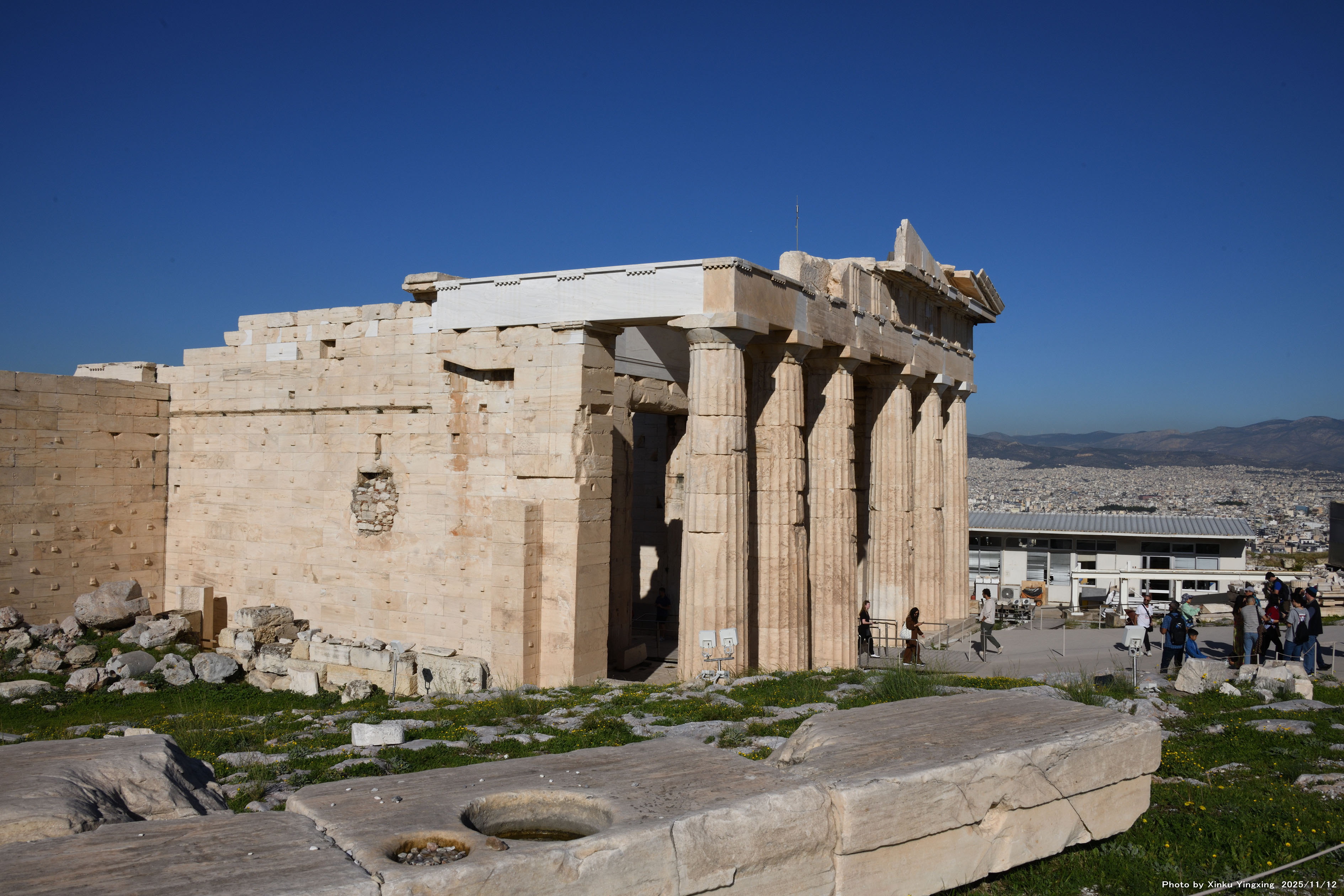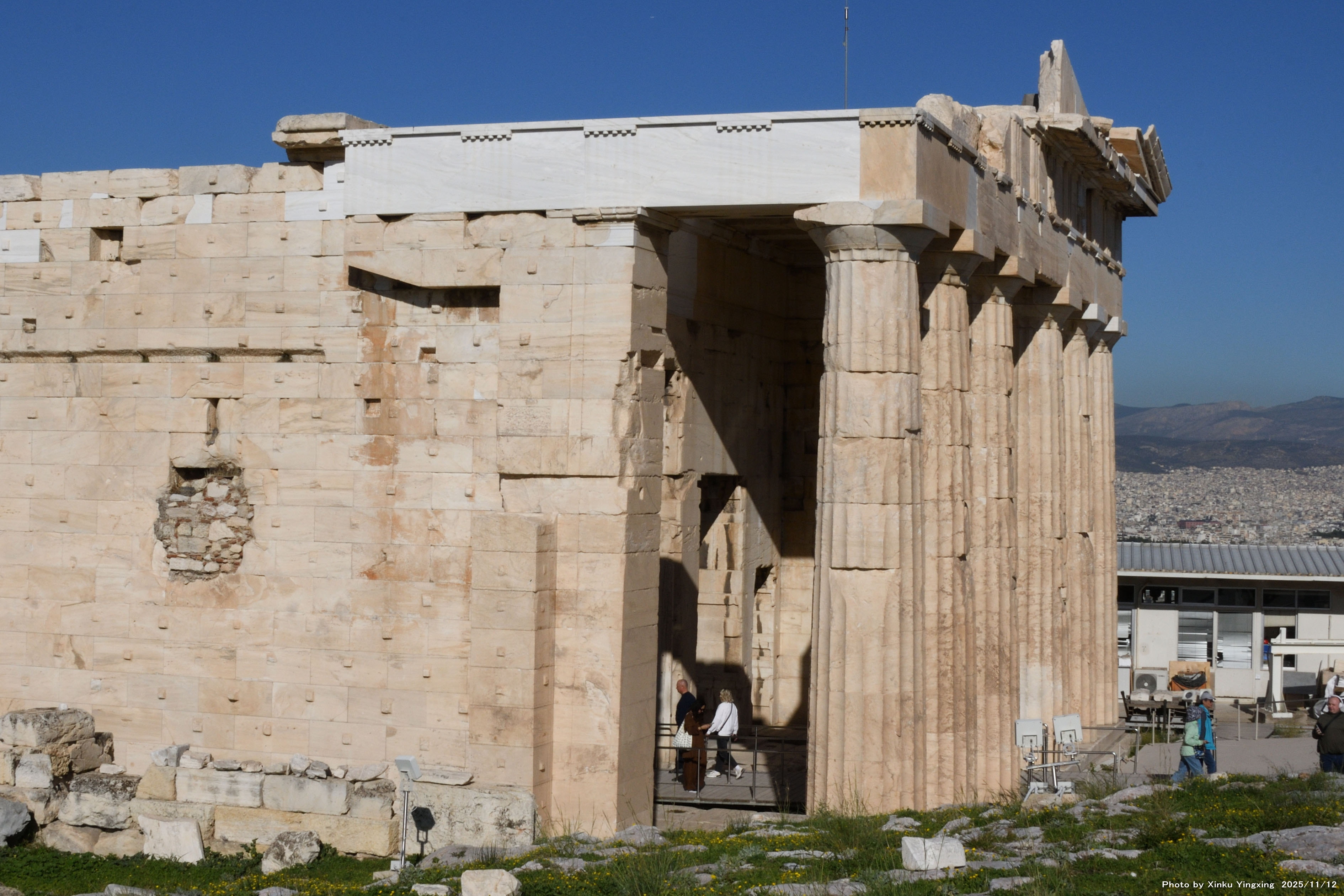 左側はプロピュライア、右側はパルテノン神殿です |