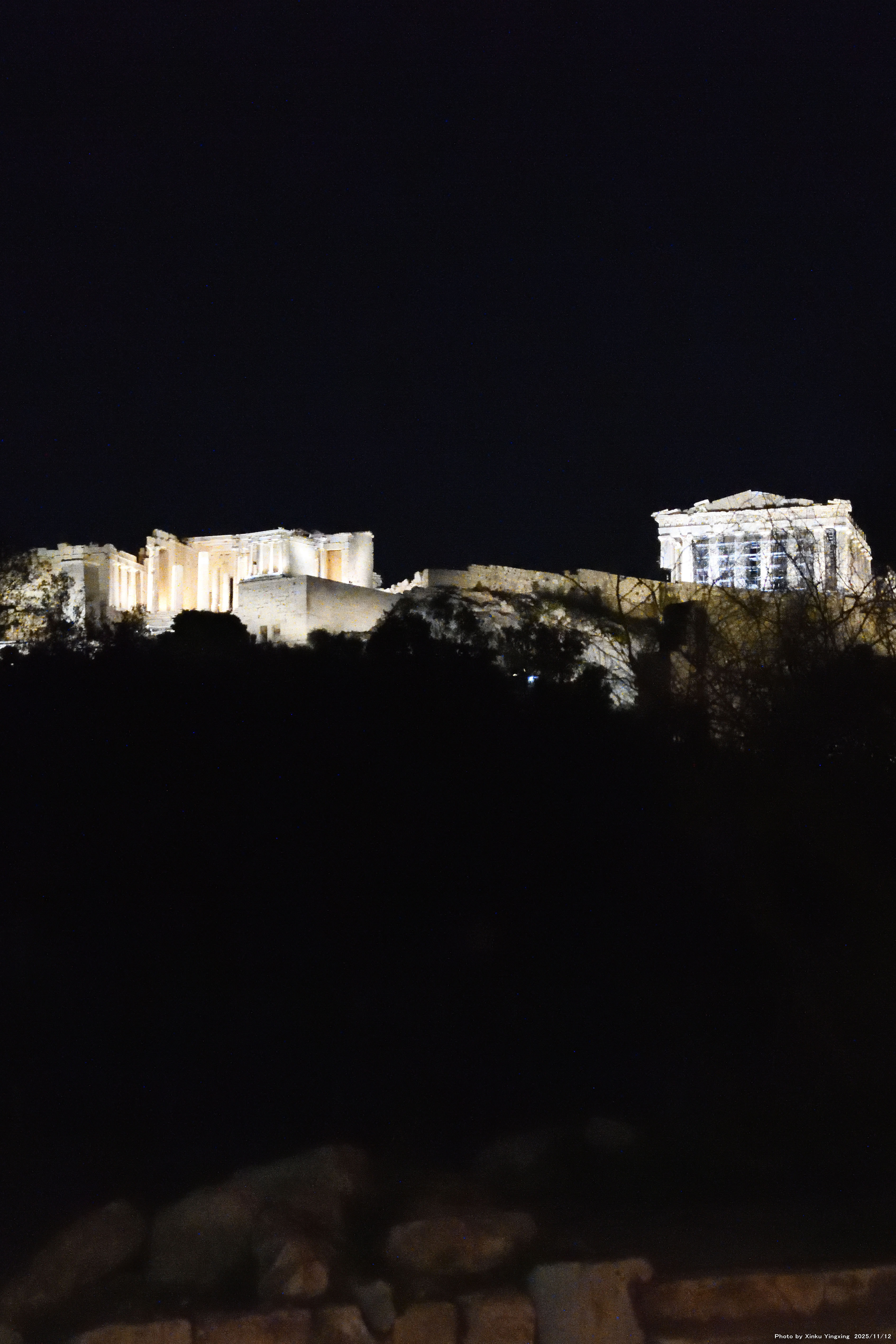 7-5 アクロポリスの丘、ライトアップを望む。