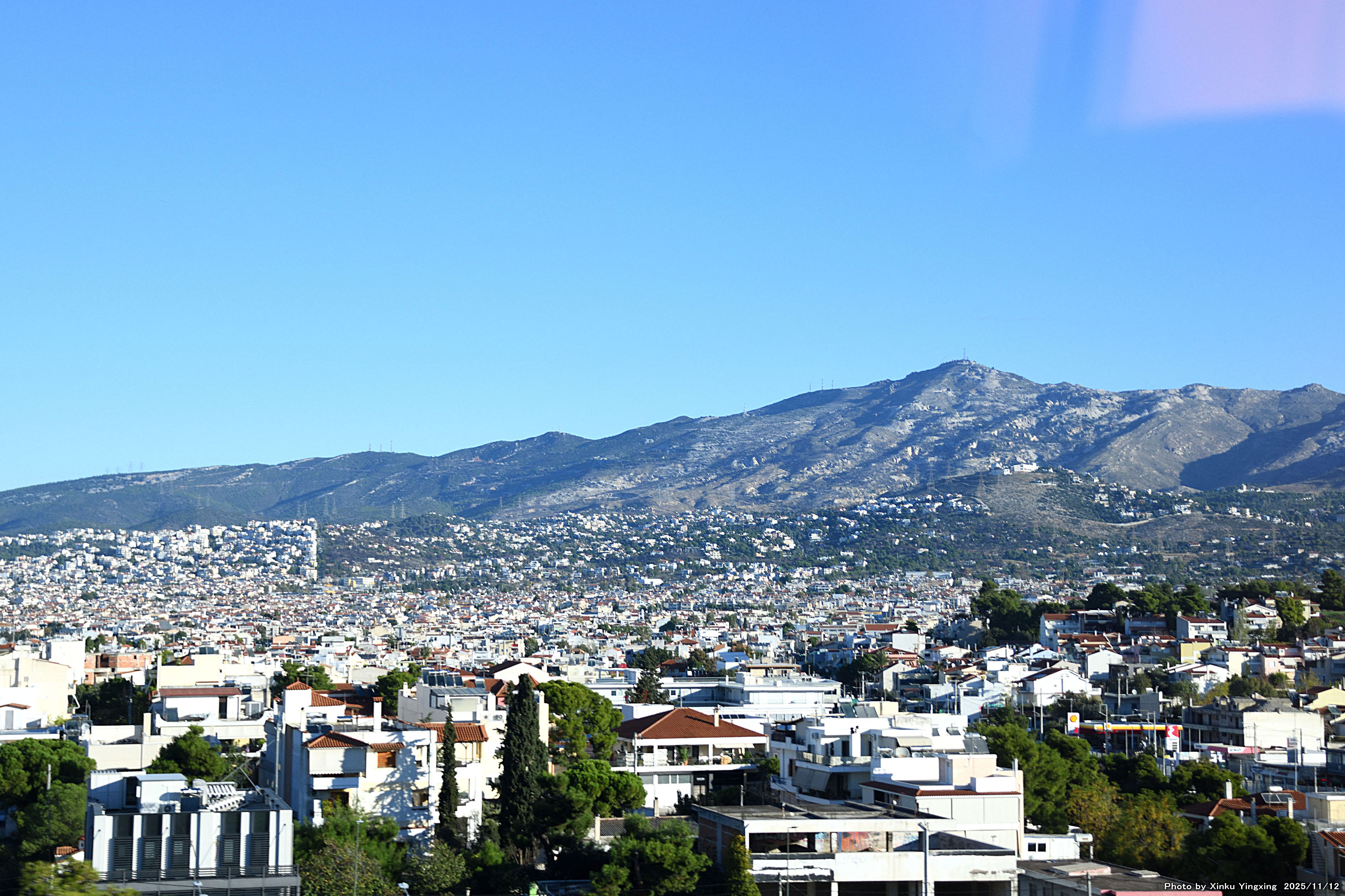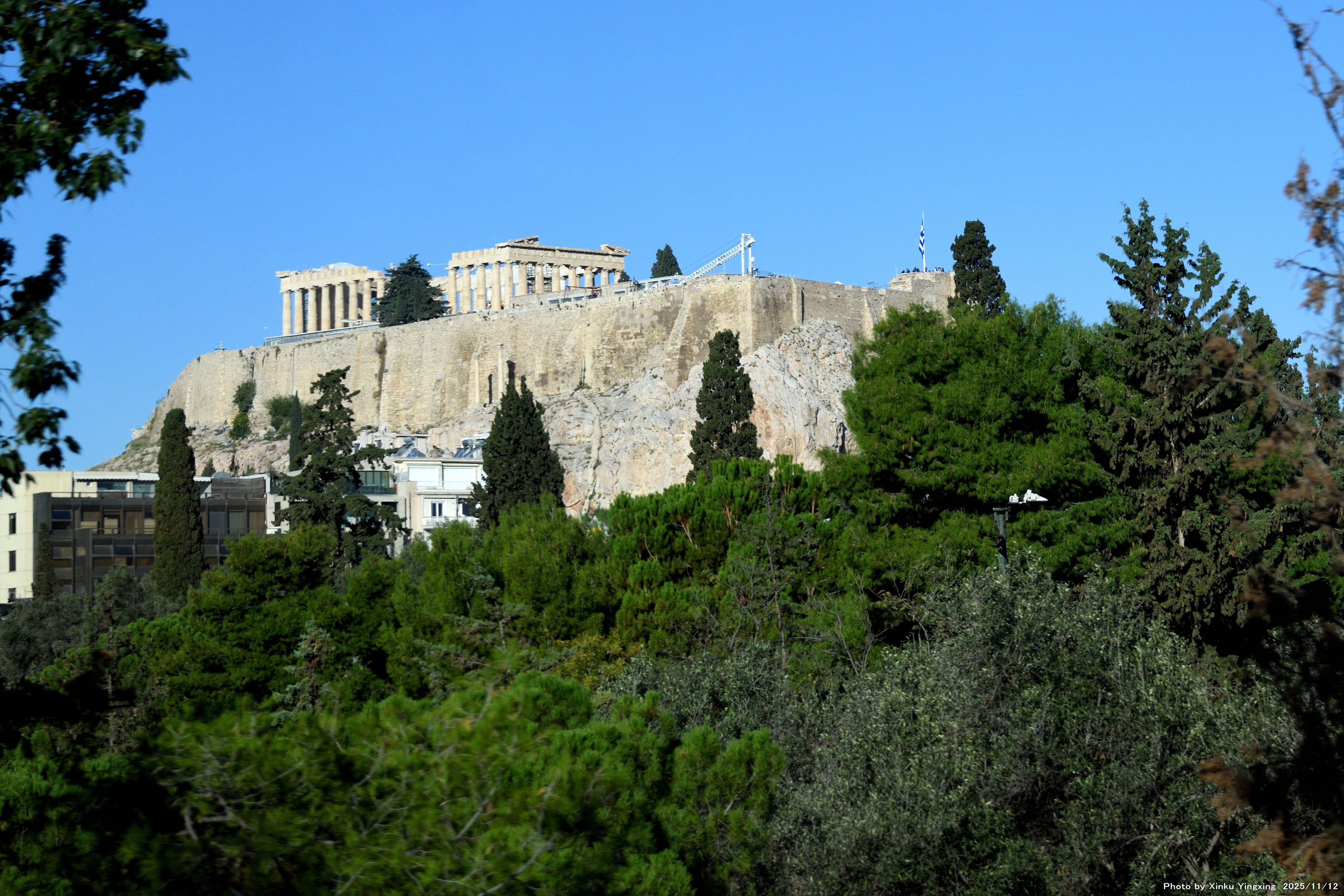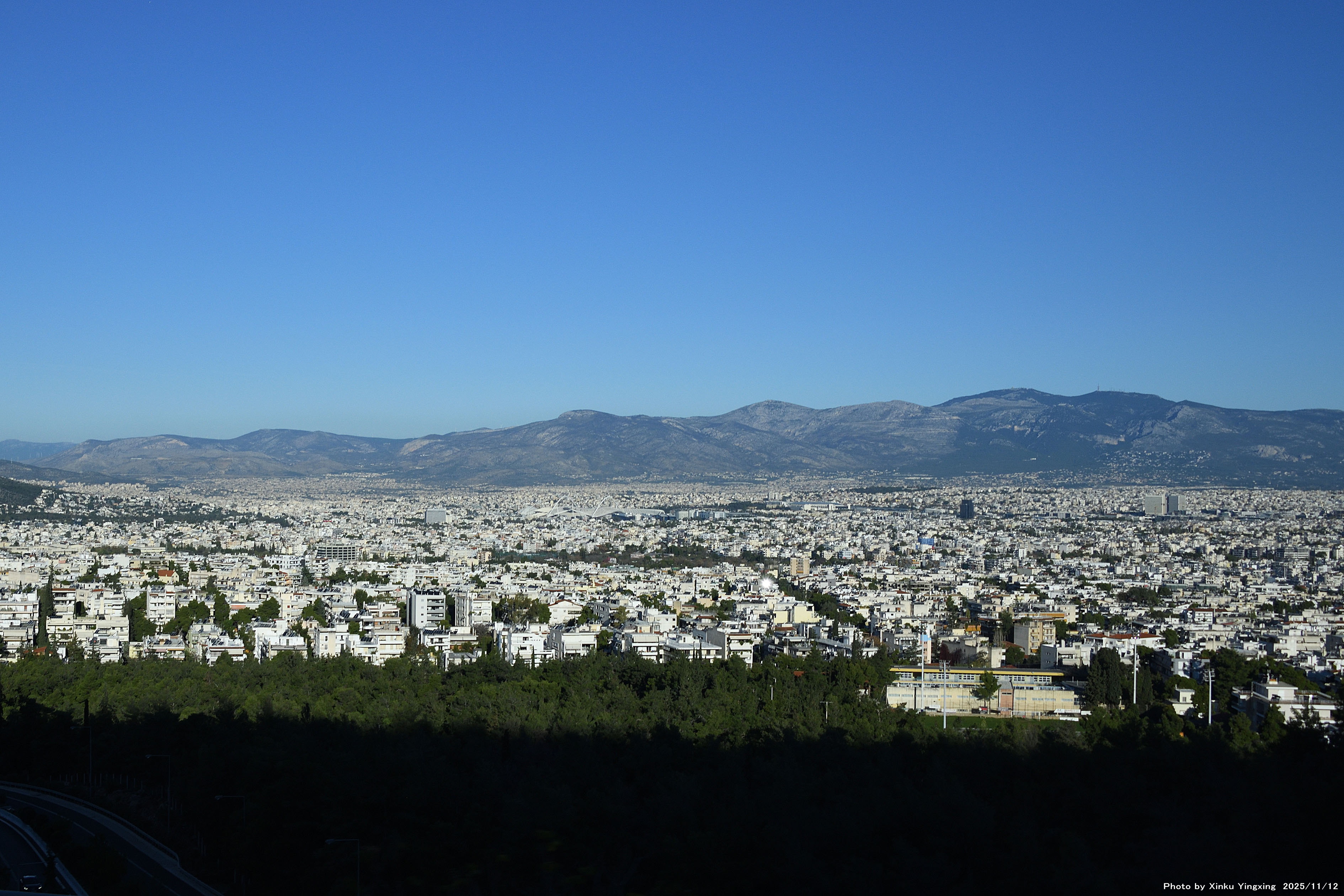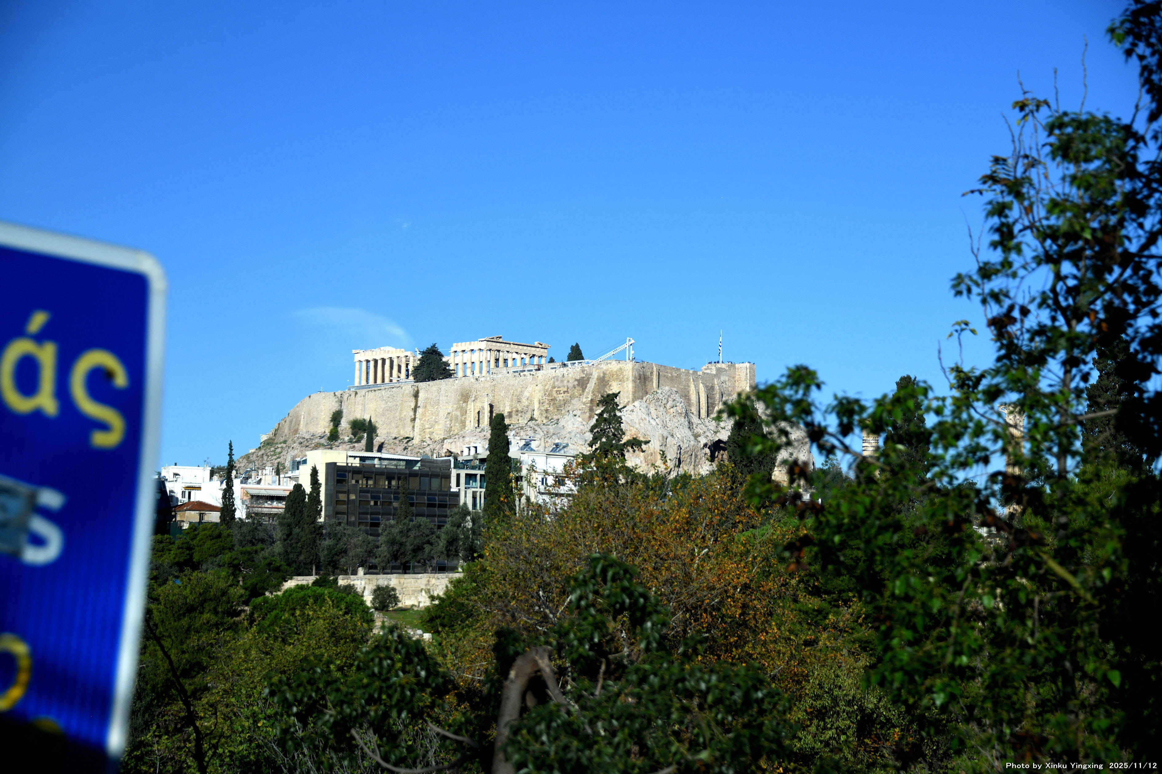 アテネ国際空港からアテネ市街へはバスで移動しました。車窓からはアテネの街並みをぼんやりと眺めていました。そんな中、アクロポリスが見えて来た時には、ついにギリシャに来たんだと感激の一瞬でした。