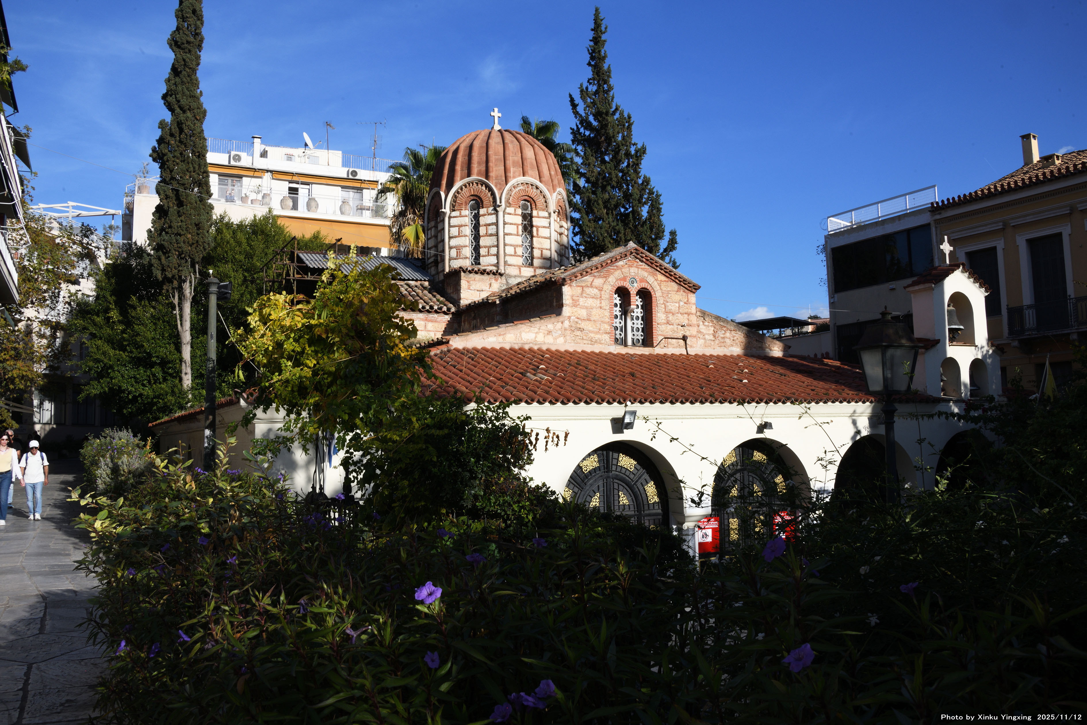 6-3 アテネ プラカ地区にて、聖カタリナ教会を望む。
