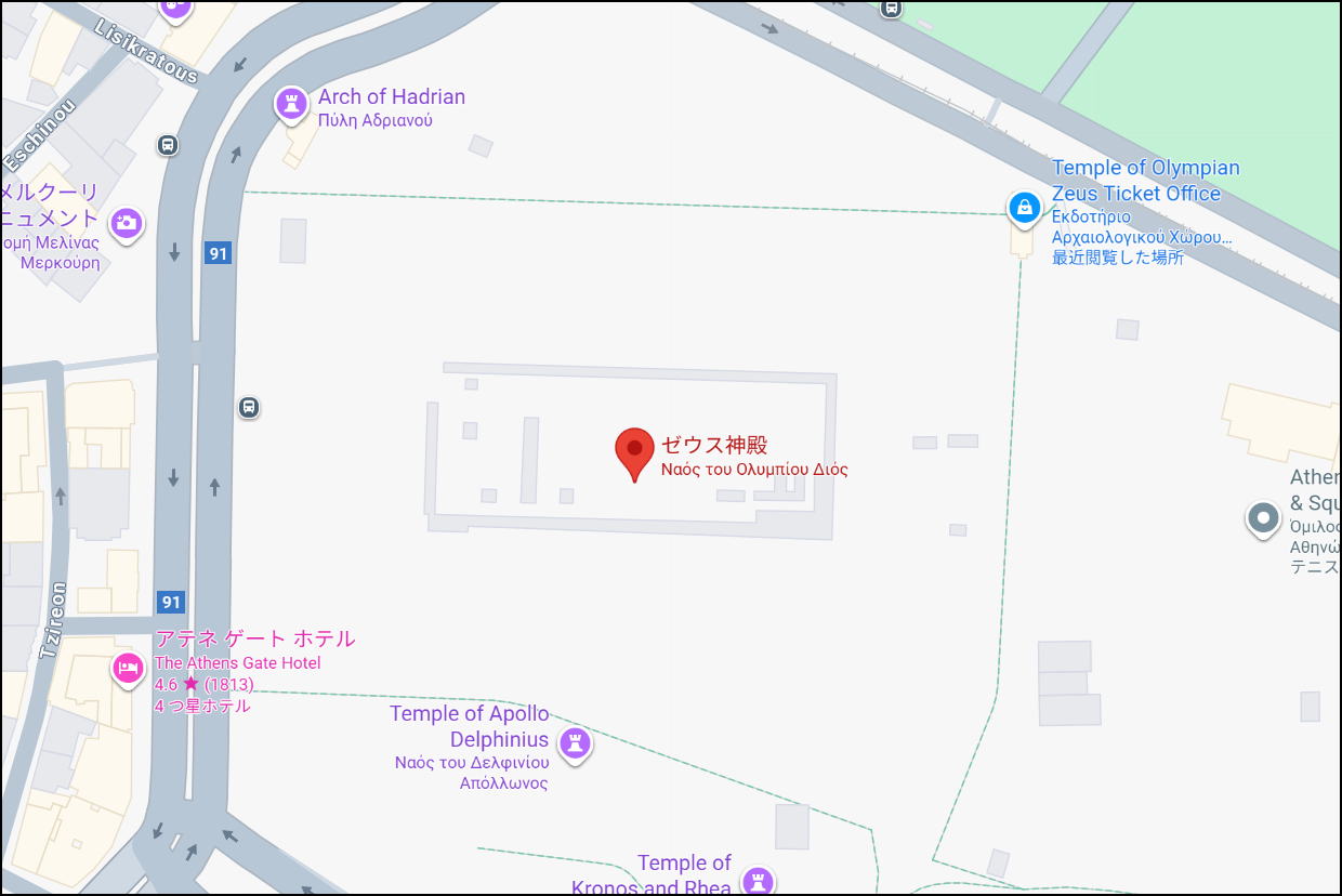 また一般道とゼウス神殿の仕切っている鉄柵ですがゼウス神殿の内部が良く見えるように作られていました。ここでは無料でゼウス神殿を見ることのできるようになっていました。ここもこのように鉄柵仕切にしているのも、とても好感が持てました。