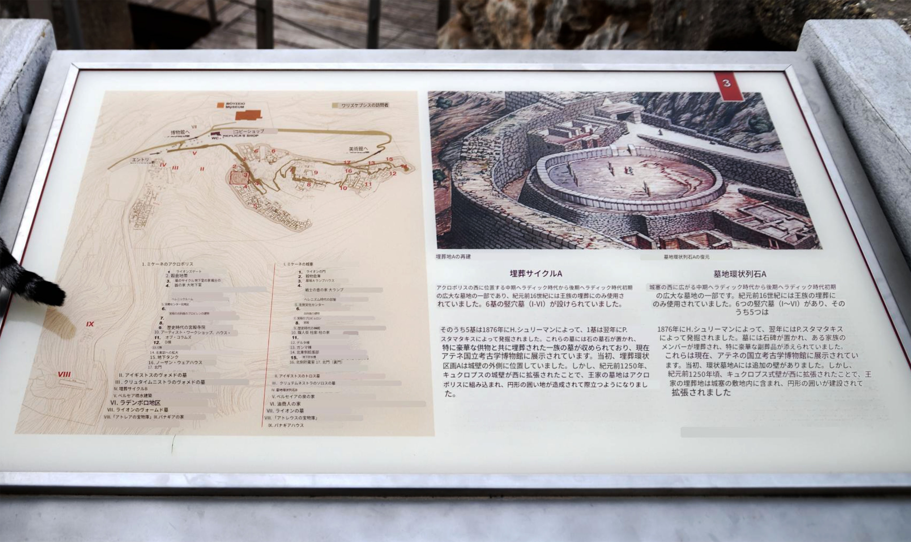 4-5 ミケーネ遺跡(王宮殿)にて、「(3)環状墓地A」の現地説明板です |