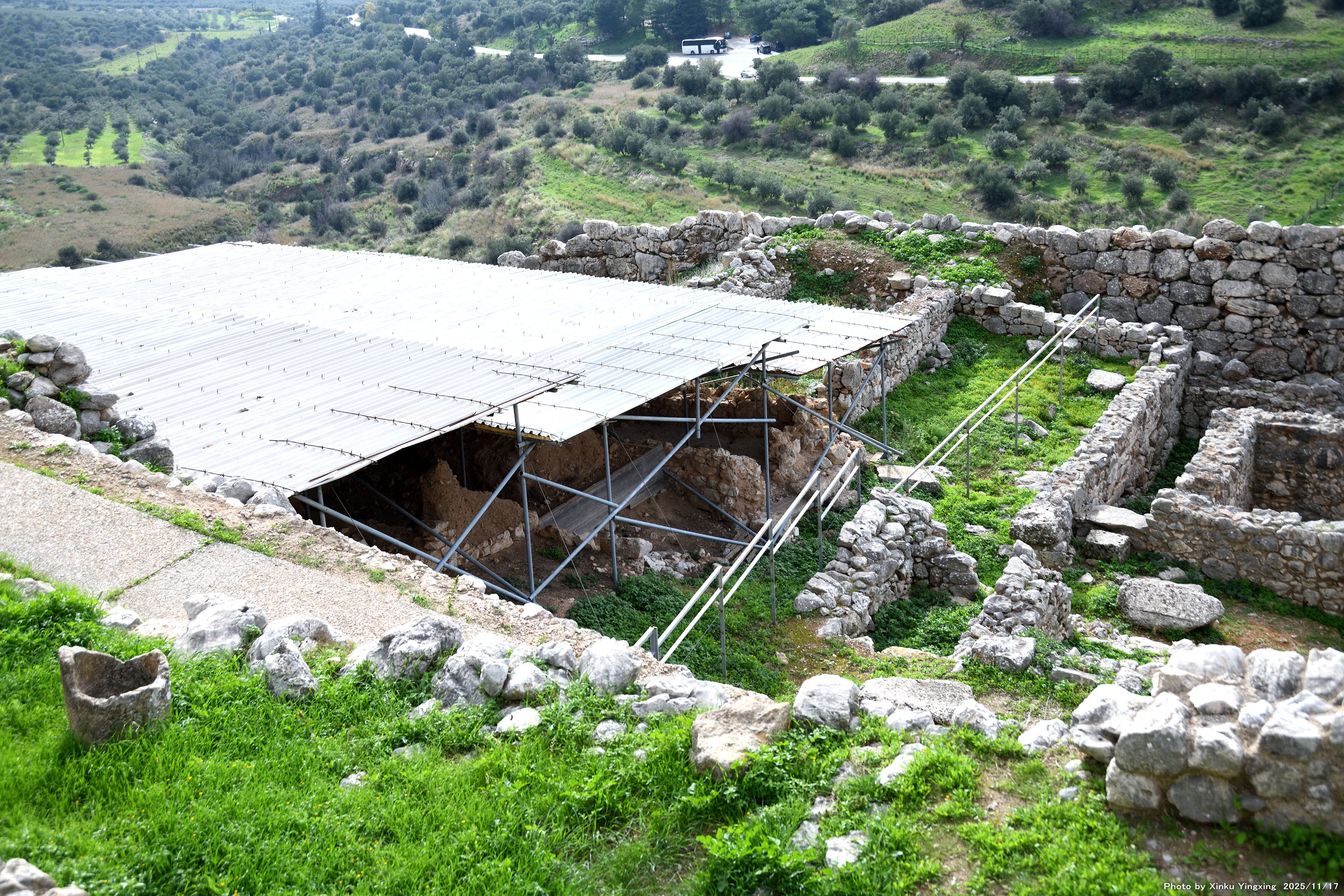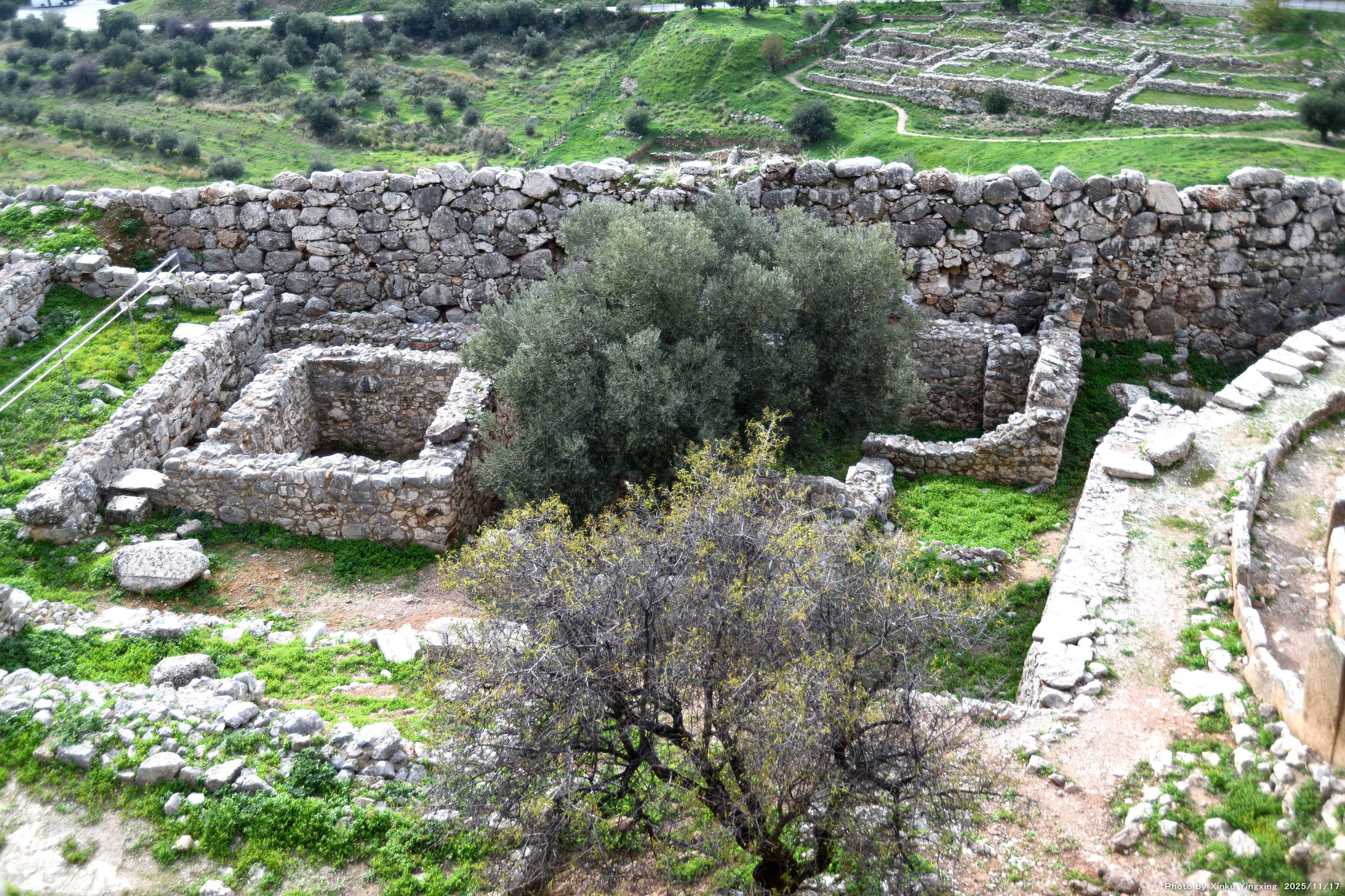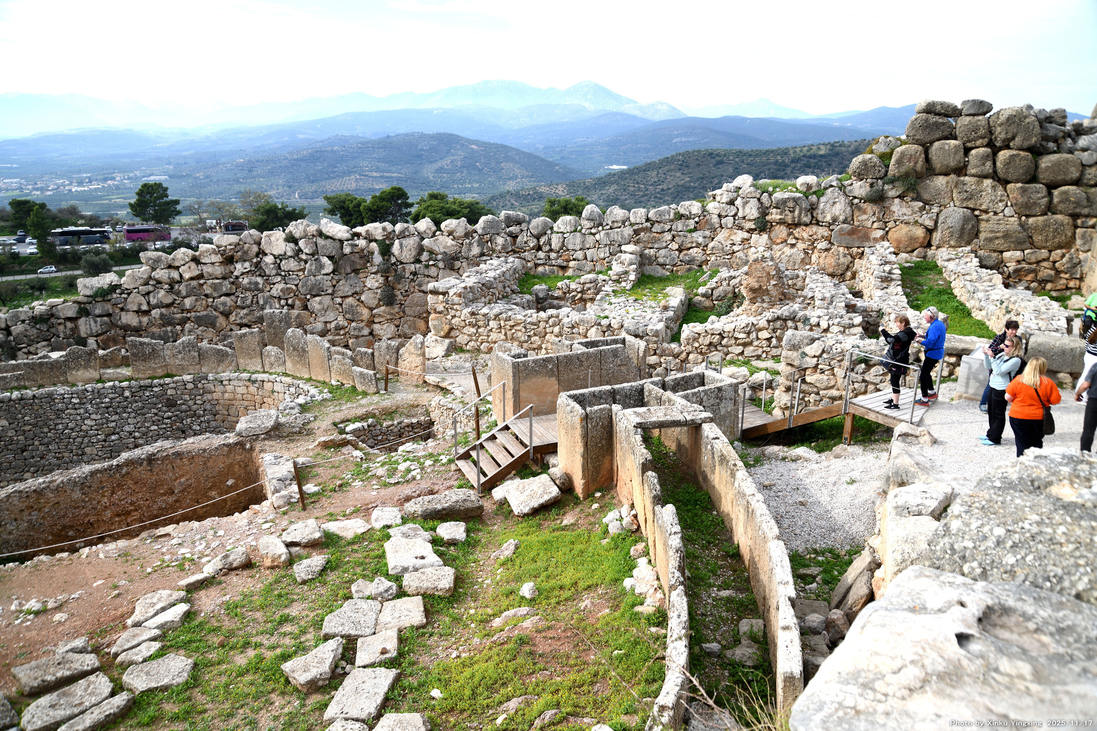 4-4 ミケーネ遺跡(王宮殿)にて、「(3)環状墓地A」を望む。