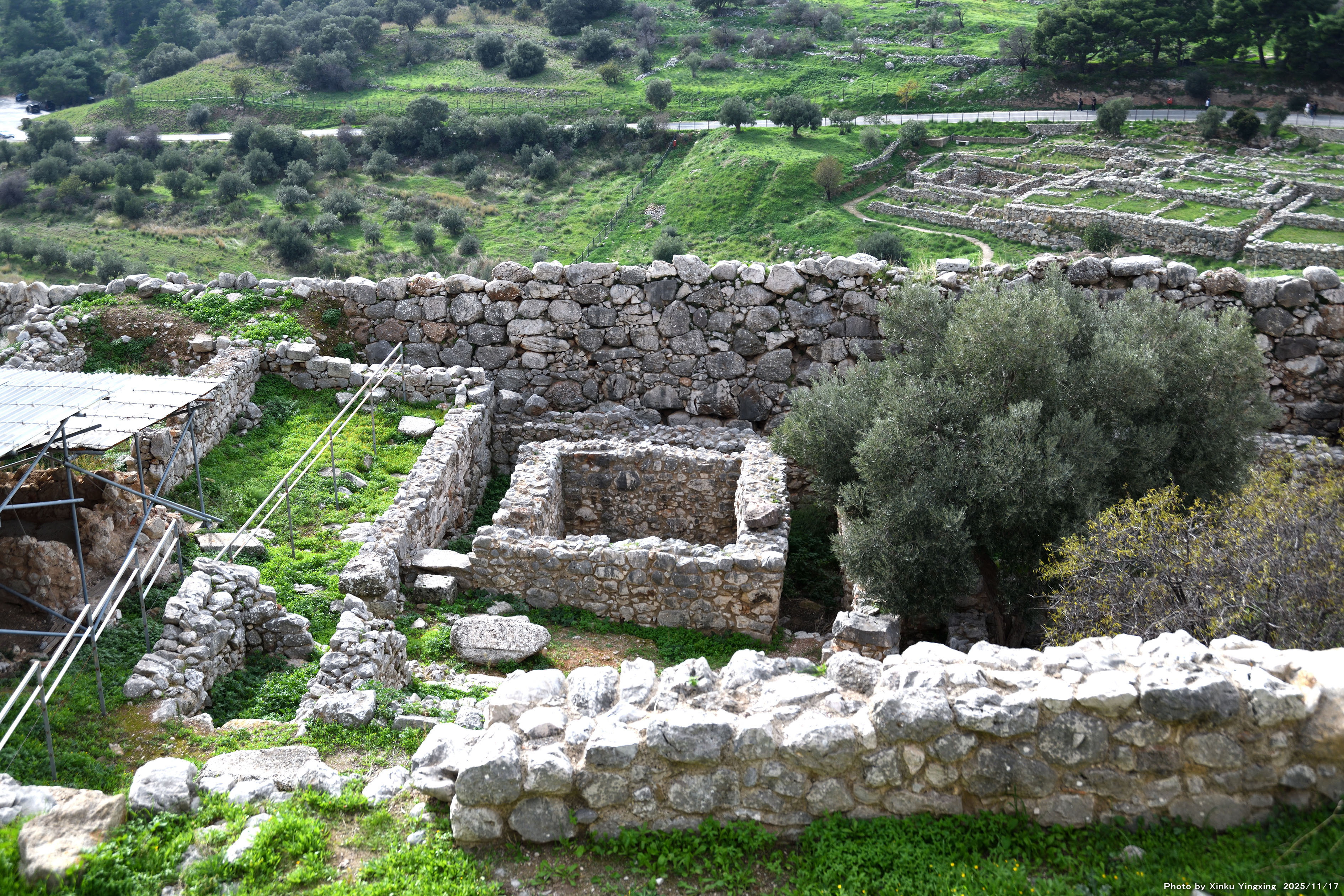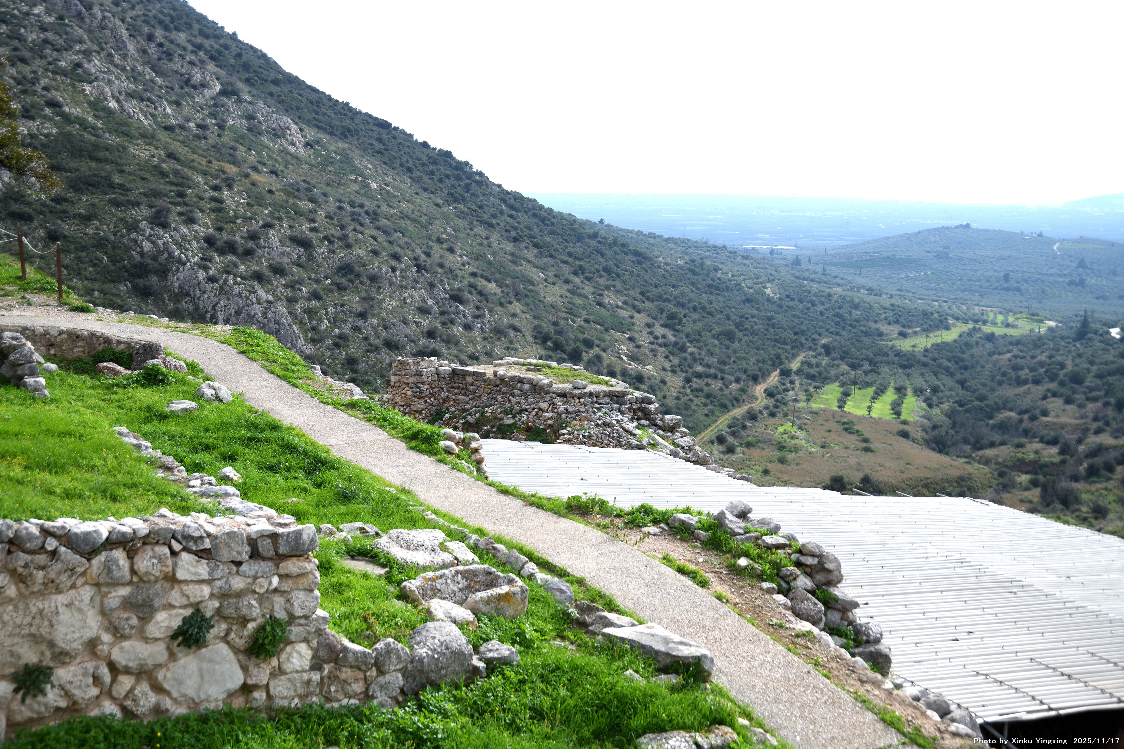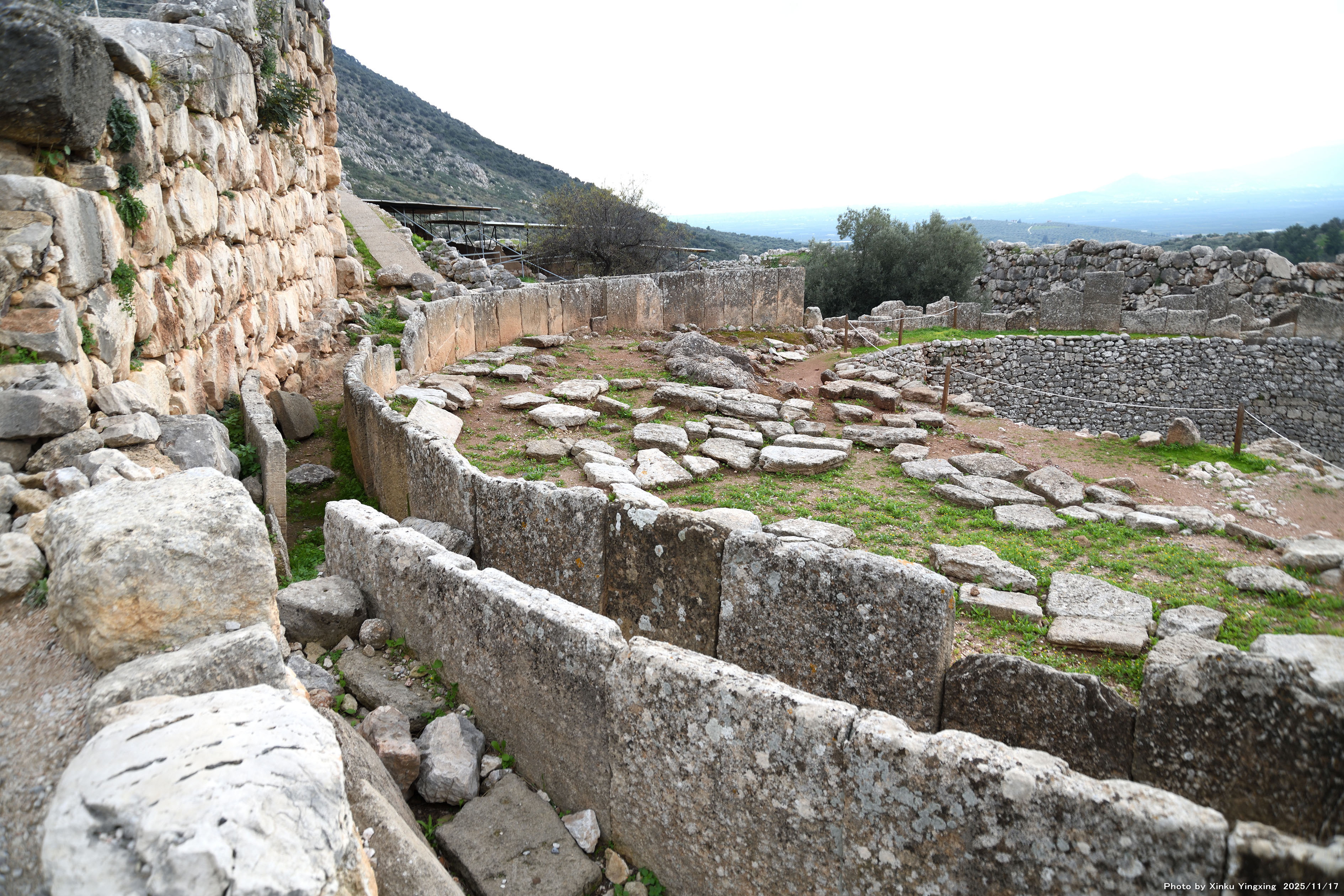 4-4 ミケーネ遺跡(王宮殿)にて、「(3)環状墓地A」を望む。
