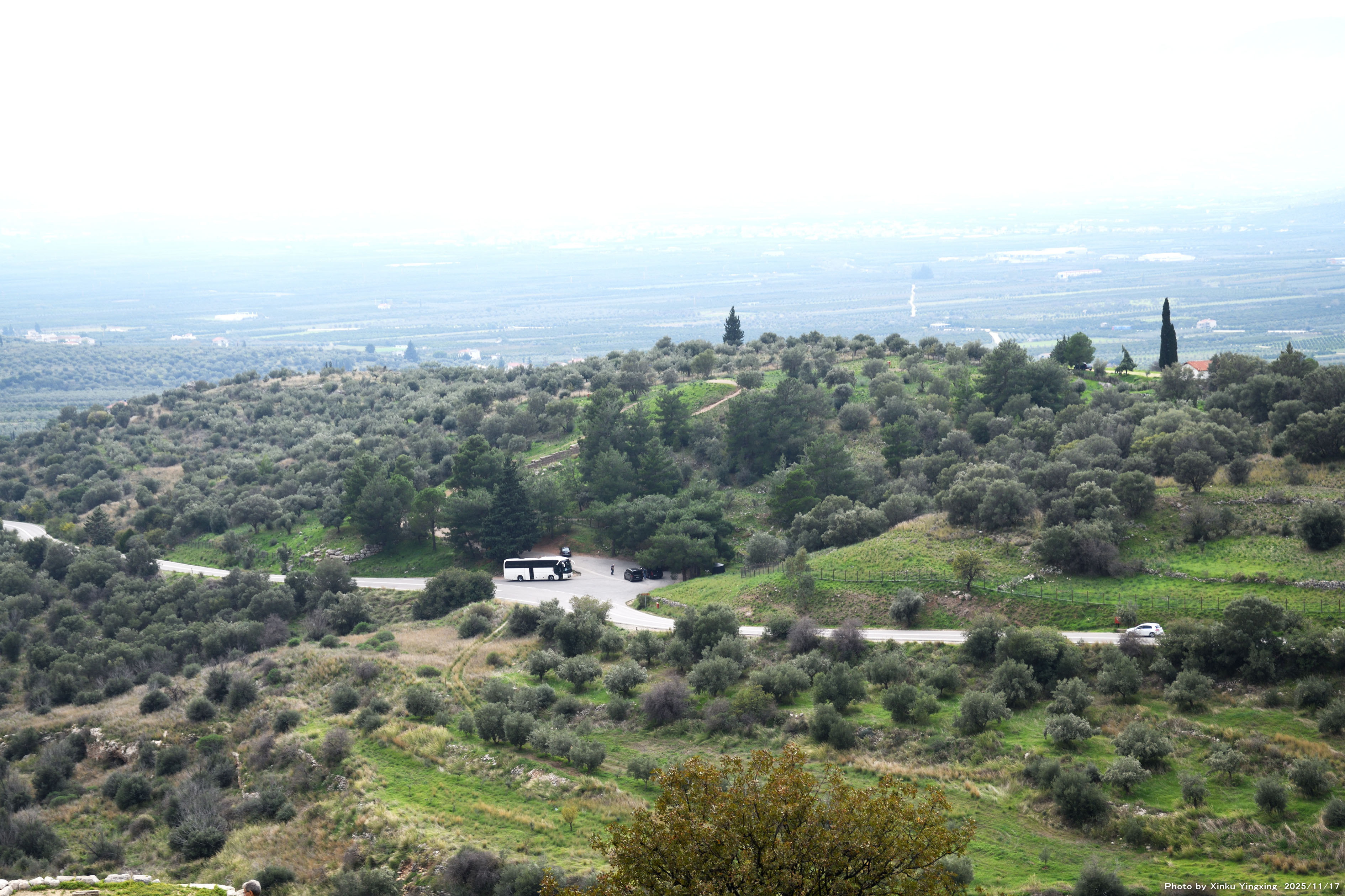 4-7 ミケーネ遺跡(王宮殿)にて、「(3)環状墓地A」跡を望む |