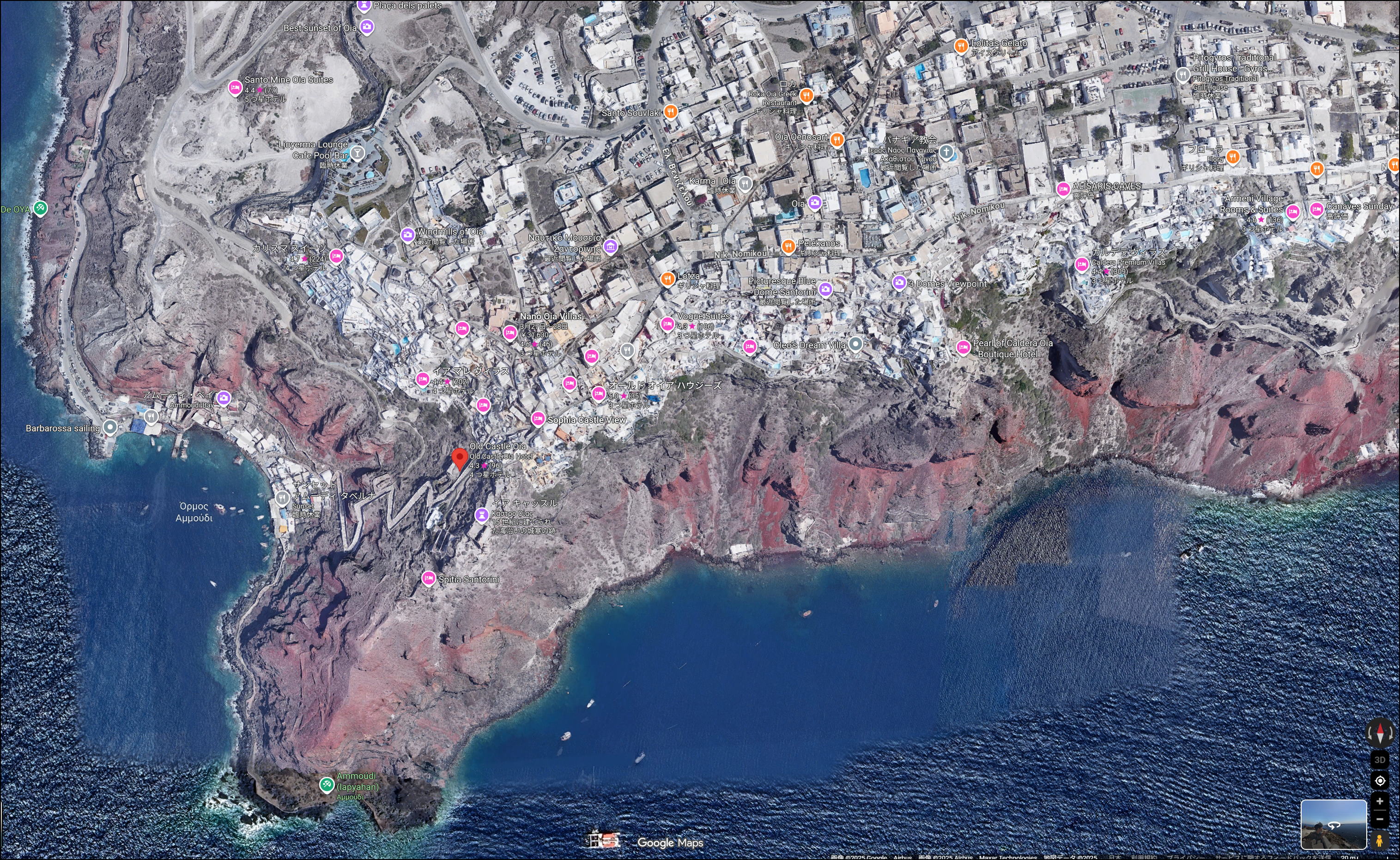 ただ、イア城から眺めるエーゲ海とエーゲ海の島々、断崖に沿って立ち並ぶイアの街並みの景色、風車のあるグーラス集落の眺めと景色としては最高の場所と思いました。 (2025.12.02)