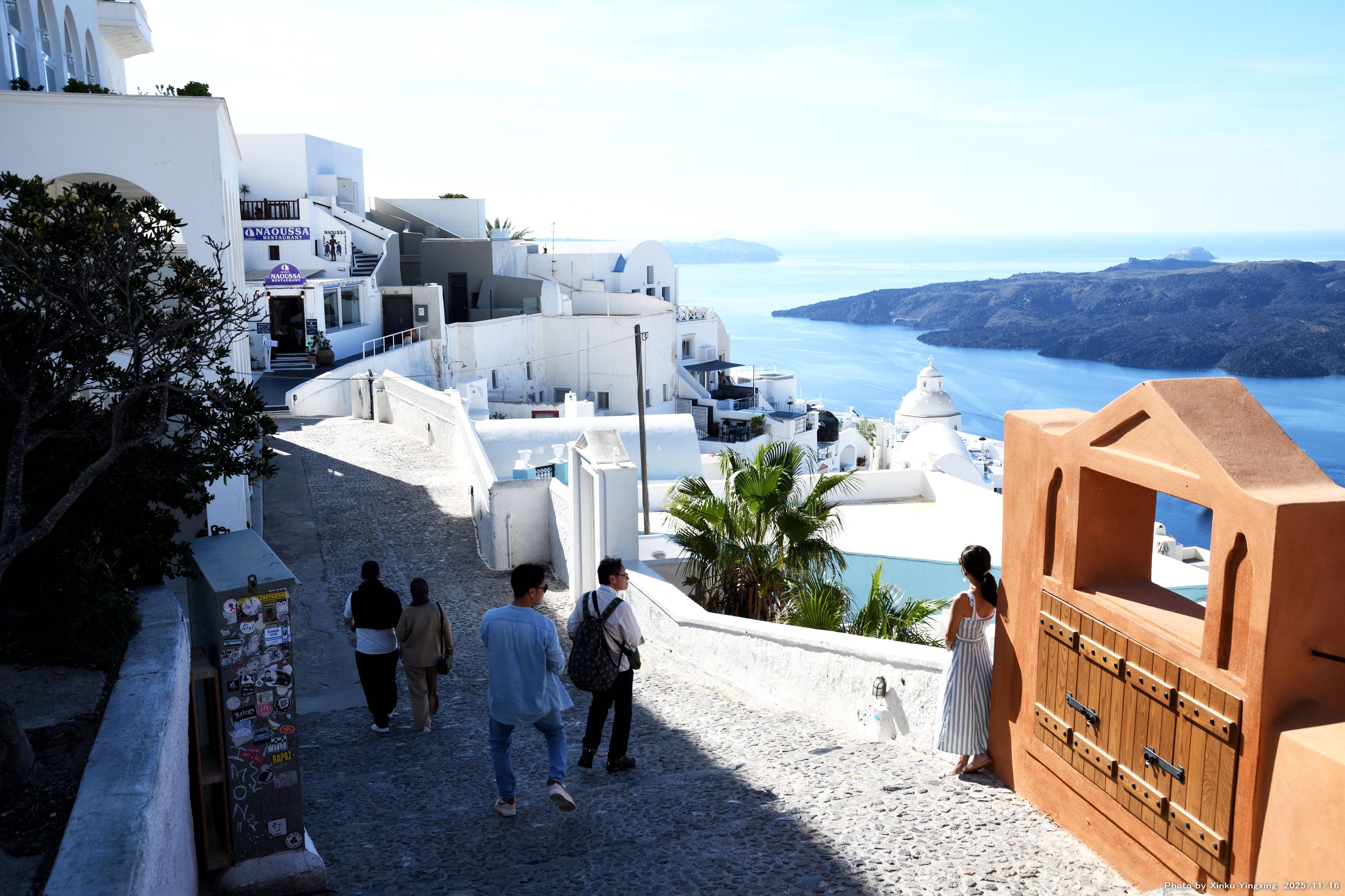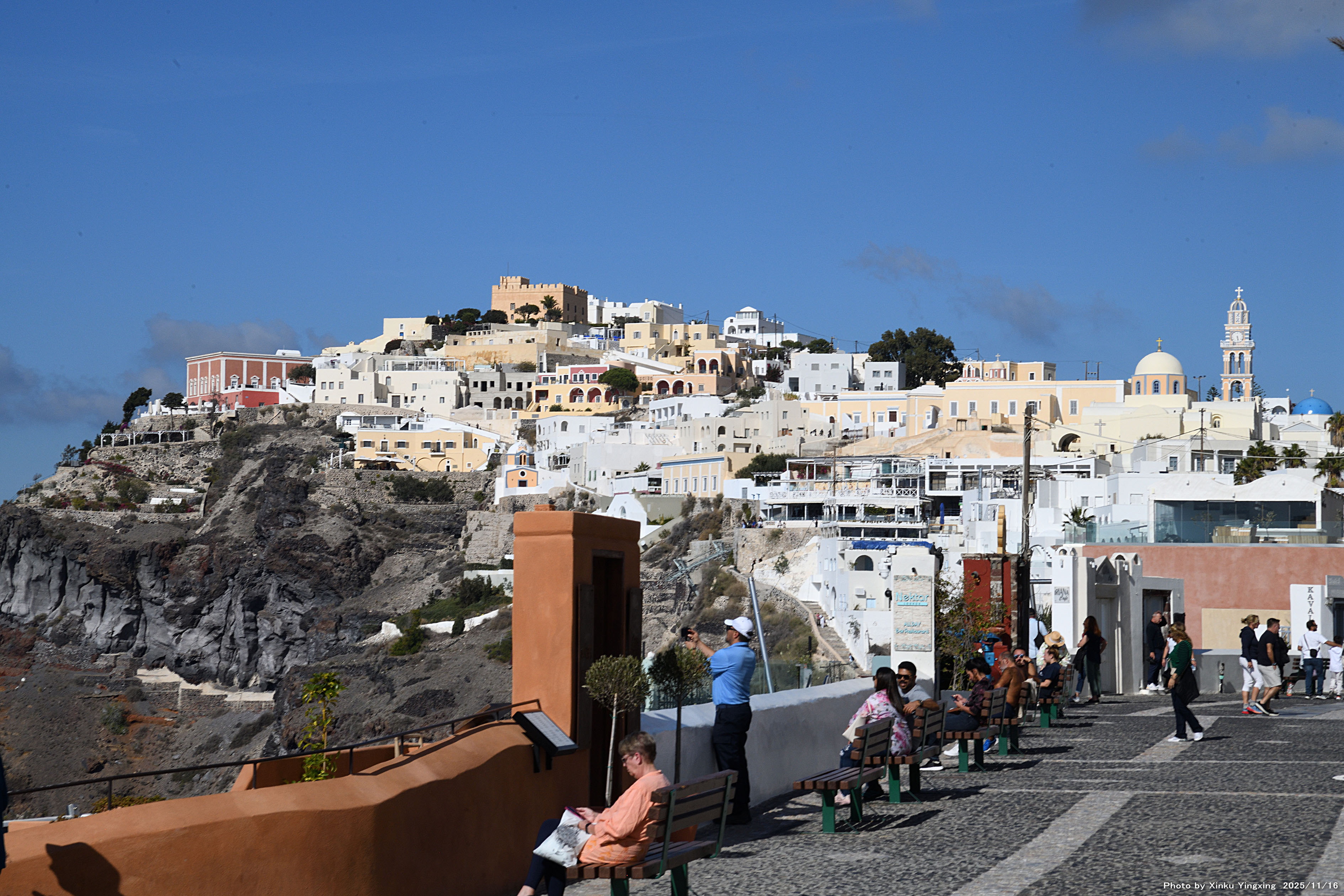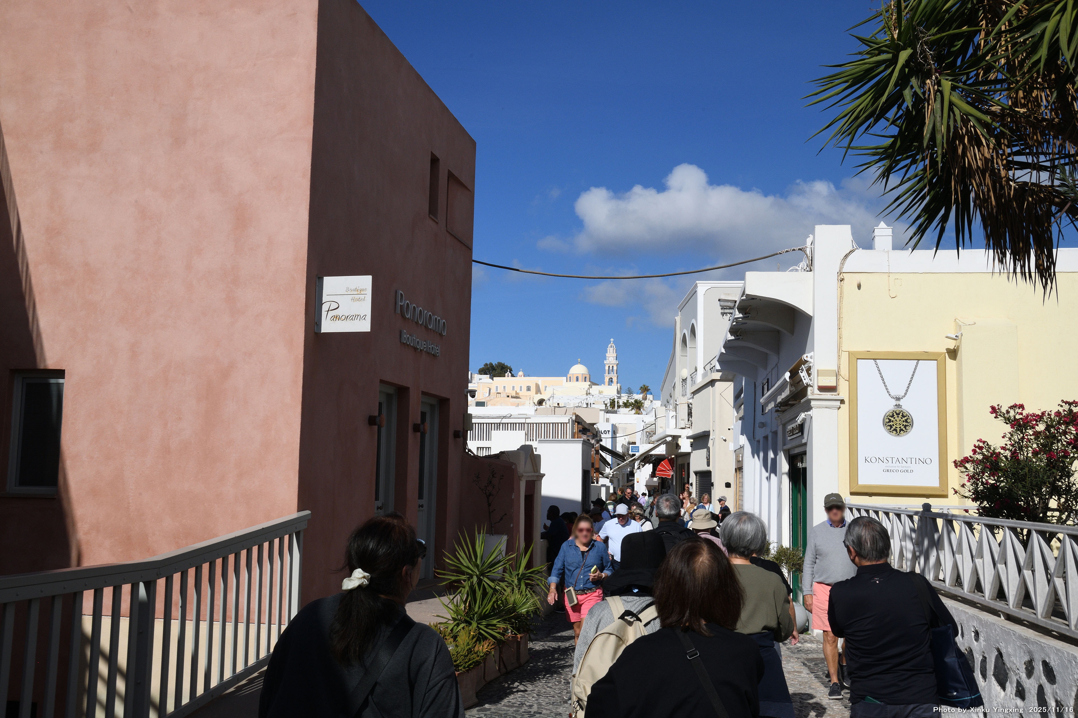 | サントリーニ島フィラ中心街にて、キリスト奉献大聖堂前よりフィラケーブルカー駅方面を望む | |||||||||||||||||||||||||||||||||||||||||||||||||||||||||||||||||||||||||||||||||||||||||||||||||||||||||||||||||||||||