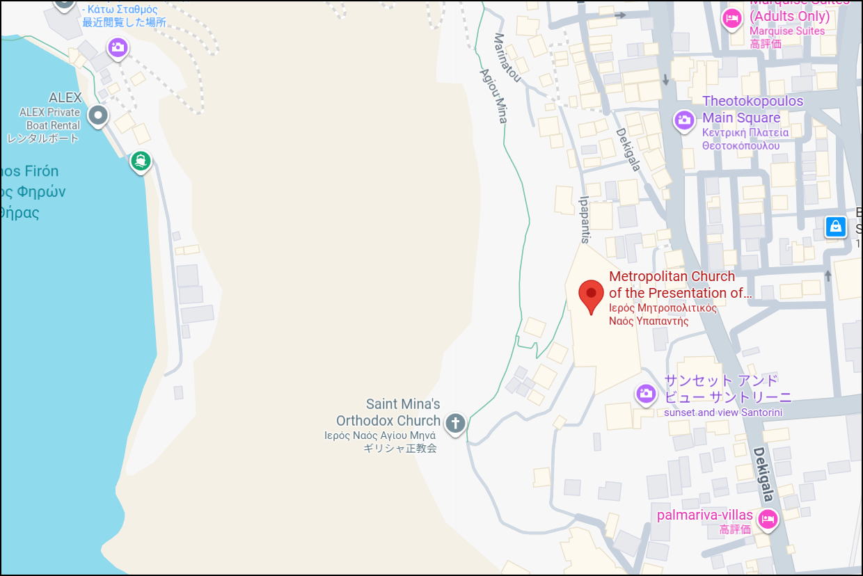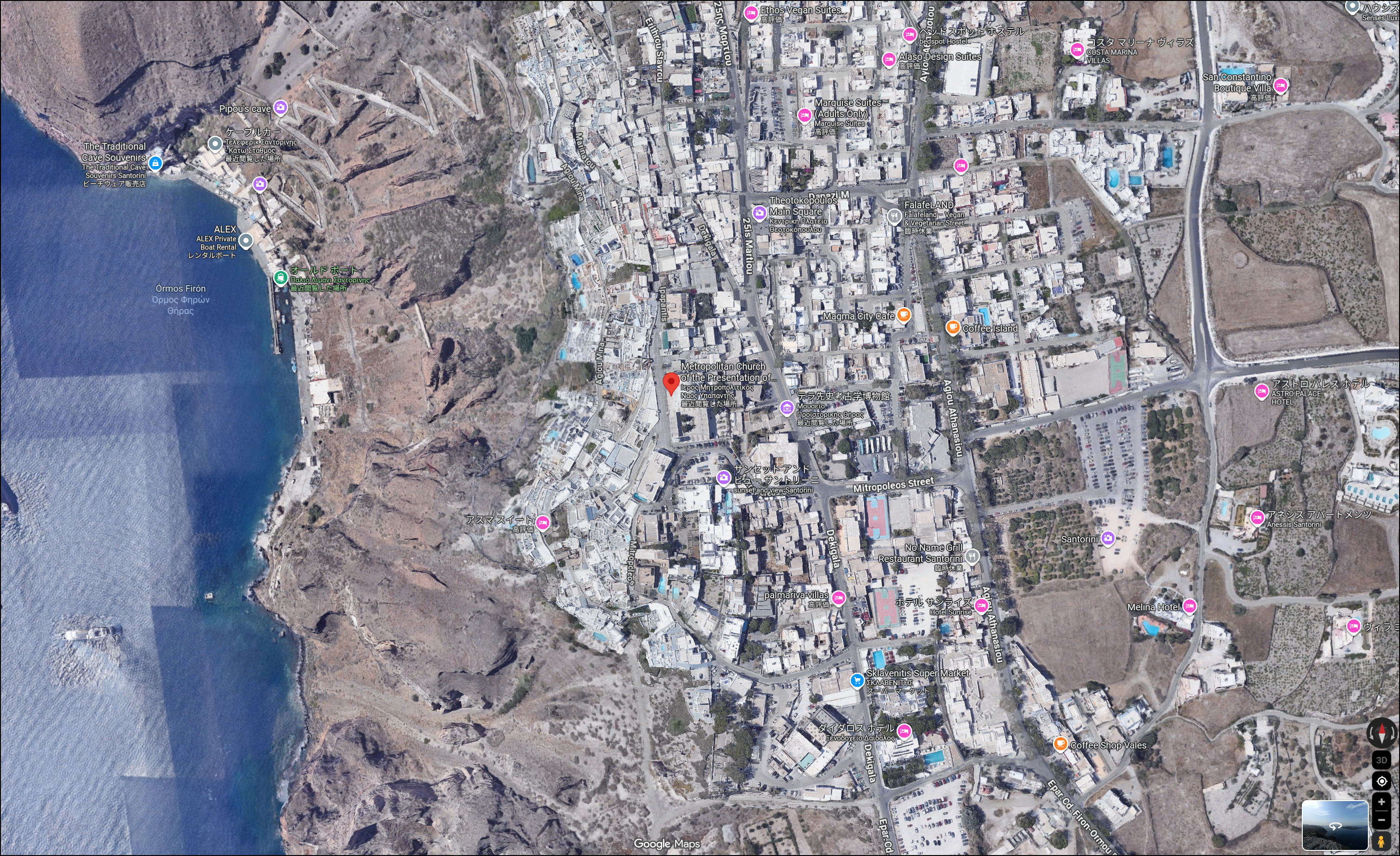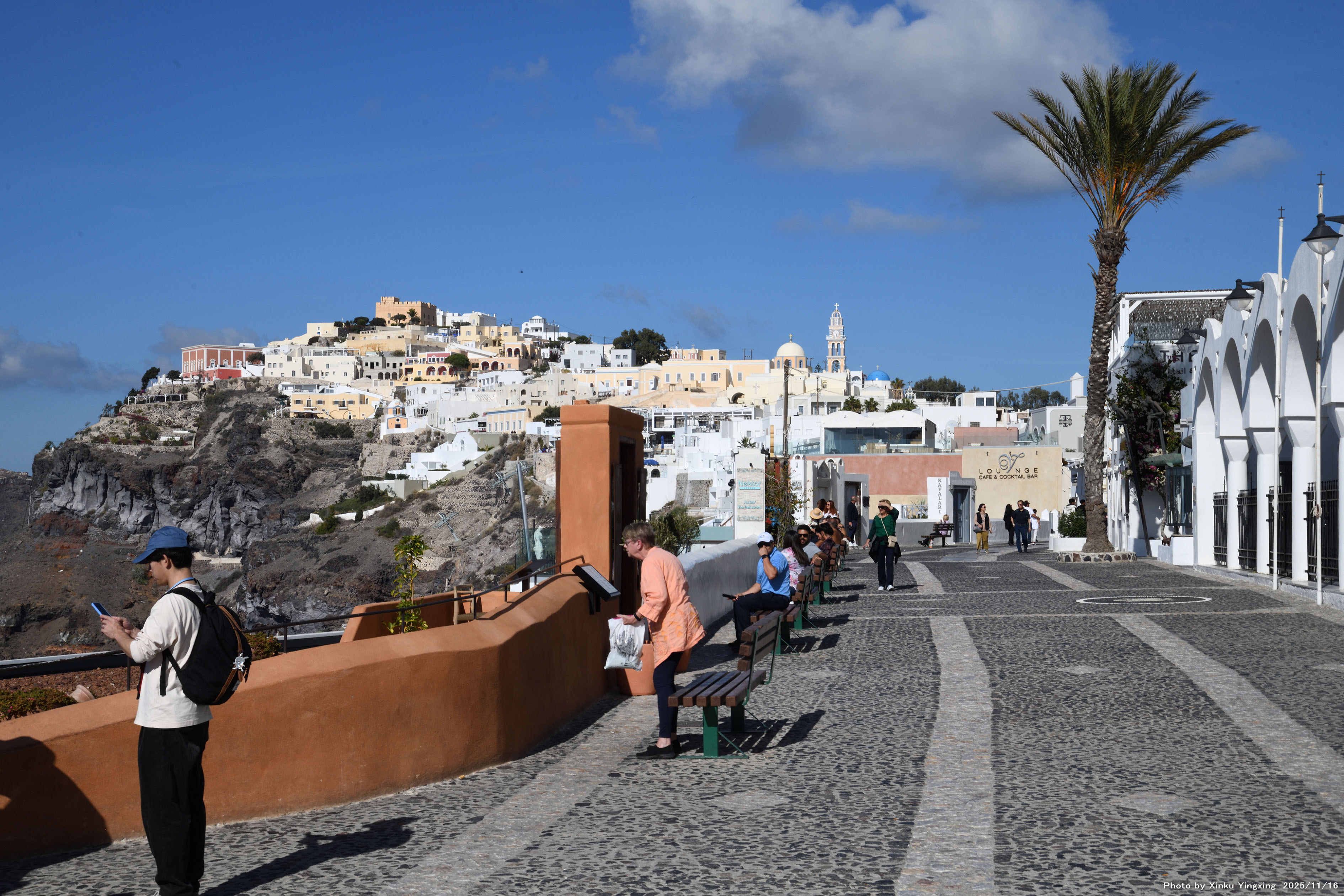 | サントリーニ島フィラ中心街にて、キリスト奉献大聖堂前よりフィラケーブルカー駅方面を望む | |||||||||||||||||||||||||||||||||||||||||||||||||||||||||||||||||||||||||||||||||||||||||||||||||||||||||||||||||||||||