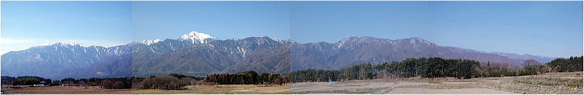 サクラは残念でしたが、南アルプス、八ヶ岳、富士山(当日は見えませんでした)にとりかこまれ、見事な景観を放っている地です。
