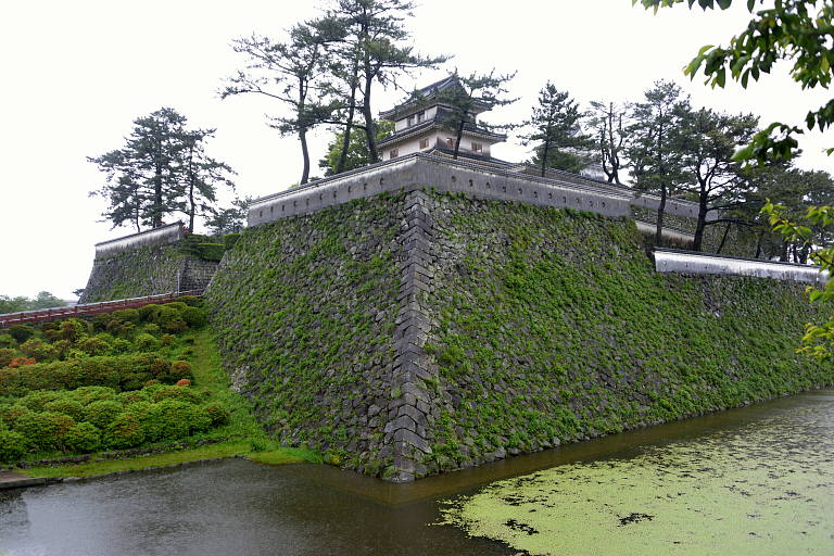 外郭は東西約360メートル、南北約1260メートル。周囲に約3900メートルの塀をめぐらせて、要所には大小16の櫓を配置して、4万石の大名にしては過分な城であったようです。