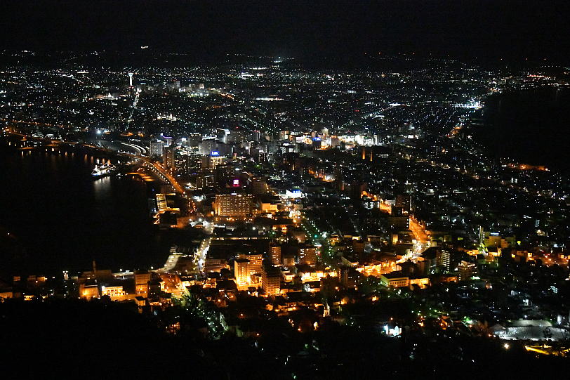 函館山の夜景は「100万ドルの夜景」、「日本三大夜景」、さらには香港とナポリに並び「世界三大夜景」ともいわれています。高層ビル群に囲まれた、香港の圧倒される美しい夜景を見たことがありました。函館市街には高層のビル群は在りませんが、函館湾と津軽海峡の美しい曲線や函館市街の街並み、そして函館湾と函館山から眺める夜景はとても美しく、神秘的だと思いました。