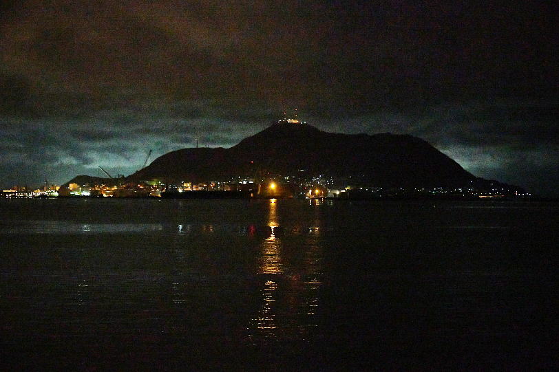 8-3 青函フェリーより、「函館山」を望む。右側の明かりはイカ釣り船の明かりです