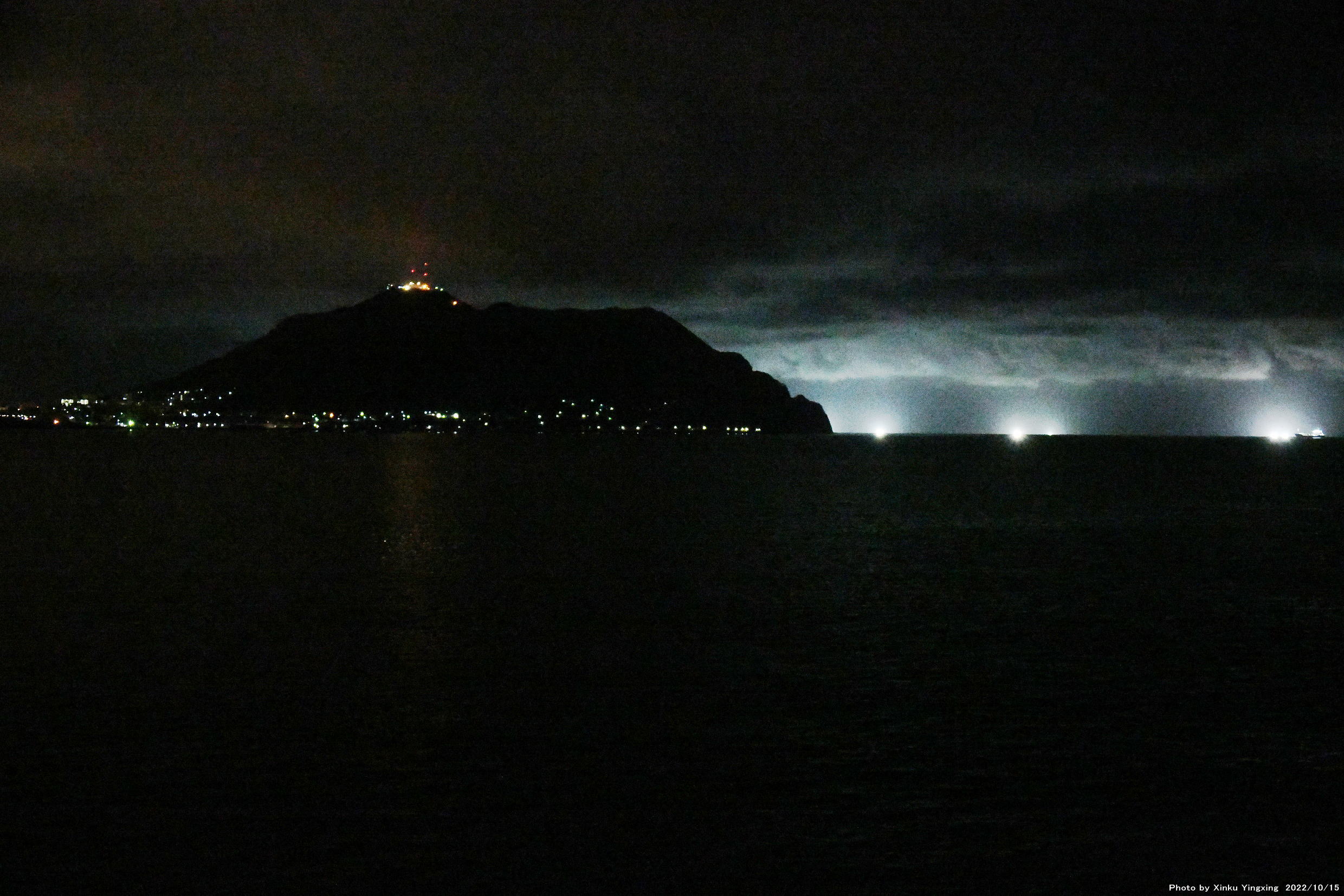 7-5 青函フェリーより、「函館山」を望む。右側の幻想的な明かりはイカ釣り船の明かりです