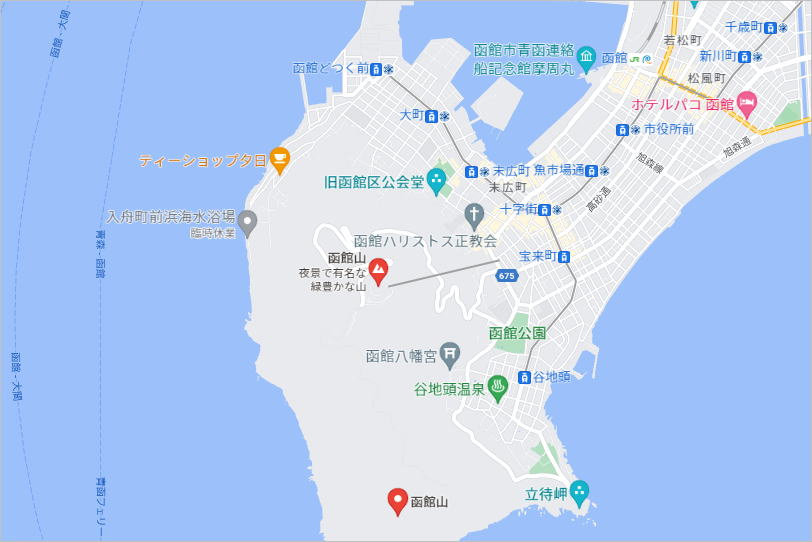 函館山(はこだてやま)は、北海道函館市の市街地西端にある標高334m、周囲約9kmの山です。牛が寝そべるような外観から臥牛山(がぎゅうざん)とも呼ばれています。