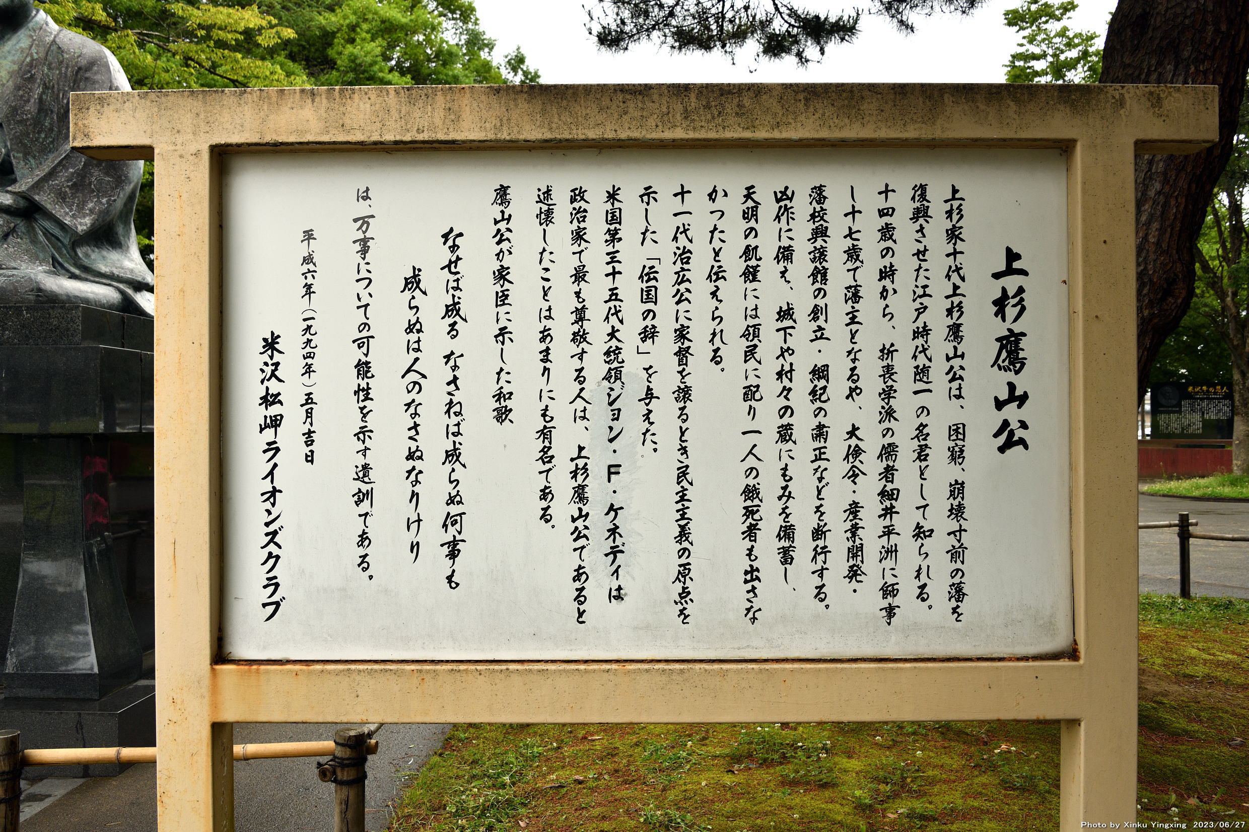 4.松岬神社「上杉鷹山公」像にて