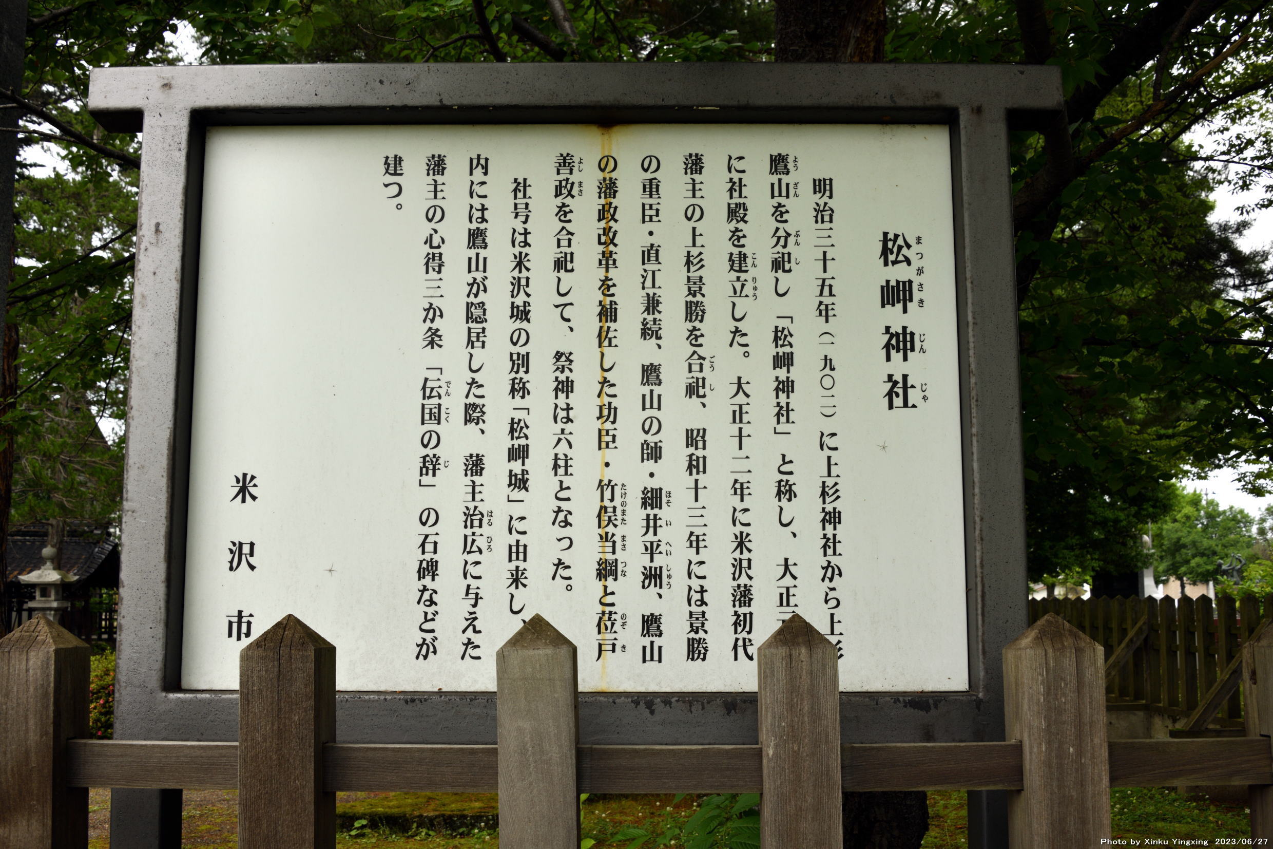 松岬神社(まつがさきじんじゃ)は、山形県米沢市に鎮座する神社で、上杉神社の摂社です。1902年(明治35年)に上杉神社に祀られていた上杉鷹山を分祀するために、米沢城址(松が岬公園)に建立されました。